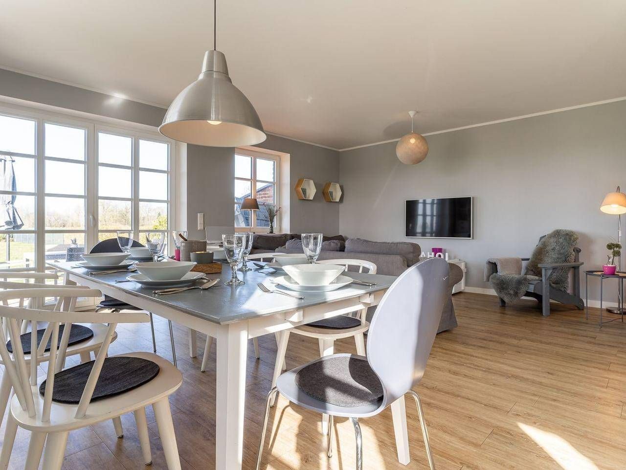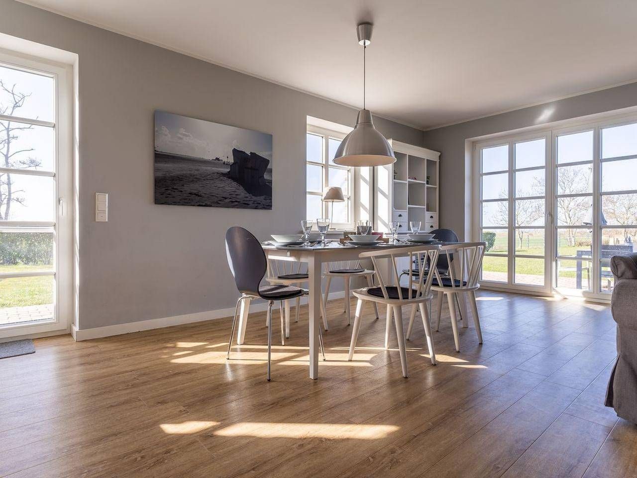 Diese wunderschöne Doppelhaushälfte unter Reet verfügt über ca. 93 m² Wohnfläche und bietet großzügigen Platz für 4 Personen. Vor den Toren St. Peter-Ordings liegt das mit Reet gedeckte Doppelhaus in traumhafter Lage, mit Blick über die Wiesen. St.Peter liegt ca. 4 km entfernt, wo man alle Einkaufs und Versorgungsmöglichkeiten findet. Eine kleine Dorfbäckerei befindet sich direkt in der Nähe. In dem wunderschönen Ferienhaus sind max. 3 Haustiere zugelassen. Gebührenpflichtig und nur nach Rücksprache. Im Erdgeschoss befindet sich der lichtdurchflutete Wohnraum mit Flachbild-TV, Stereoanlage und gemütlichen Sitzmöbeln. Die offene Wohnküche verfügt über hochwertige Geräte und ist voll ausgestattet für gemeinsames Kochen. An den Wohnbereich schließen sich ein Flur, ein Duschbad sowie ein Hauswirtschaftsraum. Über eine Holztreppe gelangt man in das Obergeschoss. Die zwei Schlafzimmer, eines mit einem Doppelbett (1,80 x 2,00), TV, und eines mit 2 Einzelbetten (90 x 2,00), sorgen für ruhevolle Erholung. Darüber hinaus befindet sich im Obergeschoss ein weiteres großzügiges Duschbad mit Komfortdusche, WC und Handtuchheizkörper. Im gesamten Haus hochwertiger Vinylboden, kostenloses Wlan, Nichtraucher, Aussenparkplatz.