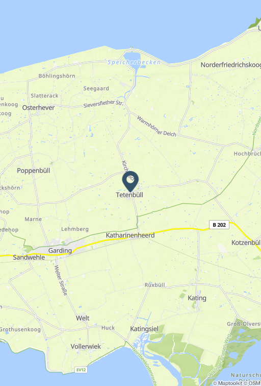 Reetdachhaus, 120 qm, 8 Personen, Nichtraucher, WLAN Haustiere können wir in diesem Haus leider nicht aufnehmen Großes Wohnzimmer mit 2 Sitzgruppen, Sekretär, Sessel und direktem Ausgang in den Garten, SAT-TV und Musikanlage Küche ausgestattet mit Cerankochfeld, Backofen, Geschirrspülmaschine, Mikrowelle, Kühlschrank mit Gefriermöglichkeit, großer Küchentisch und Kinderhochstuhl. Fenster sind überwiegend mit Fliegengitter ausgestattet. Schlafzimmer im EG mit Doppelbett, Kleiderschrank 1 Duschbadezimmer mit ebenerdiger Dusche im EG 1 Badezimmer mit Badezimmer Badewanne im EG 1 Schlafzimmer mit Doppelbett (200x180cm) im EG 1 Schlafzimmer mit Doppelbett im OG (200x180cm) 1 Schlafzimmer mit Doppelbett (200x160cm) und Hoch-Schlafkoje (200x160cm) im Hausgiebel, direkt unter dem Reetdach, für Piraten, Räuber und Prinzessinnen. Hauswirtschaftsraum mit Waschmaschine und Trockner Garten und Terrasse mit Gartenmöbel, Elektrogrill 2 Parkplätze Das Reetdachhaus ist ein idealer Rückzugsort für Ruhesuchende, bietet aber auch viel Platz für Familien, Freunde und ein entspanntes Urlaubsgefühl. Wasserkoog liegt umgeben von Wiesen und Weiden nahe am Nordseedeich und der Badestelle Everschopsiel. 3 Schlafzimmer und 2 Bäder und ein großer Garten bieten genügend Raum für einen erholsamen Urlaub. Nach einer gemütlichen Fahrt durch die Landschaft der Halbinsel Eiderstedt erreichen Sie in kurzer Zeit St. Peter- Ording, Tönning und Westerhever. Auch die Holländerstadt Friedrichstadt und die bekannte Kleinstadt Husum sind in kurzer Zeit zu erreichen. Das Dorf Tetenbüll mit seinen ca. 360 Einwohnern liegt im Herzen der Halbinsel Eiderstedt. Von hier aus ist jeder Punkt der Halbinsel gut zu erreichen. Dank der gut ausgebauten Radwege können Sie das Auto auch einmal stehen lassen und alles bei einer Fahrradtour erkunden.
