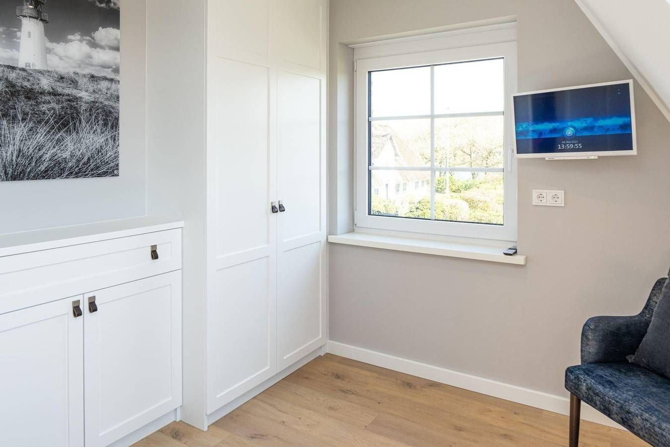 In bester Ortslage von Wenningstedt, direkt am Dorfteich gelegen, erwartet Sie das das traumhafte Kleinod ,,Reethuis am Dorfteich/ Stephanie 01‘‘. Den Strandübergang erreichen Sie in ca. 4 Gehminuten. Die Doppelhaushälfte unter Reet wurde im Mai 2023 fertiggestellt und gewährt einen traumhaften Blick auf den Wenningstedter Dorfteich. Das Ferienhaus Reethuis am Dorfteich / Stephanie 01 bietet Platz für maximal 7 Personen und lässt garantiert keine Wünsche offen. Im Erdgeschoss des Hauses Stephanie 01 befindet sich der wunderschöne, lichtdurchflutete Wohn- und Essbereich mit bequemer Sitzecke und Smart-TV. Der gemütliche Essplatz lädt zum gemeinsamen Essen ein. Die moderne und offene Küche ist komplett ausgestattet mit einem Backofen, einer Mikrowelle, Geschirrspülmaschine, Filter-Kaffeemaschine, Nespresso-Kapselmaschine, Toaster und Wasserkocher. Im Untergeschoss des Ferienhauses befindet sich ein Schlafraum mit hochwertigen Boxspringbett (180x200), ein Badezimmer mit Whirlwanne, Dusche und WC. Angrenzend an das Badezimmer ist die 2-Personen Sauna (gebührenfrei). Ein Spielzimmer mit Kicker -Tisch befindet sich ebenfalls im UG. Im 1.OG des Hauses befindet ein großes Schlafzimmer mit Boxspringbett (180x200) und Smart-TV. Sowie ein kleines Schlafzimmer mit einem Einzelbett (80x200) optimal für Kinder. Zudem befindet sich im 1.OG ein helles Badezimmer mit Dusche/WC. Im Dachgeschoss des Hauses befindet sich ein weiterer (offener) Schlafraum mit Boxspringbett (180x200) - In bester Ortslage von Wenningstedt, direkt am Dorfteich gelegen.Bis zum Strandübergang sind es ca. 4 Gehminuten. Bitte beachten Sie, dass eine eventuell anfallende Kurabgabe nicht im Gesamtpreis enthalten ist. Diese ist vor Ort zu leisten.