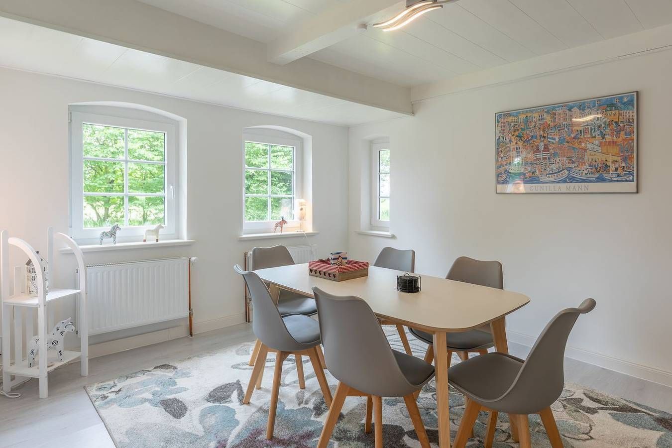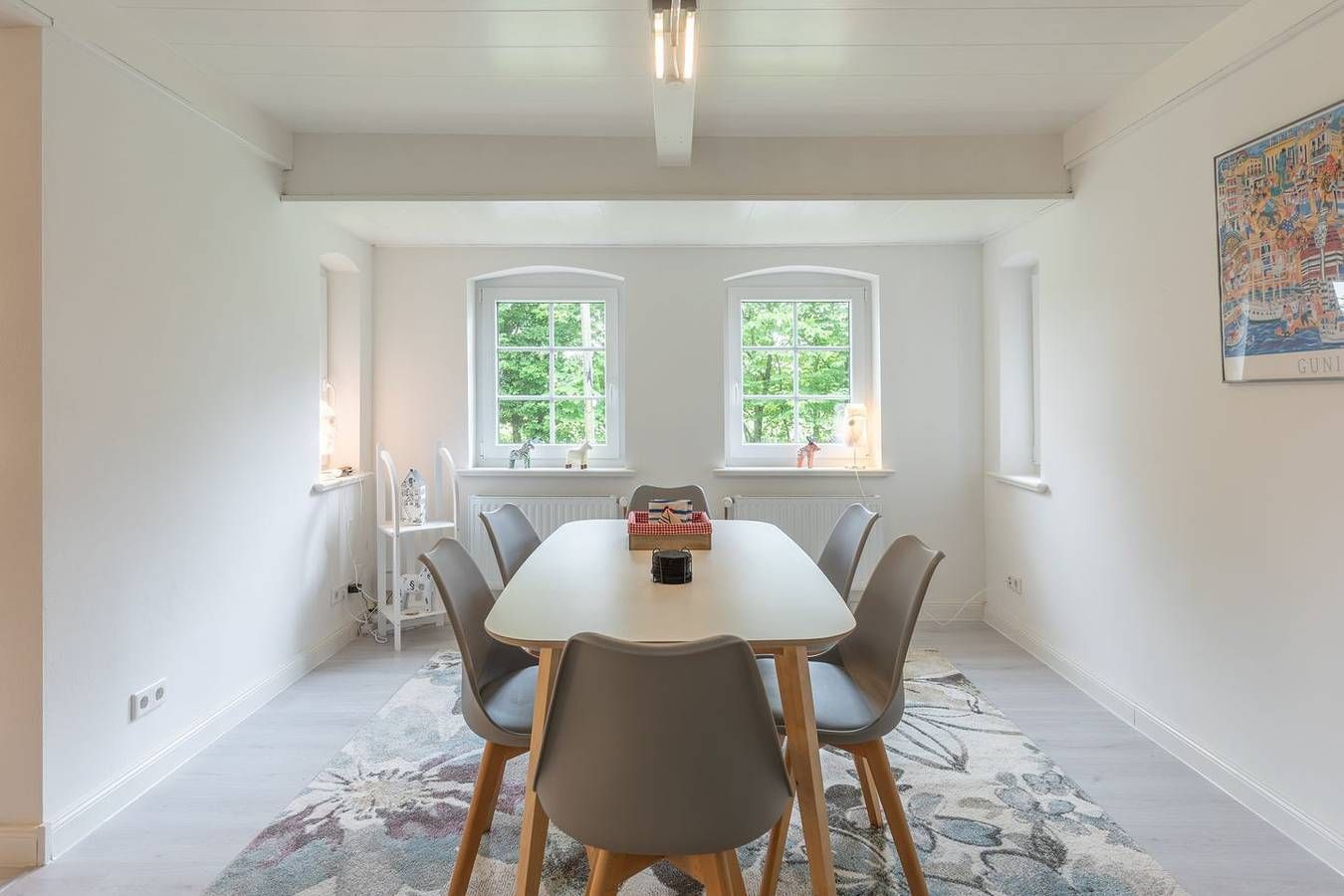 Willkommen im Reethus Nordwest, einem idyllischen Rückzugsort in der malerischen Gemeinde Bosbüll. Diese charmante Ferienunterkunft verbindet ländlichen Charme mit modernen Annehmlichkeiten und ist der perfekte Ort für Familien, Paare oder Geschäftsreisende, die eine erholsame Zeit in der Natur verbringen möchten. Die Lage Die Lage des Reethus Nordwest ist ideal für Naturliebhaber und Erholungssuchende. Eingebettet in eine ruhige ländliche Gegend, bieten sich zahlreiche Möglichkeiten zum Wandern und Radfahren. Für Tagesausflüge erreichen Sie das Meer in nur 18.000 Metern, wo zahlreiche Strände und Freizeitmöglichkeiten auf Sie warten. Einkaufsmöglichkeiten und Restaurants sind ebenfalls nur 5 Kilometer entfernt und lassen sich bequem erreichen. Die Ausstattung Das Reethus Nordwest erstreckt sich über großzügige 170 m² und bietet Platz für bis zu vier Gästen. Mit zwei Schlafzimmern, einem gemütlichen Wohnzimmer und einem geräumigen Esszimmer garantiert es ausreichend Raum für entspannte Stunden. Ein Gäste-WC sowie ein voll ausgestattetes Badezimmer mit Dusche und Badewanne sorgen für zusätzlichen Komfort und Bequemlichkeit. Die Ausstattung des Reethus lässt keine Wünsche offen. Die voll ausgestattete Küche verfügt über moderne Geräte wie Herd, Backofen, Mikrowelle und Kühlschrank, um all Ihre kulinarischen Bedürfnisse zu erfüllen. Sie finden zudem eine Kaffeemaschine, einen Wasserkocher, einen Toaster sowie ausreichend Geschirr und Besteck. Im angrenzenden Essbereich können Sie gemeinsam essen und die geselligen Stunden genießen. Ein weiteres Highlight ist der lichtdurchflutete Wintergarten, der einen Blick auf die umliegende Landschaft bietet und sich ideal als Rückzugsort eignet. Der gepflegte Garten mit Gartenmöbeln und einer Liegewiese lädt zum Entspannen im Freien ein. Hier können Sie die frische Luft der ländlichen Umgebung genießen und den Alltag hinter sich lassen. Die Besonderheiten Das Reethus Nordwest ist nicht nur ein Ort zum Übernachten, sondern ein Zuhause auf Zeit, ausgestattet mit vielen weiteren Annehmlichkeiten wie WLAN, einem TV und einer Waschmaschine für Ihren Komfort. Die Unterkunft ist rauchfrei und bietet Platz für bis zu zwei Haustiere, sodass auch Ihr vierbeiniger Begleiter Teil Ihres Urlaubs werden kann. Bettwäsche und Handtücher sind im Preis enthalten. Dieses charmante Reethus wurde 1920 erbaut und 2020 liebevoll renoviert. Die Mischung aus traditioneller Architektur und modernen Annehmlichkeiten schafft eine einzigartige Atmosphäre, in der Sie sich rundum wohlfühlen können. Der große Garten und die ruhige Lage in einem kleinen Dorf bieten eine willkommene Abwechslung zum hektischen Stadtleben.