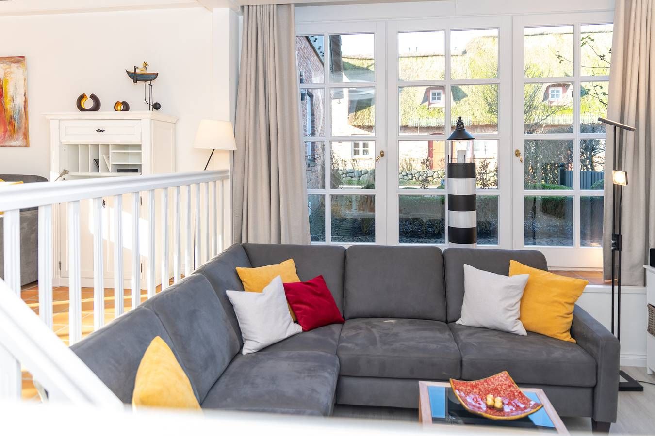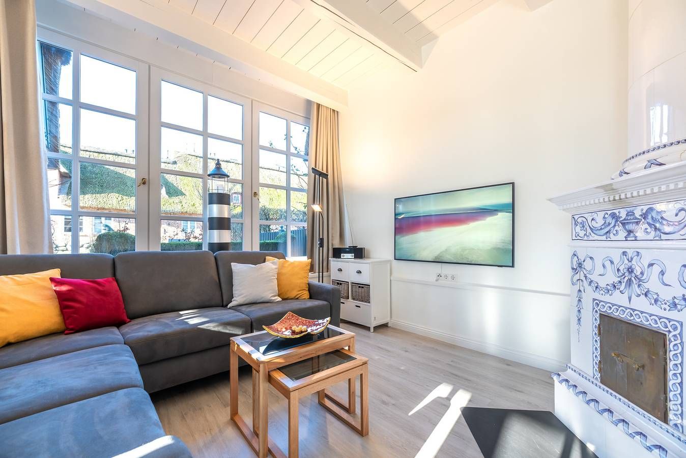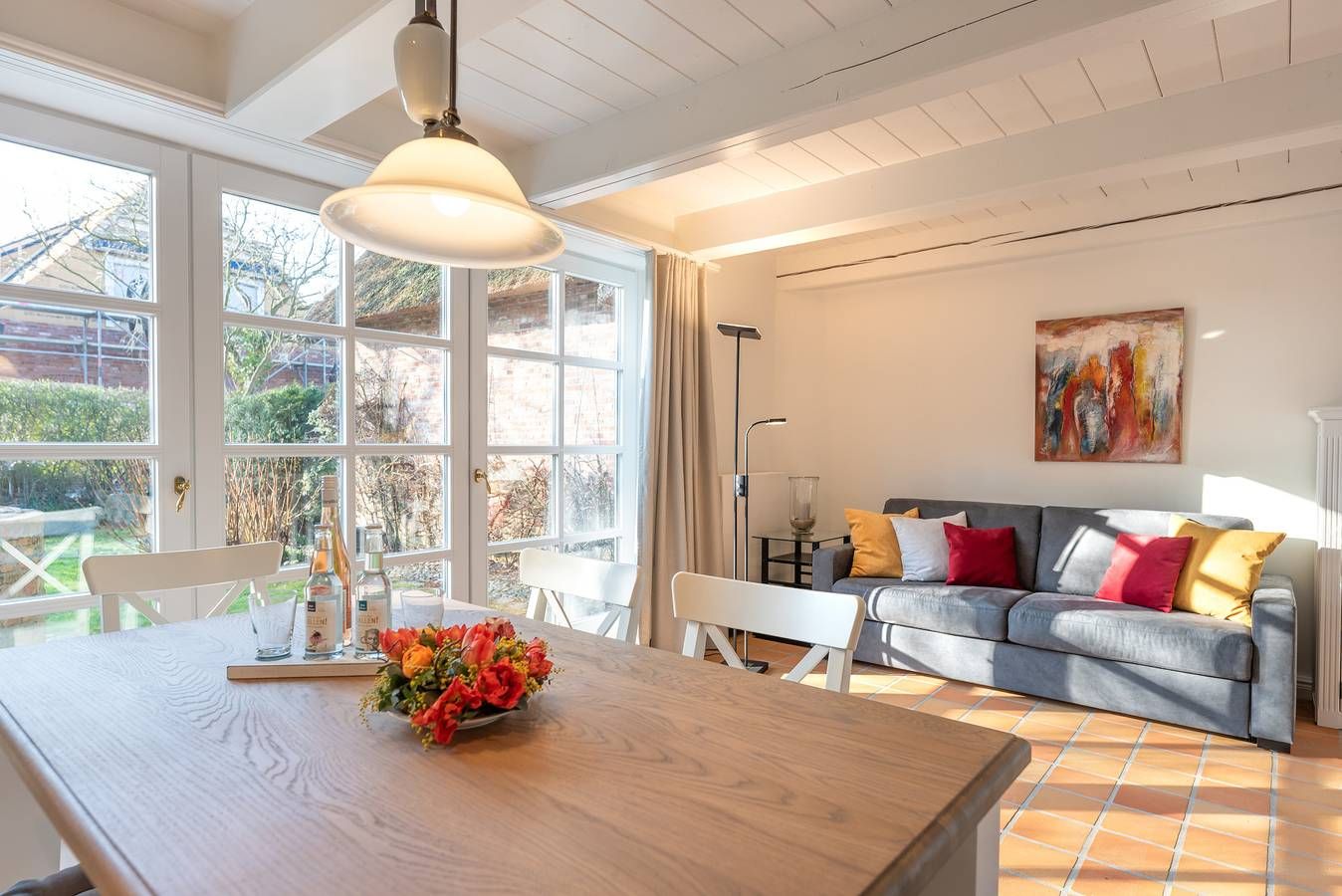 ! Die Wohnung wurde 12/2022 komplett renoviert und neu eingerichtet ! Die gemütliche Ferienwohnung befindet sich in einem aus dem Jahre 1858 stammenden Resthof im Dorfkern von Borgsum, einem Ort mit vielen Reetdachhäusern und der Borgsumer Mühle. Die Nähe zum Strand und den Marschwiesen, die zu ausgedehnten Fahrradtouren und Spaziergängen einladen, macht diesen Urlaubsort so attraktiv. In nur wenigen Gehminuten erreicht man einen Bäcker, einen Fahrradverleih, ein Café / Restaurant und für unsere kleinen Gäste einen Spielplatz. Weitere Restaurants, Einkaufsmöglichkeiten und attraktive Freizeitangebote bietet das 2 km entfernte Nachbardorf Nieblum. Ausstattung der Erdgeschosswohnung: helles Wohn-Esszimmer mit integrierter Küche und Ausgang in den Garten und auf die eigene Südterrasse mit Gartenmöbeln und Strandkorb,alter Kachelofen im Wohnbereich - ideal für gemütliche Abende, Schlafzimmer mit Doppelbett und im Wohnbereich ein Schlafsofa bieten auch vier Personen ausreichend Platz für einen erholsamen Urlaub, Duschbad/WC, Abstellraum für die Garderobe, weiterer Abstellraum. ANKER Bluetooth Radio und Smart TV vorhanden. Waschmaschine und Trockner stehen im Haus gemeinschaftlich kostenlos zur Verfügung.