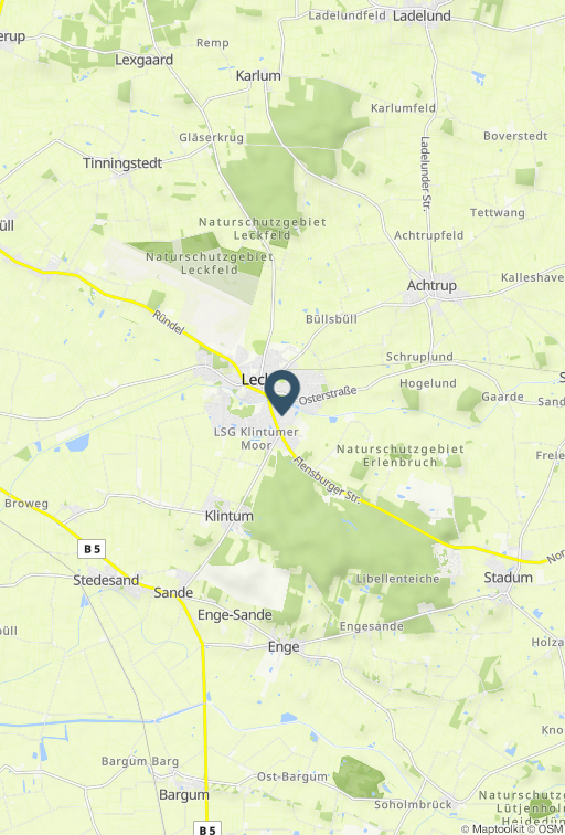 Der Rundwanderweg Leck führt auf 7 km einmal um den Ortskern herum – erfahren Sie Wissenswertes zur regionalen Flora, Geest und Marsch oder der Geschichte der Turmhügelburg Leckhuus.