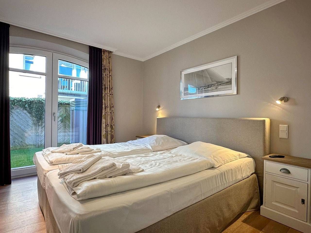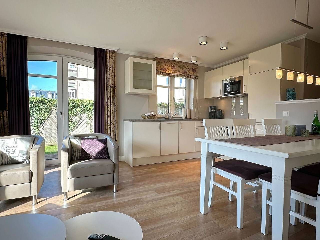 Exklusive 4-Zimmer-Ferienwohnung in der Residenz Alva mit Wellnessbereich (Pool, Sauna, Dampfsauna) unweit des Badestrands und der Fußgängerzone. Nichtraucher, ca. 108m².EG.: Wohnraum mit Sitzecke und Sessel, Essplatz, Flat-TV, Stereo-Anlage (CD und Bluetooth), W-LAN (ohne Gewähr), Süd-/Westterrasse mit Gartenmöbeln, offene Küche mit Mikrowelle, Backofen und Geschirrspüler, Duschbad/WC, Schlafzimmer mit Doppelbett/Flat-TV UG: 2 Schlafzimmer mit Doppelbetten, Flat-TV`s und 2 Duschbädern. Direkter Zugang zum Schwimmbadbereich. PKW-Stellplatz Nr.5. Waschküche (gegen Gebühr). Bettwäsche und Handtücher sind zur Anreise aufgezogen. Tierhaltung ist nicht gestattet! Auf dem östlich angrenzenden Nachbargrundstück entsteht ab März 2024 ein Neubauvorhaben, hier kann es zu Lärmbelästigungen kommen.