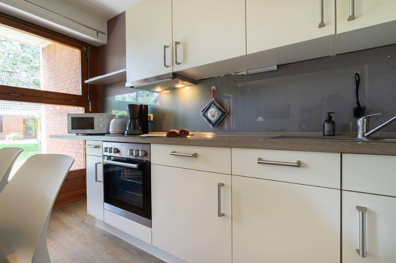 Fühlen Sie sich in Riekes Kajüte wie am Meer. Ein brandneues Kuschelsofa lädt zum Entspannen und Erholen ein. Der geräumige Wohnraum ist mit Kirschholzmöbeln, Gesellschaftsspielen, Büchern und einem Flat-TV ausgestattet. In der offenen Küche mit Geschirrspülmaschine, Cerankochfeld, Mikrowelle, Geschirr ist einfach alles üppig vorhanden. So fällt die Entscheidung im Urlaubsdomizil zu kochen, oder doch auszugehen etwas schwerer. Genießen Sie Ihren Wein auf der sonnigen möblierten Südterrasse, oder bummeln Sie doch noch ums Eck in das Dorfzentrum. Schlummern Sie entspannt im separaten Schlafzimmer mit Boxspringbett (1,60 x 2,0 m). Für eine dritte Person ist mit einem Handgriff ein Klappbett vorhanden. Ein Duschbad mit ebenerdiger Dusche, Abstellecke und Waschmaschine, sowie kostenfreies W-Lan wartet auf Sie. Max. 1 Hund bei einer Belegung mit 2 Personen, bei einer Belegung mit 3 Personen ist die Mitnahme eines Hundes nicht möglich. Gemütliche Wohnung zentral im alten Dorf mit überdachter Terrasse und großem Kuschelsofa. Flexibler Self Checkin. Die Wohnung ist ausgestattet mit offener Küche, ebenerdiger Dusche, einem 160er Boxspringbett mit komfortabler Matratze und einem Klappbett für einen dritten Gast. Den entspannten, historischen Dorfkern "Ortsteil Dorf" mit seinen Geschäften und Restaurants erreichen Sie in nur wenigen Gehminuten. Von dieser heimeligen, ruhig gelegenen Wohnung seid ihr aber auch in nur 2 Minuten in den Dünen und somit am Übergang zum Strand. Auch der Bahnhof St Peter-Süd mit dem dahintergelegenem Einkaufszentrum ist nur einen Katzensprung entfernt. Ohne ihren PKW kommen auch Pferdesportler in wenigen Minuten zur Reitanlage am Deich oder Kite-Surfer zu ihrem Revier. Eine Bushaltestelle ist fast direkt vor der Haustür. Die Pestalozzistr ist kürzlich als "Fahrradstraße" benannt und gekennzeichnet und nur noch für Anlieger frei. ______________ HIGHLIGHTS: • Zentrale Lage nah am historischem Dorfzentrum und Strandabschnitt Süd • eigener Parkplatz • überdachte Terrasse mit Gartenmöbel • Restaurants und Bars in wenigen Minuten zu Fuß erreicht • Willkommenspräsent inklusive • Barrierearmer Zugang im EG • Self Checkin ab 15 Uhr • Waschmaschine in der Wohnung zur freien Nutzung _____________ Ausstattung der Wohnung Riekes Kajüte: Wohnzimmer: • gemütliches Kuschelsofa • Klappsofa für einen weiteren Schlafplatz • Esstisch mit 4 Stühlen • Zugang zur überdachten sonnigen Terrasse mit Essplatz im Freien • Garten hinter dem Haus • Flat TV • Bücher und Gesellschaftsspiele Schlafzimmer: • Komfortables Boxspringbett 1,60m x 2m • Kleiderschrank • TV Küche: • Filterkaffeemaschine • Wasserkocher • Teezubehör • Ceranfeld 4 Platten • Toaster • Backofen • Geschirrspüler • Mikrowelle • Kühlschrank mit Gefrierfach • Salz, Pfeffer, Gewürze, Kaffeefilter, Tee, Spülmittel, Seife, Reinigungsmittel, Küchenrolle • jede Menge Kochzubehör Bad: • Ebenerdige Dusche • Waschmaschine zur freien Nutzung Das Wohnzimmer ist mit einem kuscheligem Sofa und einem Lesesessel ausgestattet. Esstisch mit vier Stühlen, Flat TV und Stehlampe. Die Terrasse betritt man durch das Wohnzimmer. Das gemütliche Schlafzimmer ist mit einem komfortablen Boxspringbett 160 x 200 cm, Leselampe, einem eigenen TV und Kommode ausgestattet. Die offene Küche ist ausgestattet mit modernen Elektrogeräten. Hier findest du ein vier Platten Ceranfeld, Backofen, Mikrowelle, Dunstabzugshaube, Spülmaschine, Kühlschrank mit Gefrierfach, Toaster, sowie Kaffeemaschine und Wasserkocher. Das Badezimmer verfügt über eine bodengleiche Dusche. Auf der großen Terrasse kannst du gemütlich Frühstücken oder den Abend ausklingen lassen. Hier findest du einen Tisch mit drei Stühlen. Die Terrasse ist offen zum Gemeinschaftsgarten. Die Wohnung liegt im Erdgeschoss und verfügt über einen eigenen Eingang. Ihr habt die komplette Wohnung für euch alleine. Die Terrasse ist zum Garten offen. Die dahinter liegende Wiese wird gemeinschaftlich genutzt. Bettwäsche und Handtücher sind gegen eine Gebühr buchbar. Maximal 1 Haustier wird in der Wohnung bei einer Belegung von 2 Personen unter Zusatzgebühren akzeptiert. Bei Buchung mit 3 Personen kein Hund möglich Anreisetag: nach Absprache - früheste Anreisezeit: 15:00 Uhr Abreise: bis spätestens 10:00 Uhr