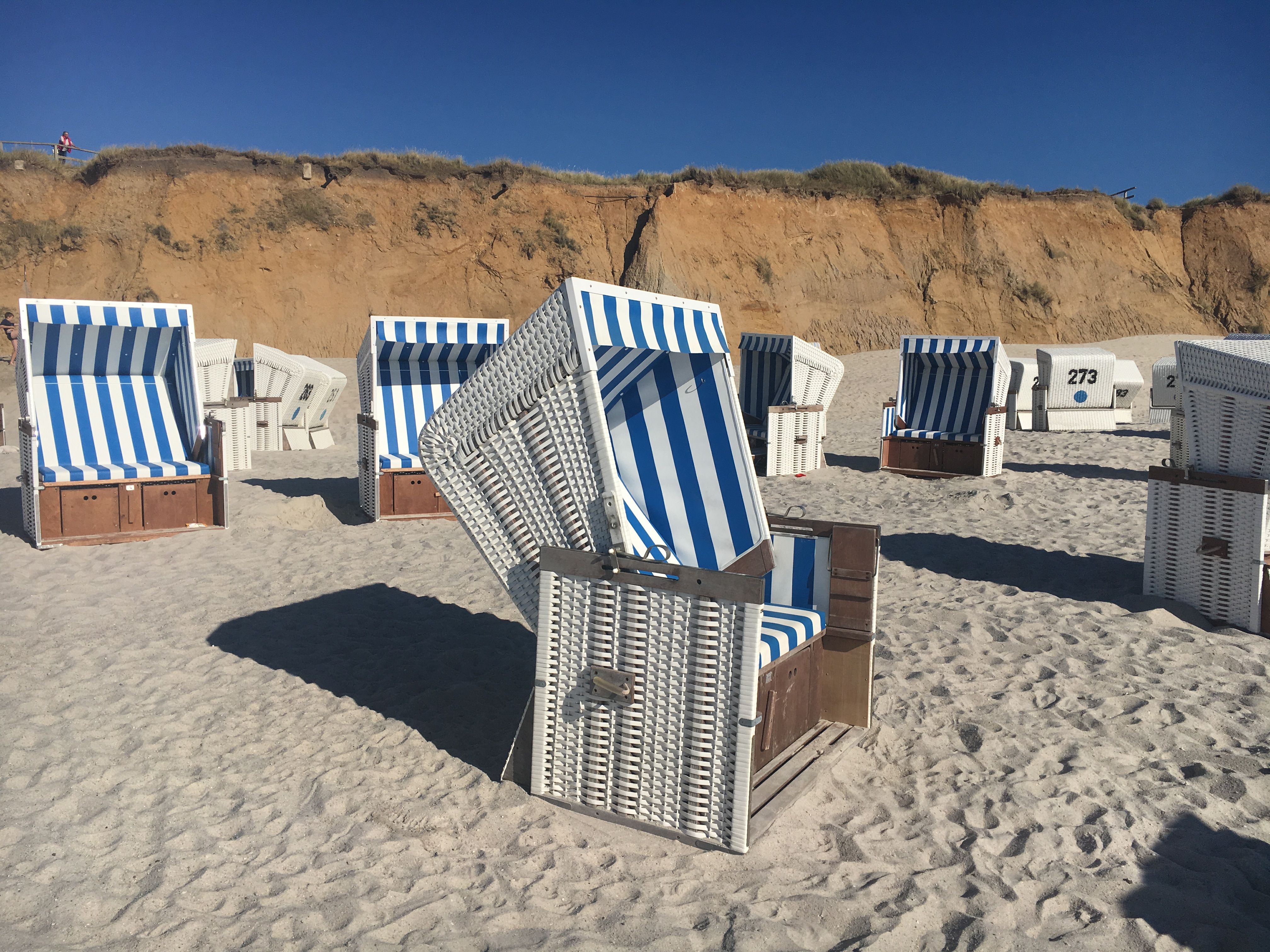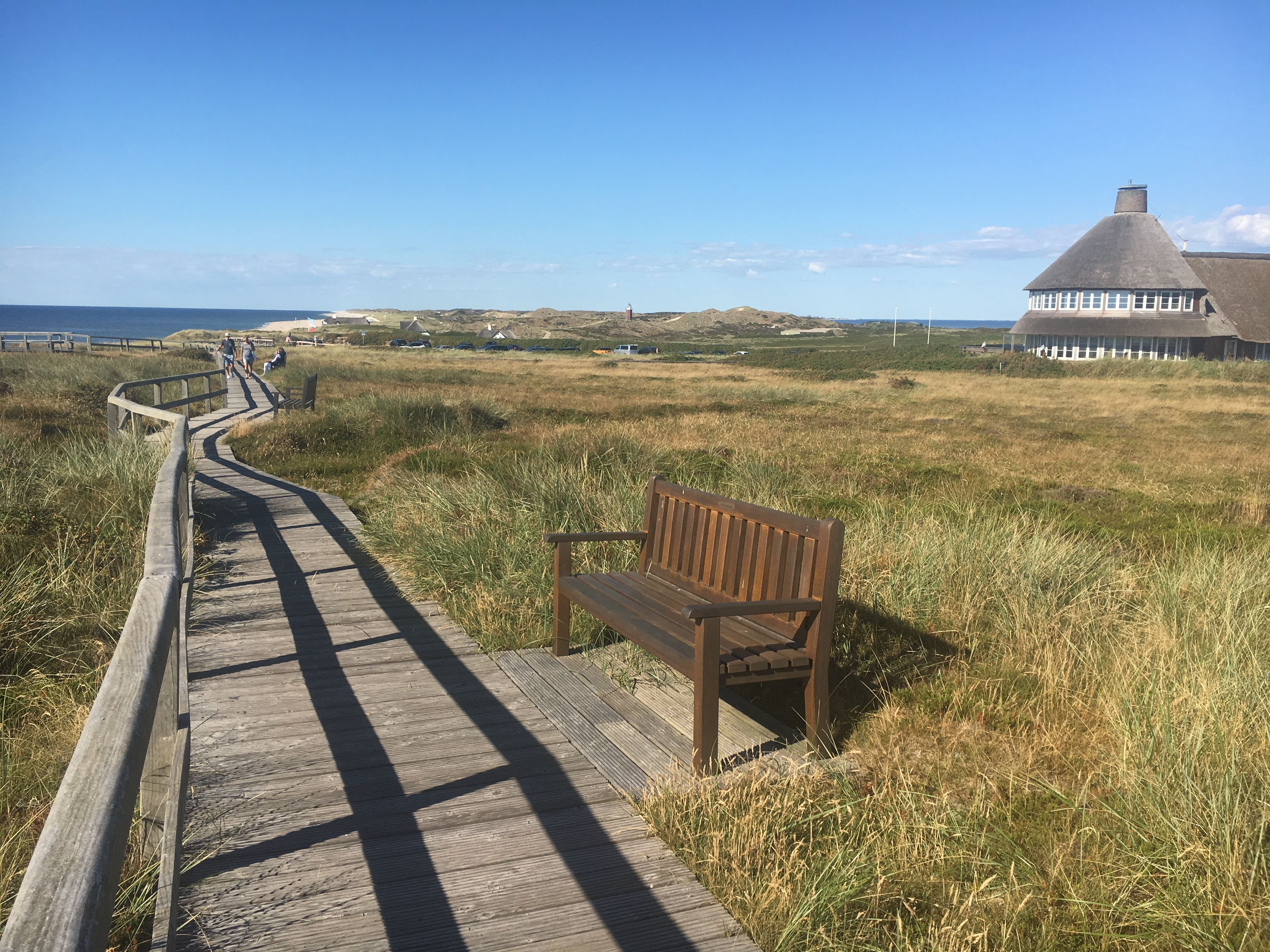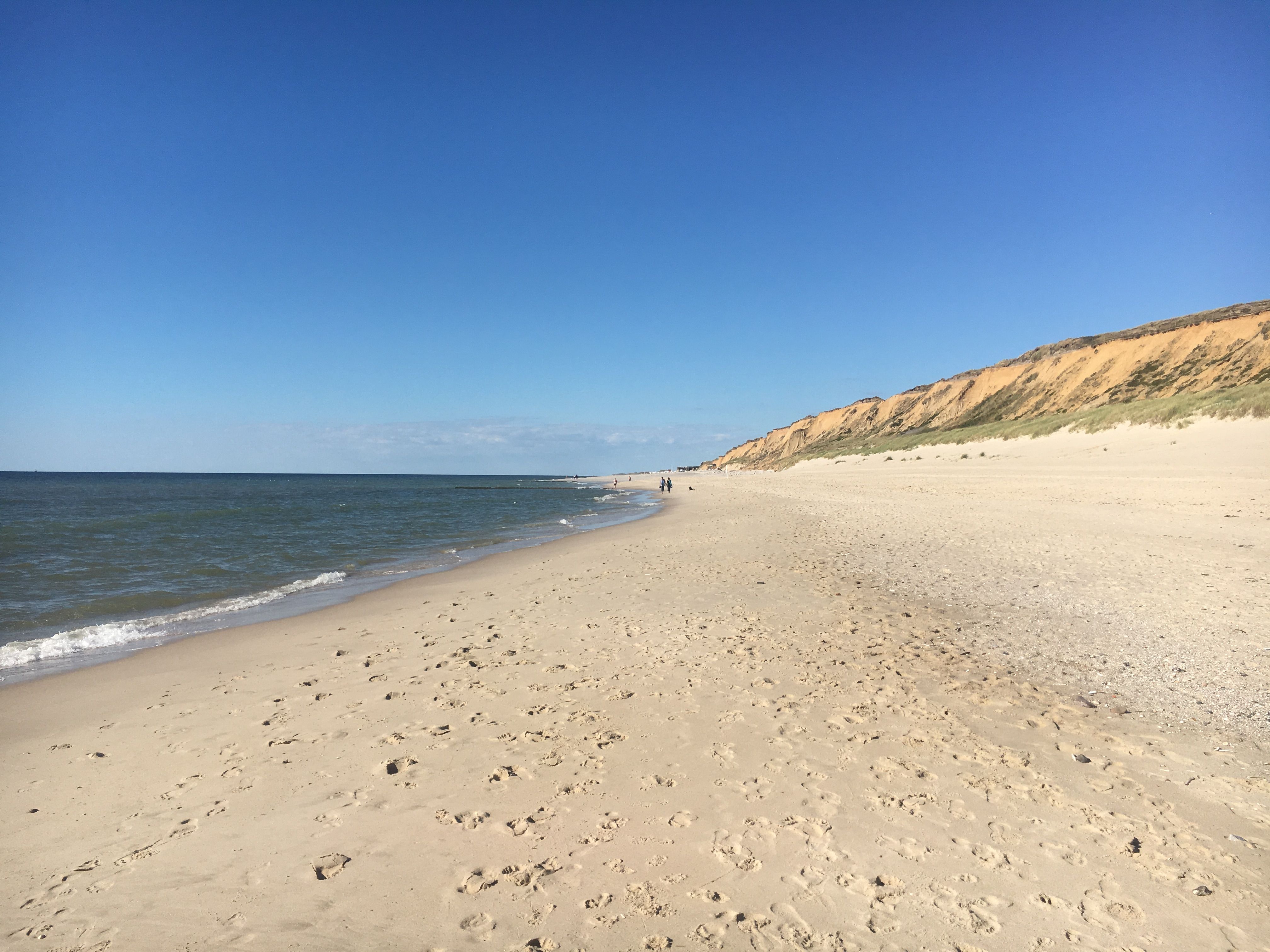 Zwischen Wenningstedt und Kampen erstreckt sich das Rote Kliff, dass bis zu 30 Meter über dem Strand ragt und besonders im Abendlicht seinem Namen alle Ehre macht. Bei dieser Wanderung geht es von Wenningstedt oberhalb des Kliffs bis nach Kampen, wobei man jederzeit einen traumhaften Blick über den Sylter Weststrand hat. Dieser wird in Kampen angekommen von der Aussicht von der Uwe Düne (mit 52 Metern Sylts höchste Erhebung) sogar getoppt. Denn hier kann man bei gutem Wetter bis zur Nord- und Ostspitze von Sylt schauen und anhand der Leucht- und Kirchtürme die anderen Inselorte ausmachen. In Kampen geht es, an der ikonischen Sturmhaube und dem Kampener Leuchtfeuer vorbei, an den Strand, denn der Rückweg nach Wenningstedt wird unterhalb des Roten Kliffs am Flutsaum absolviert. Aus dieser Perspektive erschließt sich die Höhe und rote Farbe des Kliffs erst richtig.