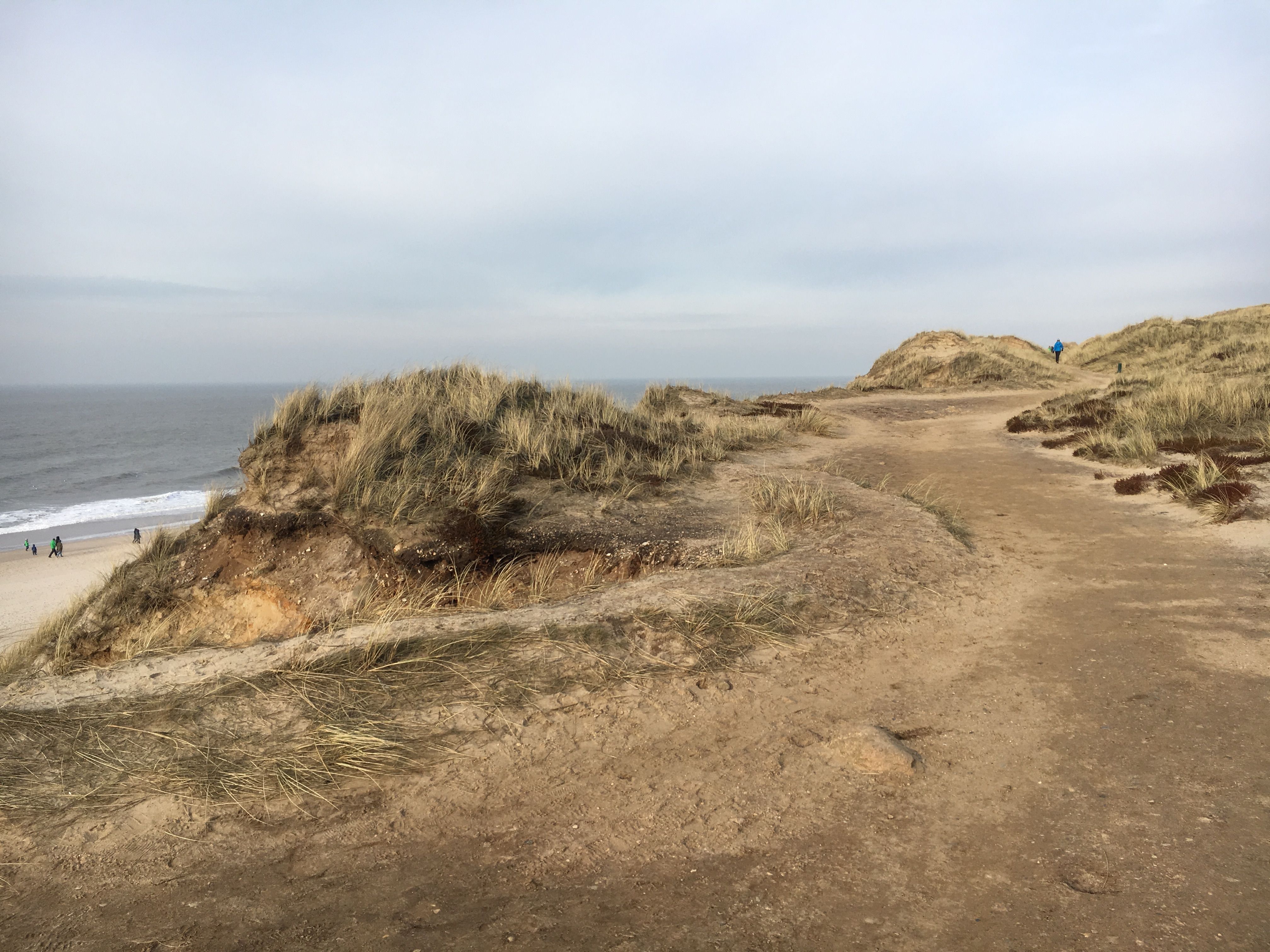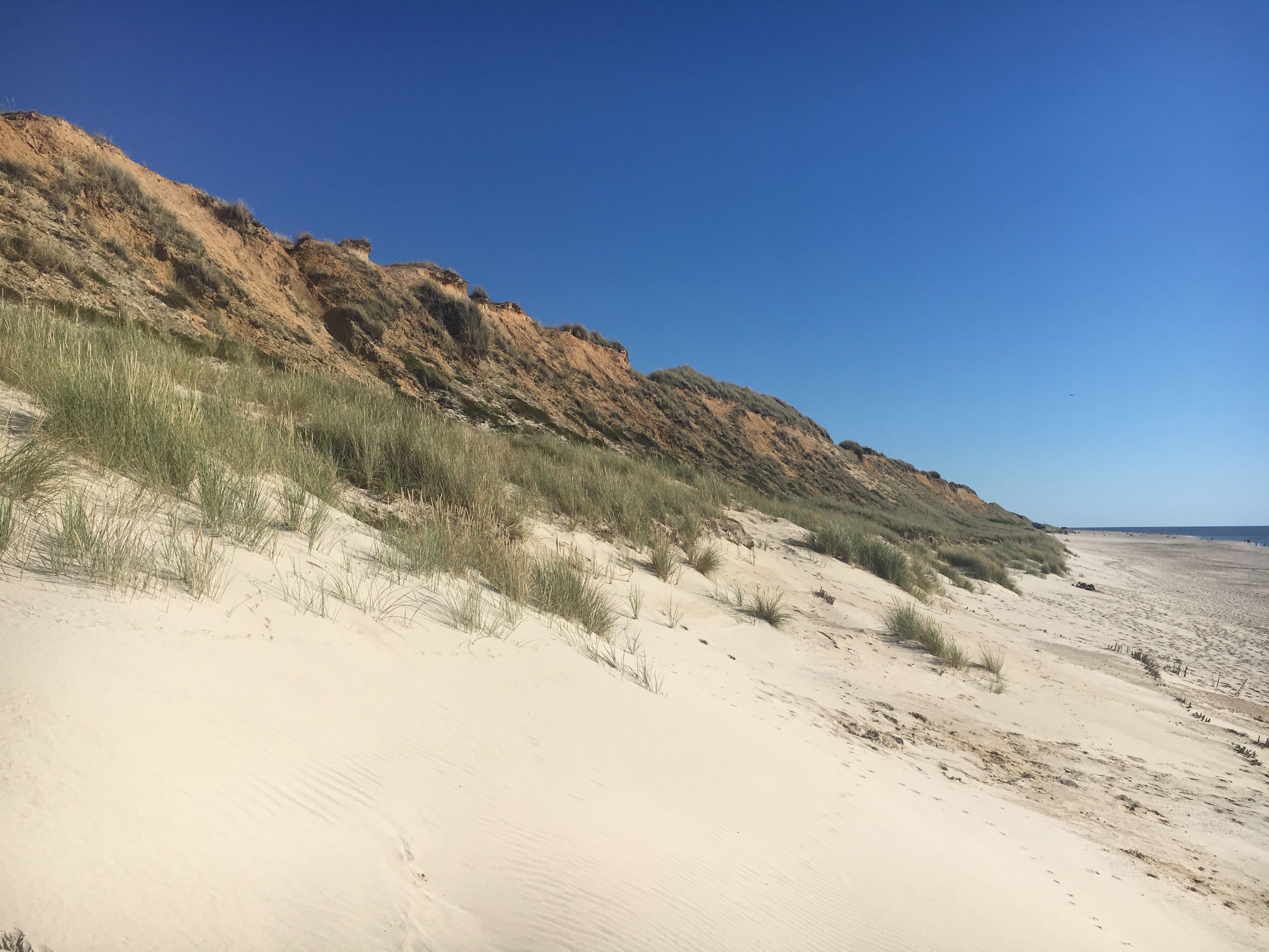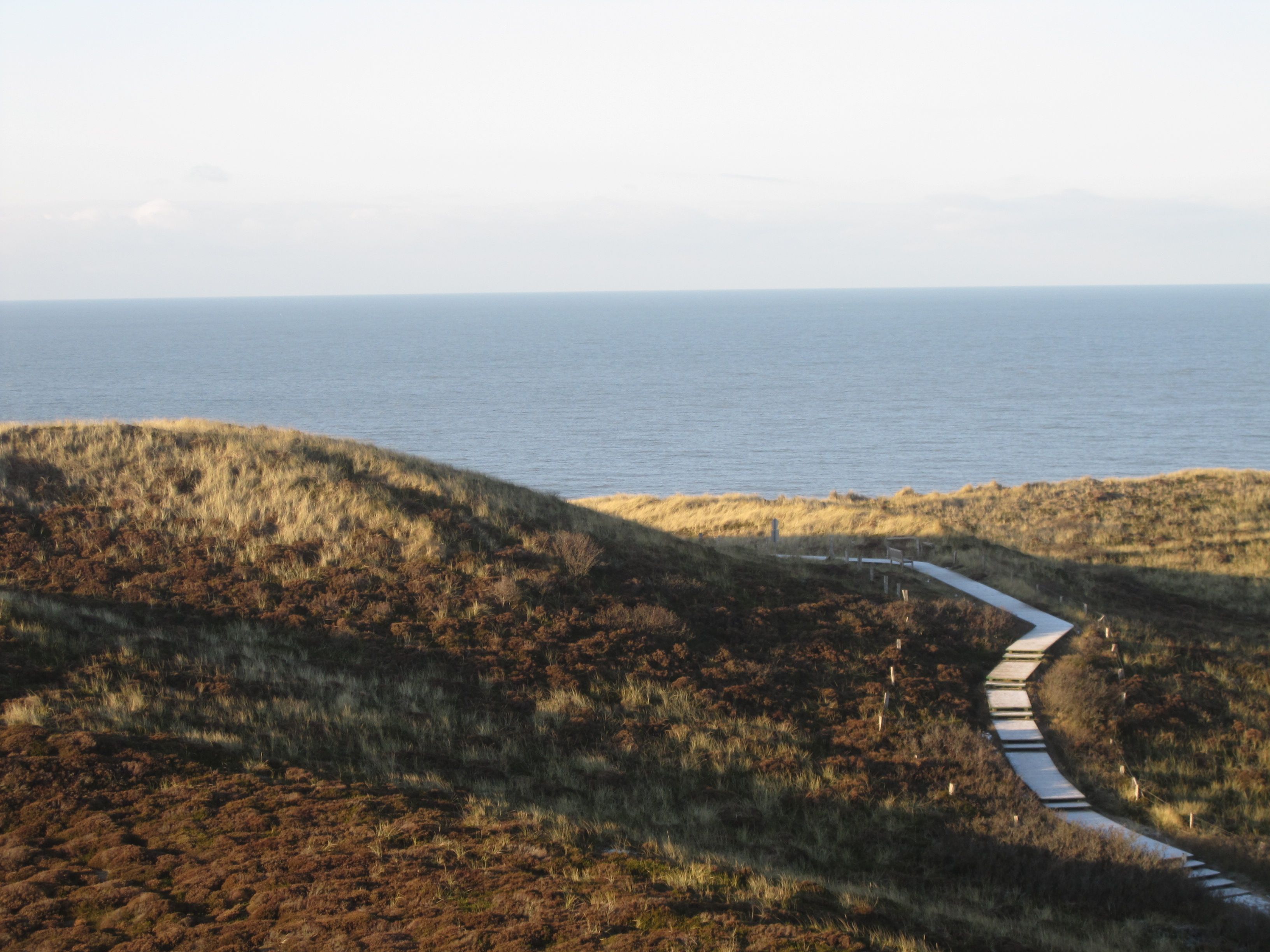 Ein naturbelassener Wanderweg auf dem Roten Kliff von Wenningstedt nach Kampen mit fast dauerhaftem Meerblick und Rückweg am Strand.