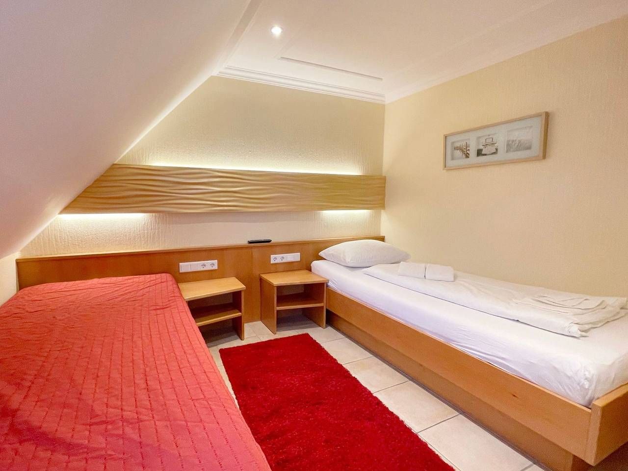 3 Zimmerwohnung mit Balkon (OG und DG), Wohnzimmer mit gemütlicher Sitzgruppe und Eßecke, offene Küche mit Cerankochfeld, und Geschirrspüler, Flatscreen-TV, 2 Schlafzimmer für je 2 Personen mit jeweils eigenem Badezimmer mit Dusche WC und Waschbecken, im UG befinden sich für die Gäste des Hauses Waschmaschine und Trockner gegen Gebühr. 1 PKW-Stellplatz. Gerne dürfen Sie hier ein gut erzogenes Haustier mitbringen. Dafür wird dann eine einmalige Haustiergebühr berechnet. Ab einer Buchungsdauer von 14 Übernachtungen ist das Wäschepaket pro Person inklusive. Mindestaufenthalt während der Sommerferien 14 ÜN, weniger ÜN auf Anfrage. Sonn- und Feiertage keine Abreisemöglichkeit.