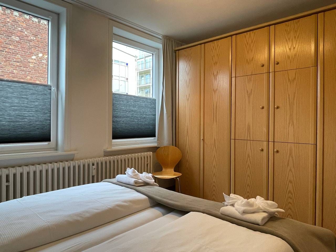 Am Sandwall in Wyk nur wenige Schritte vom Strand entfernt können in dieser schönen Wohnung 2 bis 4 Personen Ihren Urlaub in zentraler Lage verbringen. ACHTUNG: Aktuell finden Baumaßnahmen am Nachbargebäude statt, dessen Dauer nicht absehbar ist. (Stand 02.06.2025) Herzlich willkommen in unserer direkt an der Promenade gelegenen Ferienwohnung Sandwall 72. Von hier aus kann man durch die idyllischen Gassen der kleinen Inselhauptstadt laufen, die entzückenden, Reet gedeckten Friesenhäuser entdecken oder zu einer langen Wanderung entlang der Promenade bis in das Friesendorf Nieblum aufbrechen. Sie betreten die Wohnung über eine Terrasse. Von einem kleinen Flur kommt man direkt in das gemütliche Wohnzimmer. Die Couch kann mit wenigen Handgriffen in ein Doppelbett (170x190cm) verwandelt werden. Bei einem guten Buch, einer schönen Fernsehsendung oder lustigen Gesellschaftsspielen lassen sich die Abende kurzweilig gestalten. Das großzügige Schlafzimmer ist mit einem geräumigen Wandschrank (mit TV) und einem Doppelbett (zwei Matratzen 90x200 cm) ausgestattet. Ausgeschlafen und gut erholt nehmen Sie Ihren Morgenkaffee am Esstisch in der gut ausgestatteten Küche einschl. Geschirrspüler, Mikrowelle, Backofen, Senseo Duo (Kaffeepad- & Filtermaschine) und vieles mehr ein und genießen die ersten Sonnenstrahlen des neuen Tages. Die Wohnung verfügt über ein freundliches, helles Duschbad. Den Nachmittagskaffee können Sie auf der zur Wohnung gehörenden Terrasse einnehmen und abends dort in gemütlicher Runde den Tag ausklingen lassen. Ein kostenloser W-Lan Anschluss steht unseren Gästen zur Verfügung. Nur ein paar Schritte sind es bis an den Hauptstrand, das Kurhaus oder zum AquaWyk, dem Meerwasserhallenbad. Den Pkw können Sie bequem vor dem Haus be- und entladen. Die kostenfreie Parkmöglichkeit bietet sich in 300 m Entfernung, auf dem Parkplatz bei AquaWyk. Highlight: Am Strand erwartet Sie von ca. Anfang Mai bis Ende September ein Saisonstrandkorb, der Ihnen kostenfrei zur Verfügung steht! Wäschespinne befindet sich im Garten. ---------------------------------------- 2025: Infos zum Wäschepaket (obligatorisch): Unser Wäschepaket besteht aus der bezogenen Bettwäsche, 1 Duschtuch, 2 Handtüchern, 1 Geschirrtuch und einem Badvorleger und gehört obligatorisch zur Buchung dazu. Ab 21 Übernachtungen bieten wir auf Wunsch einen kostenfreien Wäschewechsel an. Zusätzlich können Handtücher und Duschtücher optional nach Bedarf einzeln hinzugebucht werden. Ab 2026 mehr Flexibilität und Individualität: Das bekannte Wäschepaket ist nicht mehr buchbar. Die Bettwäsche bleibt aus hygienischen Ansprüchen eine obligatorische Serviceleistung. Sie finden die Betten weiterhin bezogen vor. Doch Hand- und Duschtücher können Sie künftig entweder selbst mitbringen oder auf eigenen Wunsch einzeln optional hinzubuchen. Diese Variante ist aus betrieblichen Gründen erst für Buchungen in 2026 buchbar und entspricht dem Gästewunsch laut Umfrage nach mehr Flexibilität, Individualität und Nachhaltigkeit! Infos zum Präsentkorb Föhrer Inselkäse für 2 oder 4 Personen (Inhalte nicht austauschbar) Der Föhrer Präsentkorb für 4 Personen enthält: 200g Föhrer Naturkäse, 200g roten Föhrer Fruchtaufstrich, 430g Alkersumer Gemüsetopf, 6 Stangen (ca. 160g) Wattwürmer, 150g Landleberwurst , 125ml Föhrer Chutney und 0,33l Föhrer Biar. Der Föhrer Präsentkorb für 2 Personen enthält: 200g Föhrer Bärlauch-Käse, 200g Föhrer Fruchtaufstrich Apfel-Zimt, 430g vegane Linsenbolognese und ca. 130g mildem Landschinken vom Schwein.