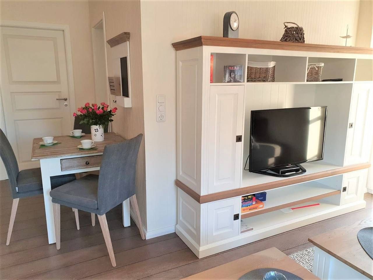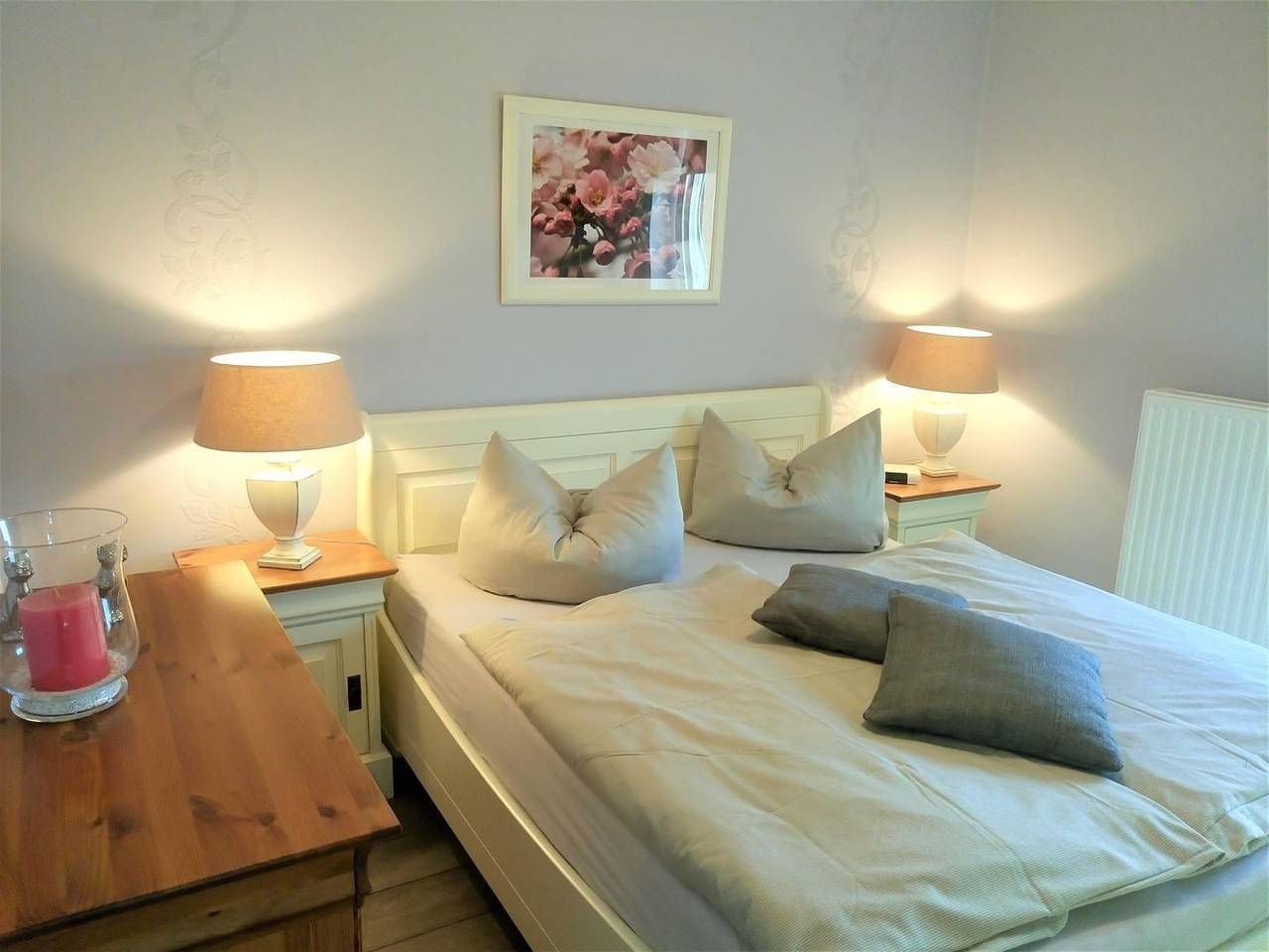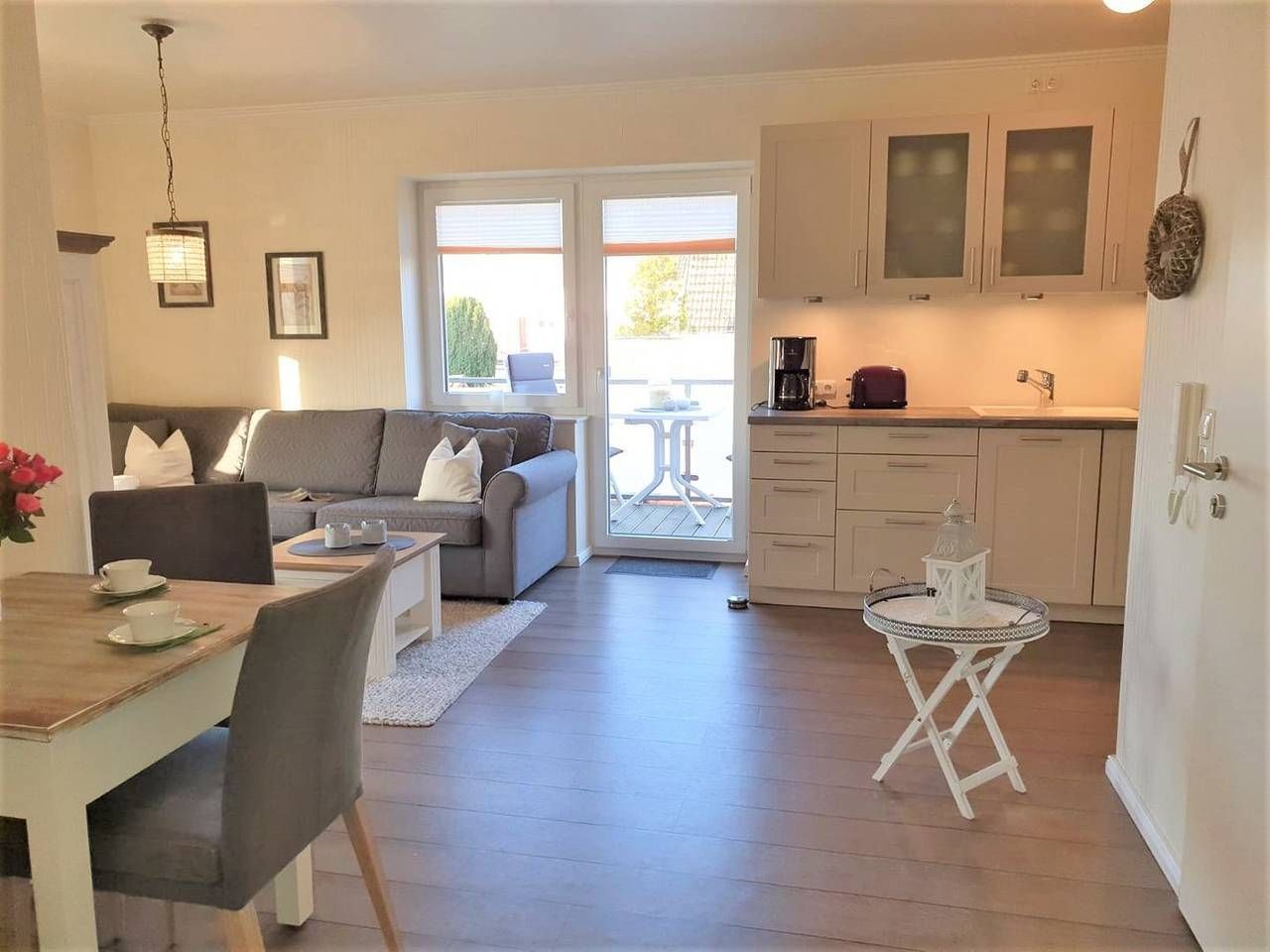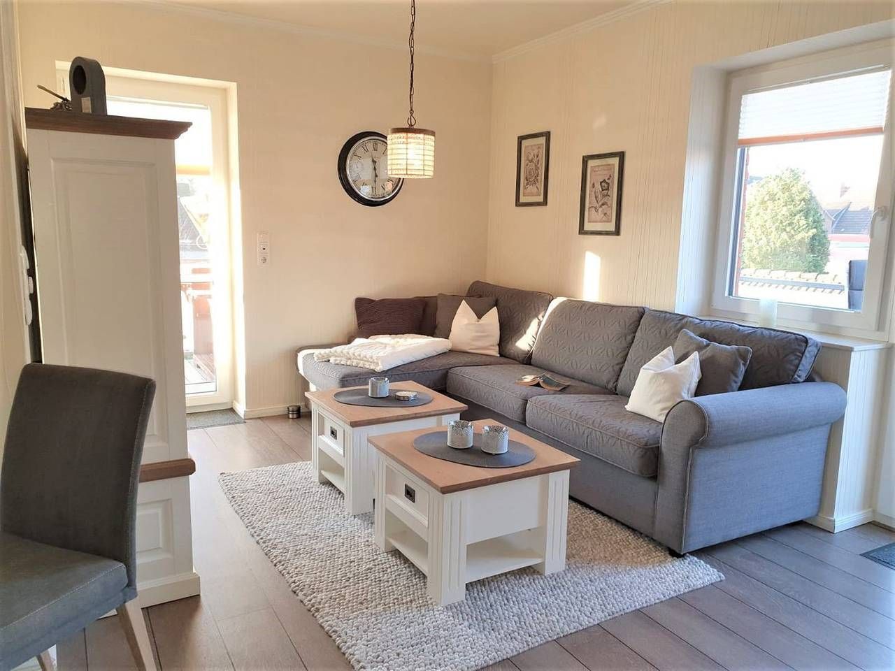 Urlaub genießen, in guter, zentrumsnaher Lage im schönen Büsum an der Nordsee. Die Ferienwohnung "Sunrise" bietet ihnen, auf 60 m² im ersten Stock, dafür das nötige Ambiente. Bei gutem Wetter können Sie es sich auf einem der beiden Balkone gemütlich machen. Der eine Balkon mit Südausrichtung verfügt neben dem üblichen Mobiliar über eine Markise. Der Balkon gen Westen ist mit Sitzmöbeln ausgestattet. Aber auch in dem schicken und gemütlich eingerichteten Wohn- Essbereich mit der großen Couch kann man herrlich entspannen. Der Wohnbereich verfügt über einen Esstisch, an dem man sich mit Köstlichkeiten aus der Region selber ein bisschen verwöhnen kann. Durch die gut eingerichtete und moderne Küchenzeile, die sich ebenfalls im Wohnbereich befindet, ist das kein Problem. Die Wohnung verfügt über 2 Schlafzimmer. Das eine ist mit einem Doppelbett (1,60x 2m, durchgehende Matratze), hübschen Kommoden und einem TV- Gerät eingerichtet, auch kann man von hier aus den Südbalkon betreten. In dem zweiten Schlafzimmer befindet sich eine Schlafcouch, die ausgezogen werden kann (1,40x 2m), hier steht ein Kleiderschrank für Ihre Garderobe bereit. Ein Tageslicht- Bad mit Dusche, WC und Handtuchwärmer rundet diese schöne Wohnung perfekt ab. - Bettwäsche und Handtücher sind nicht inklusive, können aber kostenpflichtig dazu gebucht werden - Sehr zentrumsnah und trotzdem ruhig gelegen - 2 Fahrräder und 1 E- Bike stehen Ihnen kostenfrei zur Verfügung. Nutzung nur ohne Haftung und auf eigene Gefahr - 1 Parkplatz und eine abschließbare Unterstellmöglichkeit für Fahrräder - Kostenfreies W-LAN, für Störungen und Ausfälle übernehmen wir keine Haftung