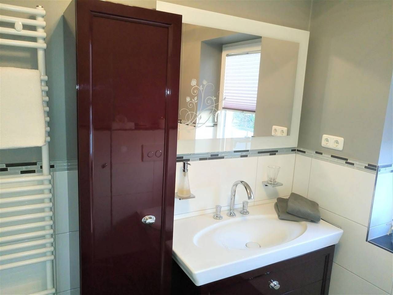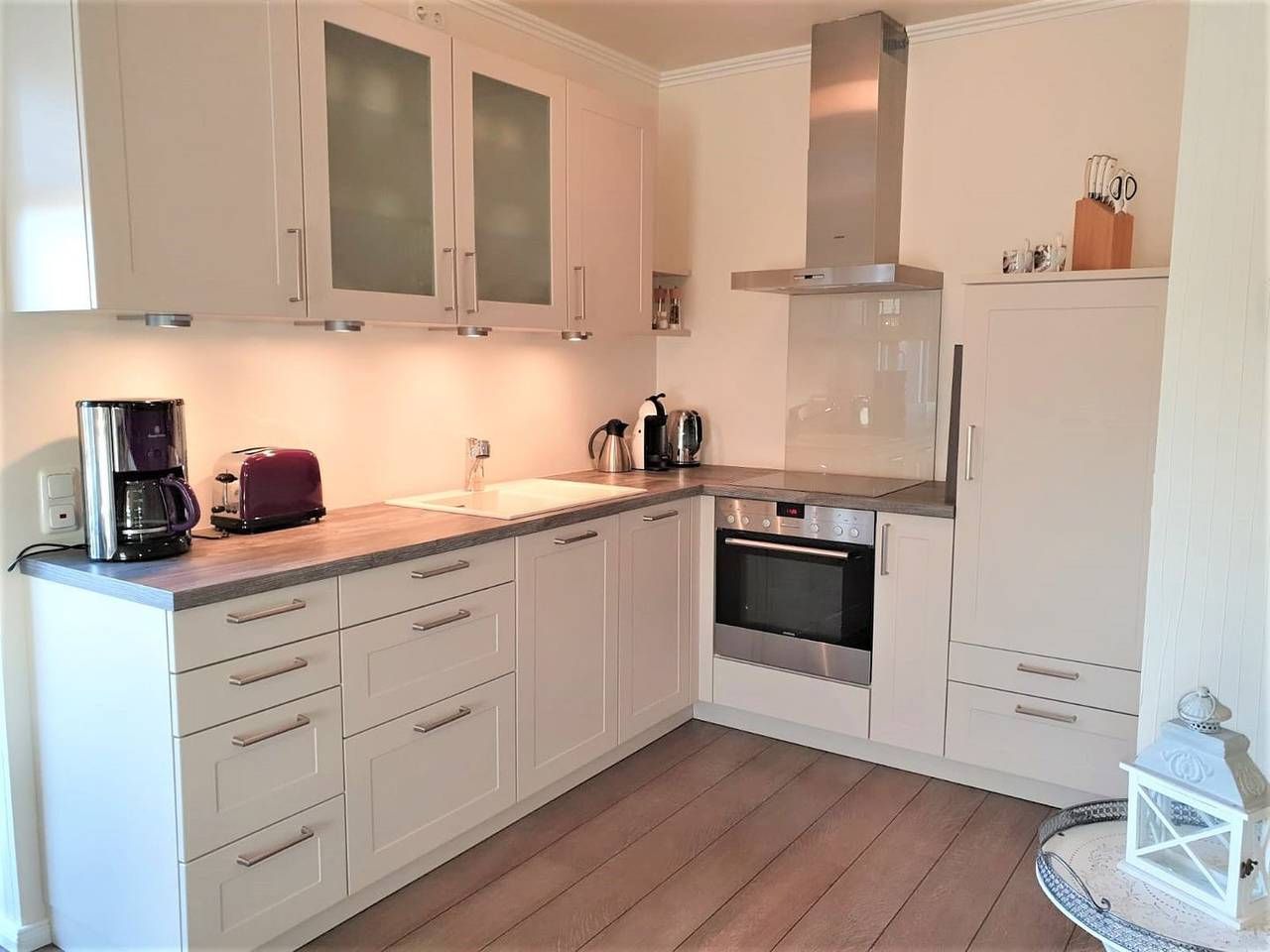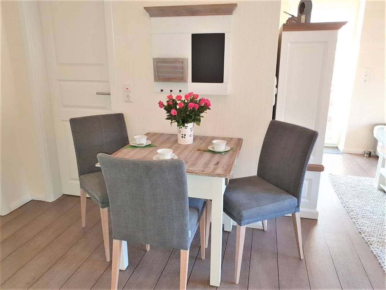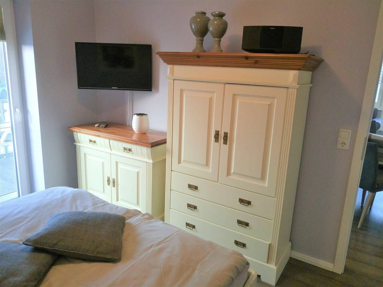 Urlaub genießen, in guter, zentrumsnaher Lage im schönen Büsum an der Nordsee. Die Ferienwohnung "Sunrise" bietet ihnen, auf 60 m² im ersten Stock, dafür das nötige Ambiente. Bei gutem Wetter können Sie es sich auf einem der beiden Balkone gemütlich machen. Der eine Balkon mit Südausrichtung verfügt neben dem üblichen Mobiliar über eine Markise. Der Balkon gen Westen ist mit Sitzmöbeln ausgestattet. Aber auch in dem schicken und gemütlich eingerichteten Wohn- Essbereich mit der großen Couch kann man herrlich entspannen. Der Wohnbereich verfügt über einen Esstisch, an dem man sich mit Köstlichkeiten aus der Region selber ein bisschen verwöhnen kann. Durch die gut eingerichtete und moderne Küchenzeile, die sich ebenfalls im Wohnbereich befindet, ist das kein Problem. Die Wohnung verfügt über 2 Schlafzimmer. Das eine ist mit einem Doppelbett (1,60x 2m, durchgehende Matratze), hübschen Kommoden und einem TV- Gerät eingerichtet, auch kann man von hier aus den Südbalkon betreten. In dem zweiten Schlafzimmer befindet sich eine Schlafcouch, die ausgezogen werden kann (1,40x 2m), hier steht ein Kleiderschrank für Ihre Garderobe bereit. Ein Tageslicht- Bad mit Dusche, WC und Handtuchwärmer rundet diese schöne Wohnung perfekt ab. - Bettwäsche und Handtücher sind nicht inklusive, können aber kostenpflichtig dazu gebucht werden - Sehr zentrumsnah und trotzdem ruhig gelegen - 2 Fahrräder und 1 E- Bike stehen Ihnen kostenfrei zur Verfügung. Nutzung nur ohne Haftung und auf eigene Gefahr - 1 Parkplatz und eine abschließbare Unterstellmöglichkeit für Fahrräder - Kostenfreies W-LAN, für Störungen und Ausfälle übernehmen wir keine Haftung