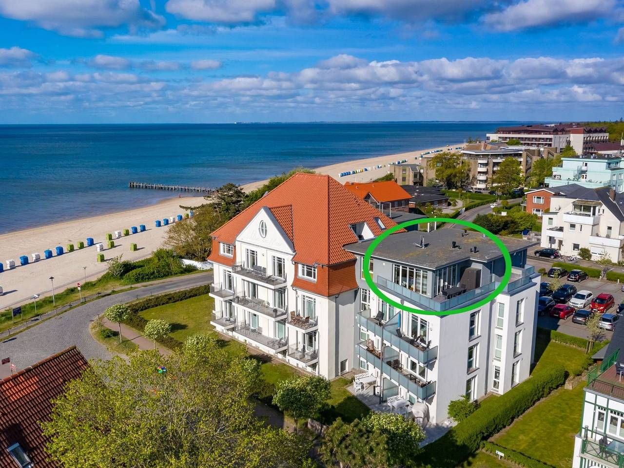 Wir begrüßen Sie im Schloß am Meer, der exklusiven Wohnanlage direkt am Wyker Südstrand gelegen. Ihre Wohnung liegt im Staffelgeschoss. Hier haben Sie eine große Dachterrasse für sich und einen Blick auf die Nordsee und die...