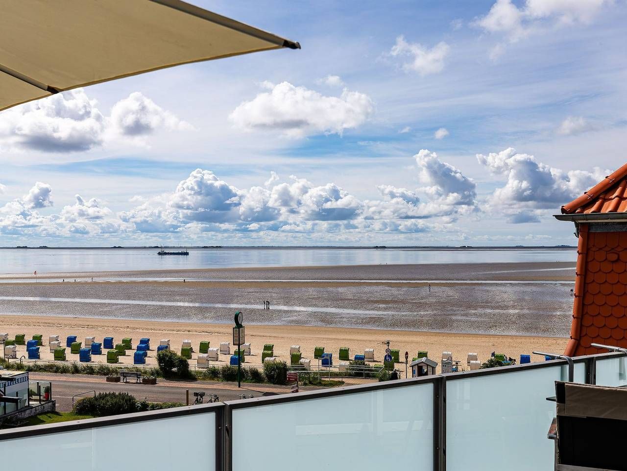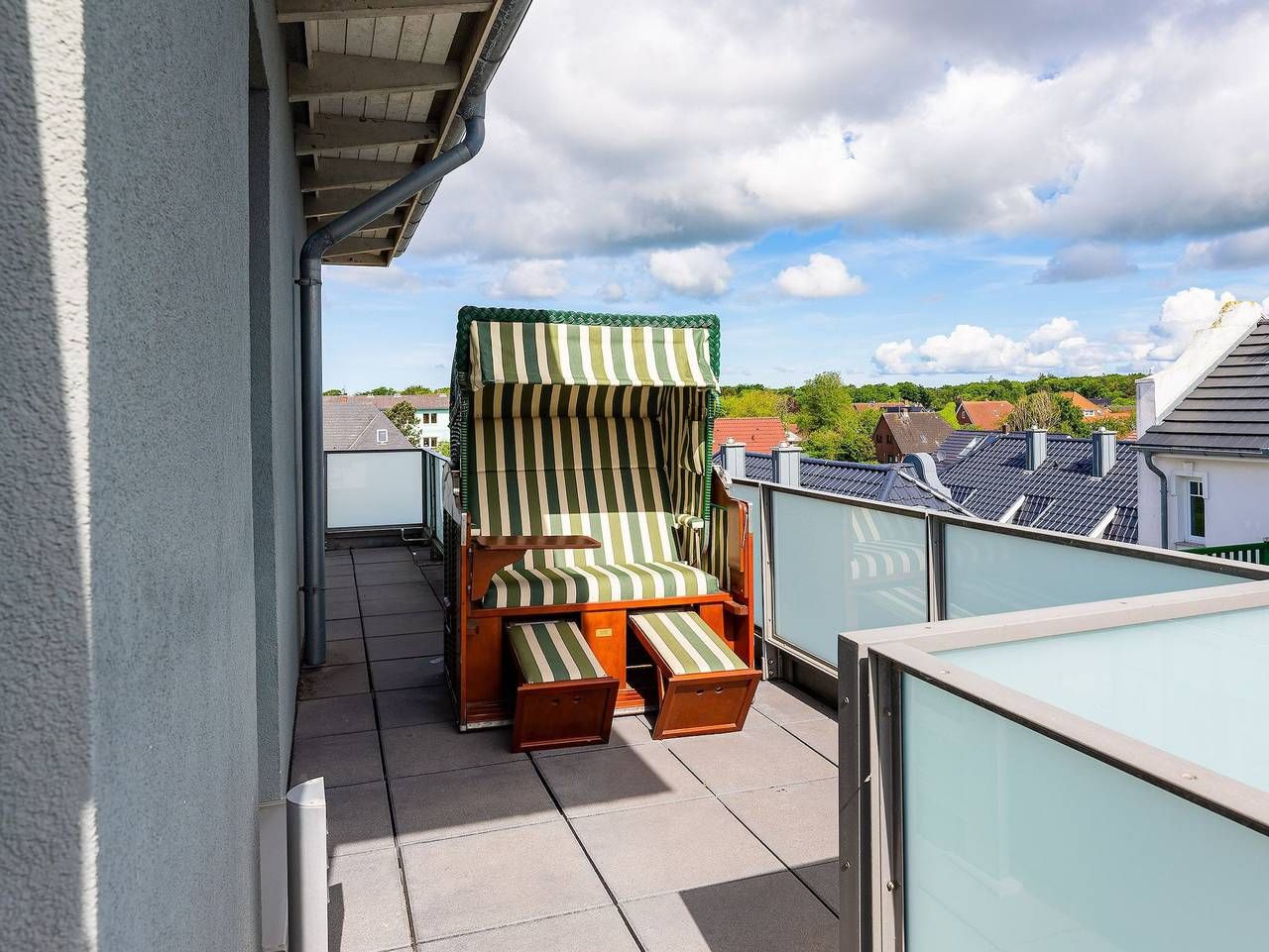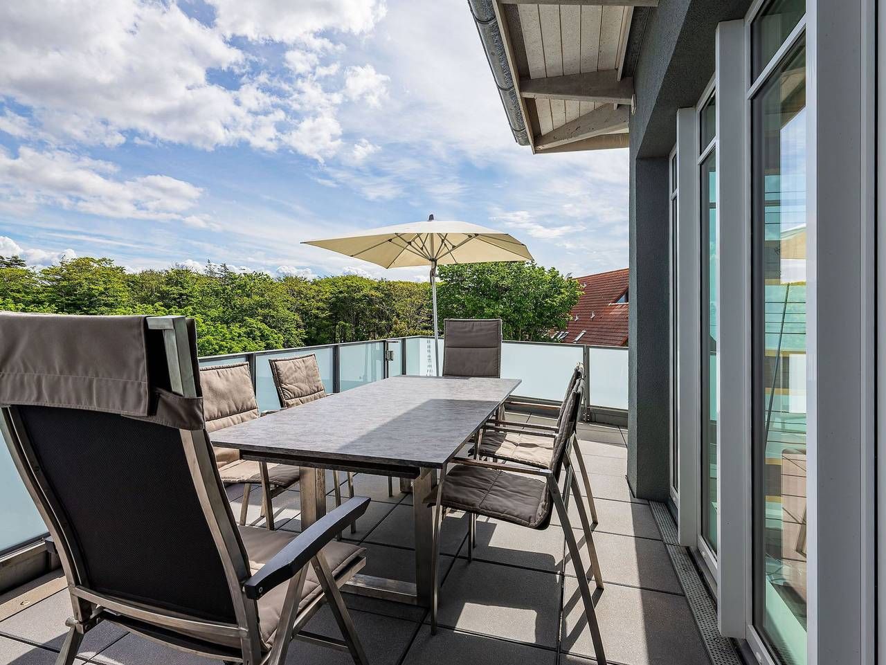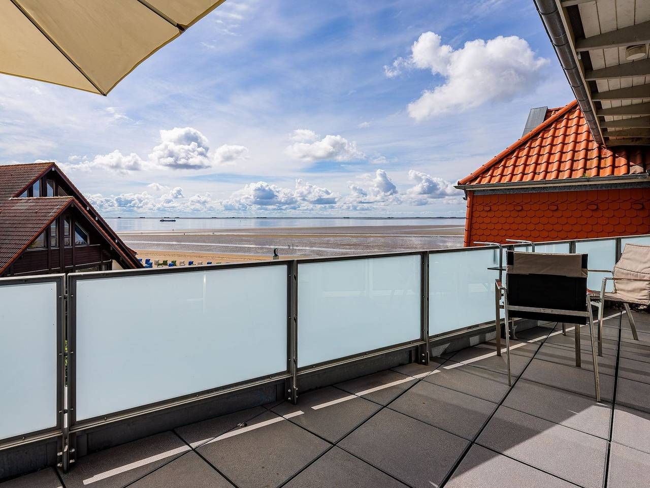 Wir begrüßen Sie im Schloß am Meer, der exklusiven Wohnanlage direkt am Wyker Südstrand gelegen. Ihre Wohnung liegt im Staffelgeschoss. Hier haben Sie eine große Dachterrasse für sich und einen Blick auf die Nordsee und die Halligen. Dieser einzigartige Panoramablick ist unvergesslich. Genießen Sie die Sonne schon beim Frühstück! In nur wenigen Schritten befinden Sie sich auf der Promenade, die Sie ins Herz von Wyk führt. Hier laden Geschäfte zum Bummeln ein und in Cafés und Restaurants werden Sie mit kulinarischen Köstlichkeiten verwöhnt