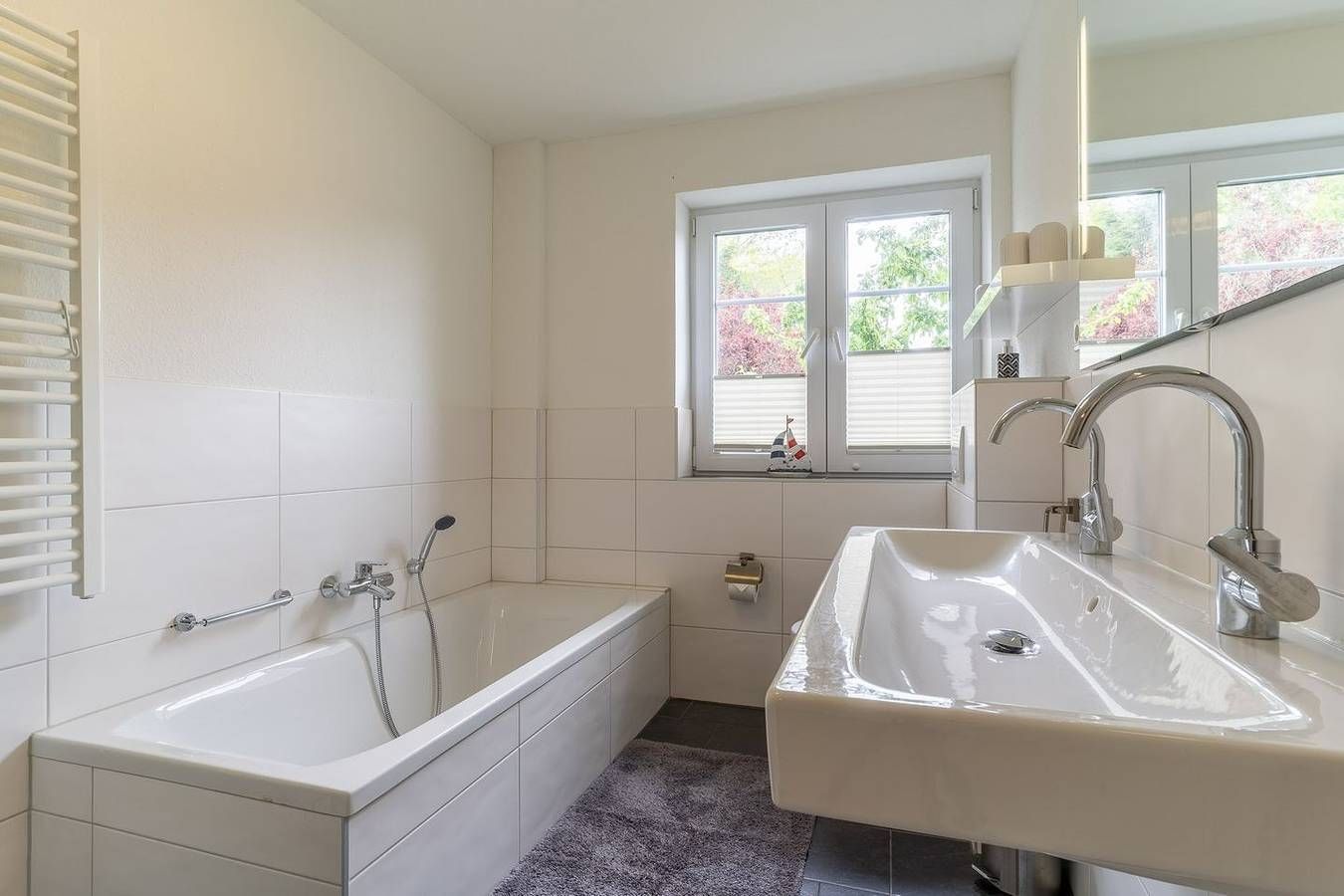 Willkommen in der geräumigen und liebevoll eingerichteten 3-Zimmer-Wohnung "Flut", die im 1. Obergeschoss im Ortsteil Bad liegt und bis zu 4 Personen Platz bietet. Die Wohnung verfügt über zwei Schlafzimmer - das erste mit zwei gemütlichen Einzelbetten und das zweite mit einem komfortablen Doppelbett. Im Schlafzimmer mit dem Doppelbett steht Ihnen auch ein Fernseher zur Verfügung, so dass Sie sich abends gemütlich ins Bett kuscheln und entspannt fernsehen können. Die großzügige Wohnküche ist voll ausgestattet und bietet Ihnen alles, was Sie benötigen, um sich eine köstliche Mahlzeit zuzubereiten. Von hier aus haben Sie auch Zugang zu einem möblierten Balkon, auf dem Sie in aller Ruhe die frische Luft genießen und die malerische Umgebung bewundern können. Das geräumige Badezimmer ist mit einem Doppelwaschtisch, einer ebenerdigen Dusche und einer bequemen Badewanne ausgestattet, so dass Sie sich in aller Ruhe entspannen und erfrischen können. Im Flur vor der Wohnung steht Ihnen auch eine Waschmaschine und ein Trockner kostenfrei zur Verfügung, so dass Sie sich während Ihres Aufenthalts um Ihre Wäsche keine Sorgen machen müssen. Eine E-Ladestation für Ihr Auto ist ebenfalls vorhanden, so dass Sie auch während Ihres Urlaubs umweltbewusst und bequem unterwegs sein können. Die Wohnung Flut befindet sich in einer ruhigen Sackgassenlage im Ortsteil Bad und ist nur ca. 10 Gehminuten vom Ortszentrum entfernt. Hier finden Sie viele Restaurants, Cafés und Einkaufsmöglichkeiten, so dass Sie alles haben, was Sie für einen unvergesslichen Aufenthalt benötigen. Verbringen Sie einen unvergesslichen Urlaub in dieser charmanten und liebevoll eingerichteten Wohnung und genießen Sie die malerische Umgebung von Bad. Hier erwartet Sie Ruhe, Erholung und Entspannung - ein unvergessliches Erlebnis ist garantiert!