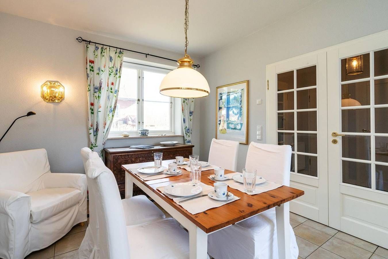 Diese schöne Doppelhaushälfte mit 100 m² Wohnfläche für bis zu 4 Personen liegt direkt in den Lister Dünen am Wattenmeer. Es bietet Ihnen ein großzügiges Wohn- und Esszimmer mit Flat-TV verbunden mit einer offenen modernen Küche. Ein Gäste-WC befindet sich ebenfalls im, mit Fußbodenheizung versehenen, Erdgeschoss. Im Obergeschoss erwarten Sie zwei Schlafräume sowie ein großzügiges Duschbad. Nutzen Sie außerdem den sonnigen, schönen Garten samt Strandkorb und Gartenmöbeln. Das Ferienhaus verfügt über ein weiteres Vollbad mit großzügiger Badewanne im Souterrain, kostenloses WLAN, einen Wäschetrockner sowie eine Waschmaschine. Genießen Sie tagsüber den nur 200 Meter entfernten Strand und lassen Sie den Abend gemütlich am hochwertigen schwedischen Kachelofen ausklingen. Hinweis: Wäschepakete (Bettbezüge und Handtücher) sind nicht im Preis inkludiert und können gegen eine Gebühr optional dazu gebucht werden.