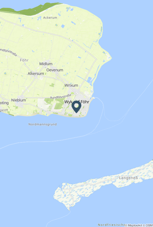 Schönes Wohnen am Südstrand. Schöne Ferien in hochwertigen und modernen Ferienwohnungen für ein bis zwei Personen, eingebettet zwischen einem schönen Grundstück und der Nordsee d.h. nur wenige Minuten vom Meer entfernt. In unmittelbarer Nähe befinden sich der Südstrand und die Surfschulen. Einkaufsmöglichkeiten gibt es gleich um die Ecke. Nicht weit entfernt befindet sich der Sandwall, die Flaniermeile Wyk's mit gemütlichen und hübschen Cafes, Restaurants und netten Geschäften. Das Restaurant im Haus bietet eine italienische Küche mit schönen Außensitzplätzen und einen schönen Garten zum draußen sitzen. Über den Dächern des Südstrandes können Sie idyllischer nicht urlauben oder sich erholen! Schönes Wohnen mit einem Hauch von nordischen Flair. Merkmale: Waschmaschine, Unterstellmöglichkeit für Fahrräder, Wäschetrockner, Parkplatz. Vermieter: Sabine Lorenzen Ihre Unterkunft befindet sich auf der Insel Föhr - mitten im Nationalpark Schleswig-Holsteinisches Wattenmeer! Direkt in Wyk auf Föhr können Sie Ihren Urlaub in einer hochwertigen und modernen Ferienwohnung für zwei bis drei Personen verbringen. Das schöne Grundstück befindet sich nur wenige Gehminuten von der Nordsee entfernt. Das verspricht Erholung pur! Neben einem Wohnzimmer mit integrierter Küche und Essecke gibt es ein gemütliches Schlafzimmer und ein Duschbad. Die liebevoll ausgestattete Küche bietet Ihnen moderne Annehmlichkeiten wie Microwellen-Kompaktofen, Ceran-Kochfeld und Geschirrspüler. Auch die gemütliche Essecke ist wie geschaffen für ein abendliches Dinner oder ein ausgedehntes Frühstück. Natürlich gibt es dazu liebevoll ausgewähltes Geschirr und Besteck. Das Schlafzimmer lockt mit übergroßen Bettdecken (pro Person 155 x 220 cm), die zum Kuscheln und Verweilen einladen. Hier lässt es sich wunderbar ausspannen und vom nächsten Tag am Meer träumen. Selbstverständlich darf auch die richtige Unterhaltungstechnik nicht fehlen, ob WLAN, SAT-TV (LCD) oder Stereoanlage in dieser Ferienwohnung steht Ihnen alles zur Verfügung. Am Haus befindet sich ein eingegrünter Gartenbereich Strandkorb und Gartenmöbel. Hier können Sie die Abende bei einem Gläschen Wein ausklingen lassen. Die Unterkunft befindet sich im 1.OG. Raumaufteilung: 1 Schlafraum (1 Doppelbett), 1 komb. Wohn-/Schlafraum (1 Couchliege), 1 Wohnküche, 1 separate Küche, 1 Badezimmer mit Dusche. Auszeichnung: Allergikerfreundlich, Haustiere auf Anfrage gestattet (mit Zusatzkosten verbunden), Kinderfreundlich, Kleinkinderfreundlich, Nichtraucher. Außenbereich: Abstellmöglichk. f. Fahrräder, Garten, Gartenmöbel, Strandkorb (gemeinsch.). Kinder: Kinderhochstuhl, Kinderspielplatz (gemeinsch.), Kleinkinderbett. Küche / Haushalt: Backofen, Bügelbrett und -eisen, Filterkaffeemaschine, Gefrierfach, Geschirrspüler, Mikrowelle. Sanitär: bodenebene Dusche, Föhn, Handtuchheizkörper, Schminkspiegel. Service: Bettwäsche/Handtücher. Unterhaltung / Kommunik.: CD-Player, Flachbild-TV, Kabel-TV, Radio, Satelliten-TV, WLAN-Anschluss für Internetzugang, WLAN-Zugang.