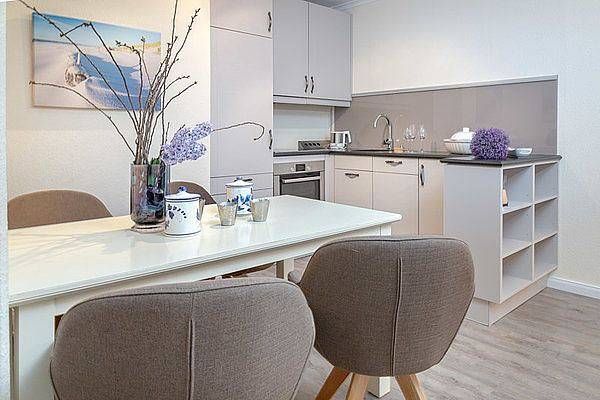 Westerland, direkt am Strand: Top Ausstattung, die City vor der Tür, das Schwimmbad fußläufig erreichbar, Bäcker und Fahrradverleih in der Nähe... Was braucht man mehr?? Das beliebte Appartement befindet sich in einer komfortablen Wohnanlage im Herzen der Insel nur 150 Meter entfernt zum Strand. Bei ca 50m² Wohnfläche findet man hier alles für einen schönen Sylt Urlaub. Offener Wohn-/Küchenbereich mit Boden in schicker moderner Holzoptik. Im großzügigen Schlafzimmer befindet sich ein gr. Doppelbett, die Küche ist komplett eingerichtet. Duschbad, Loggia zur Friedrichstraße. Waschküche im Haus. Zur Wohnung gehört ein Garagenstellplatz (Verschiebeplatte mit eingeschränkten Maßen). Für 2-4 Personen (Kinder bis 10 Jahre frei) Belegungspreise gelten für 2 Personen. Zusätzliche 3 und 4. Person + € 5,- / Tag.