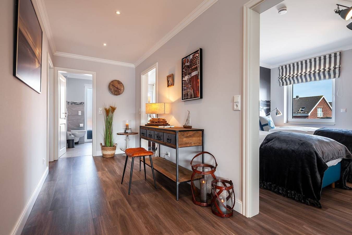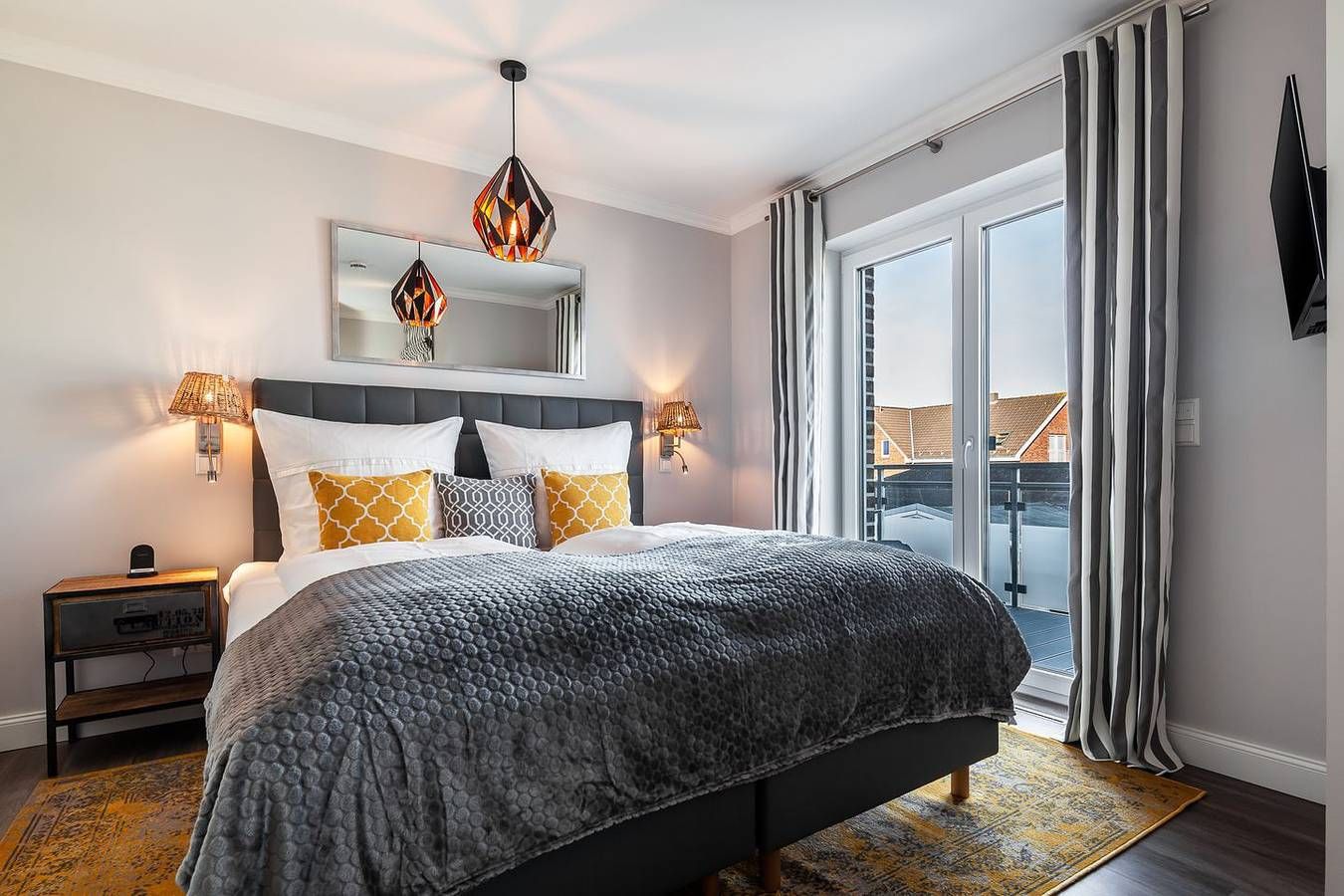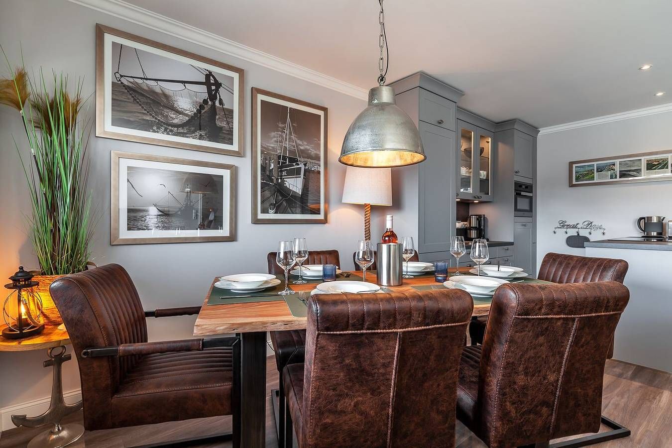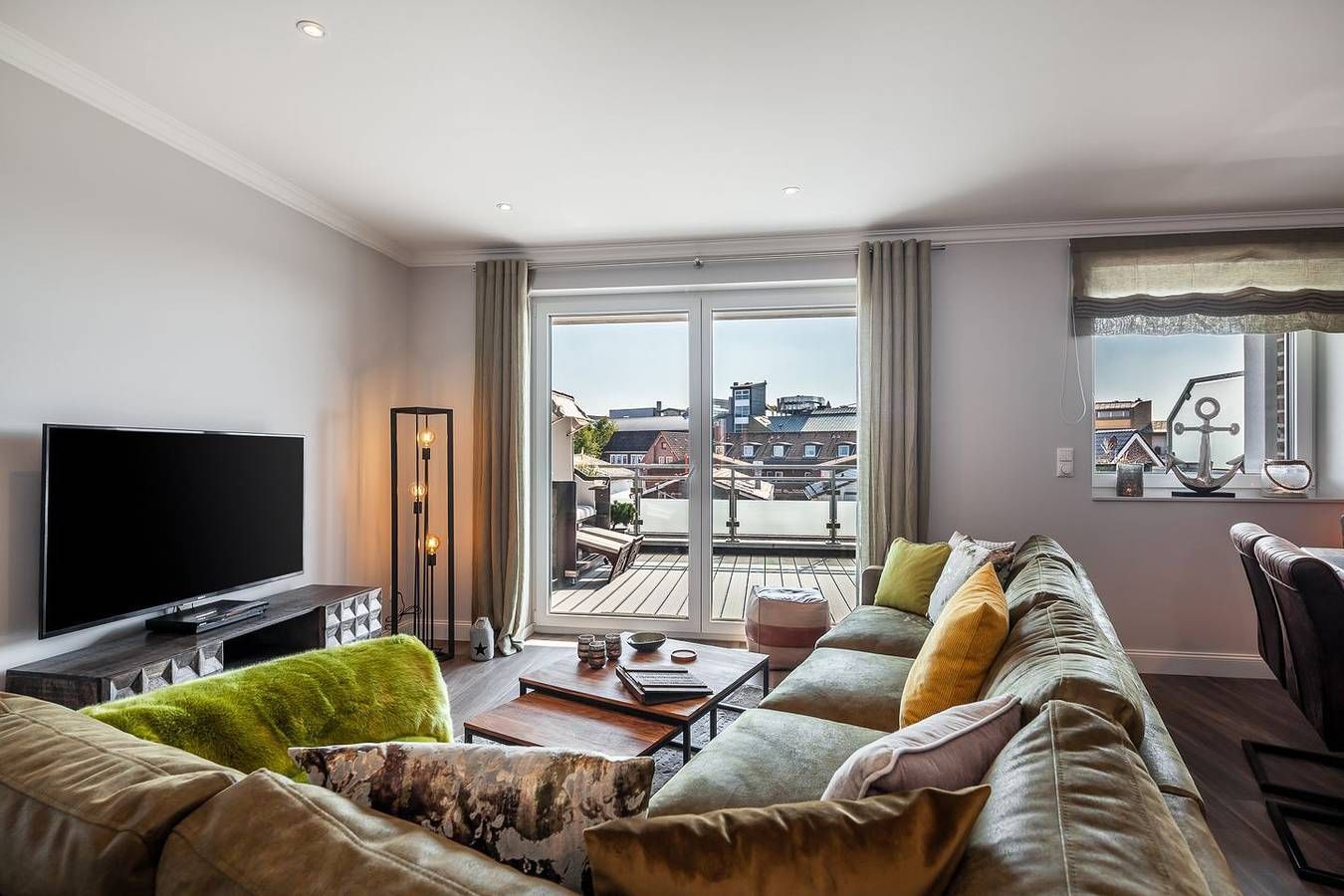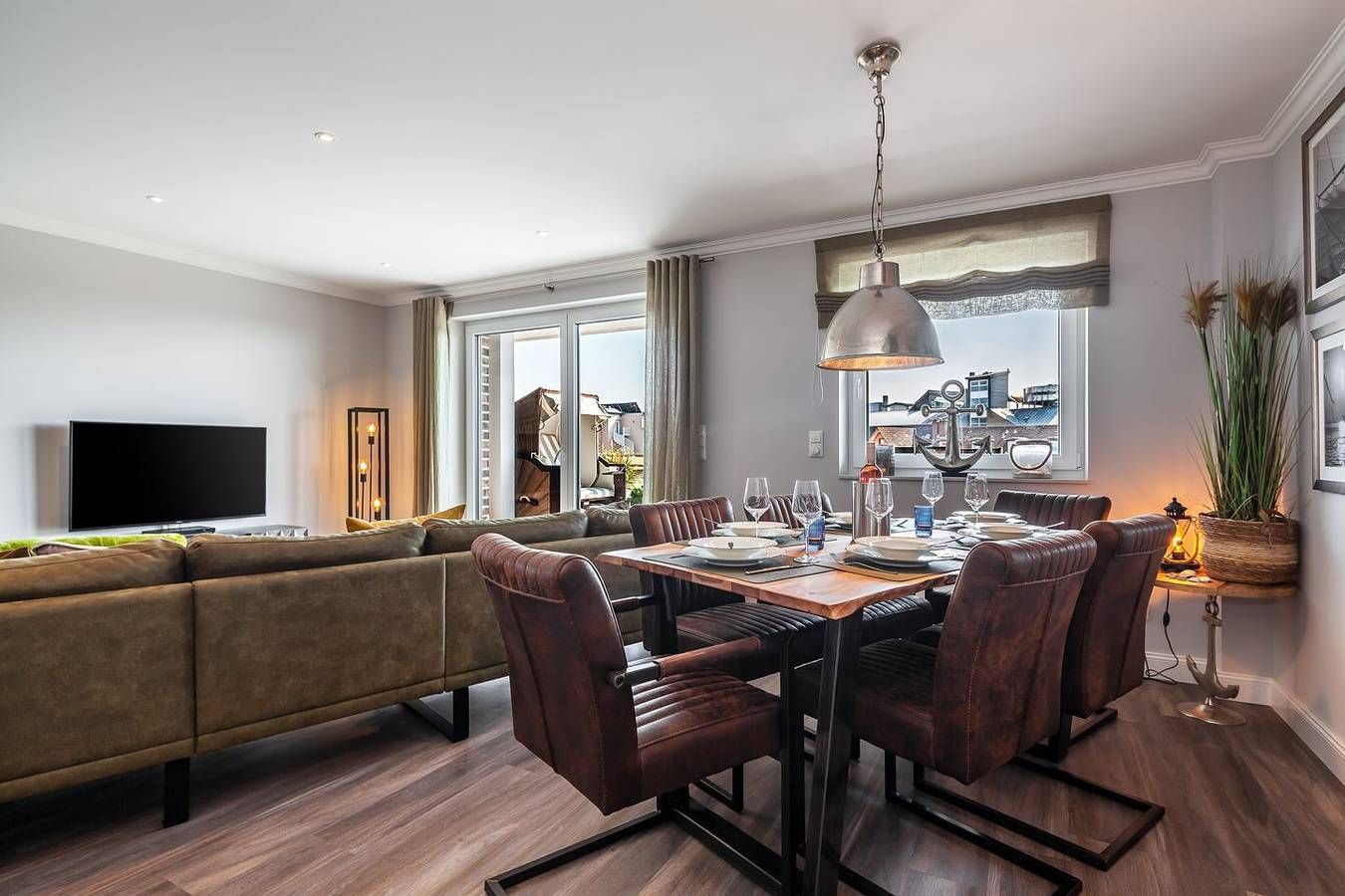 Diese hochwertige Ferienwohnung mit Fertigstellung im August 2019, befindet sich in der 2. Etage und ist über einen Aufzug erreichbar. Sie ist nur wenige Minuten vom Hauptstrand entfernt. Auf dem großen Balkon nach S/W ist ein Strandkorb und ein Esstisch mit sechs Stühlen vorhanden, so dass von dort traumhafte Sonnenuntergänge genossen werden können. Die zwei weiteren Balkone ermöglichen die Sonnenstrahlen am Morgen zu genießen. Eine hochwertige Ausstattung mit stilsicherer Inneneinrichtung im "Industrie-/ Loft- Stil" und Liebe zum Detail zieht sich vom offenen Wohn-/ Ess- Küchenbereich über die drei Schlafzimmer bis zu den Bädern durch. Es gibt ein Duschbad und ein Bad mit Badewanne und Dusche- beide mit Fenstern. Zwei Schlafzimmer haben Boxspring- Doppelbetten (1,80m x2m, mit Einzelmatratzen) und ein Schlafzimmer zwei Boxspring- Einzelbetten, die aber auch zusammengeschoben/ verbunden werden können und so ebenfalls als Doppelbett genutzt werden können. Die Wohnung hat Fußbodenheizung, elektrische Außenjalousien sowie kostenloses W- LAN, Waschmaschine und Trockner, Bügelbrett und Bügeleisen, Blue- Ray- Player, Digital- Radio mit Bluetooth, Smartphone- Ladestation, Kinderreisebett sowie den Ikea- Hochstuhl "Antilop mit Tablett". Kabel/ Flat- TV (4 K) ist in allen Schlafzimmern sowie im Wohnzimmer vorhanden. - Bettwäsche und Handtücher sind nicht inklusive, können aber kostenpflichtig dazu gebucht werden - Im Zentrum von Büsum, ruhige Nebenstraße - Abschließbarer Fahrradraum - Zwei Fahrräder stehen Ihnen kostenfrei zur Verfügung, Nutzung auf eigene Gefahr - Kostenfreies W- LAN, für Störungen und Ausfälle übernehmen wir keine Haftung - Kostenfreie Nutzung von Waschmaschine und Trockner in der Wohnung - 1 Parkplatz steht Ihnen kostenfrei zur Verfügung