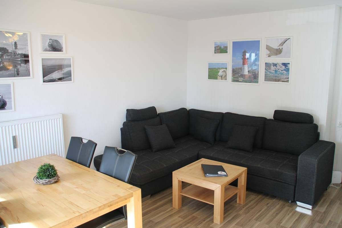 Zentrale Ferienwohnung in Büsum – mit Balkon, Dachterrasse & Wohlfühlfaktor Willkommen in Ihrer gemütlichen Ferienwohnung in Top-Lage von Büsum! Ob für einen entspannten Kurzurlaub oder eine längere Auszeit – hier erwartet Sie ein modernes, liebevoll eingerichtetes Apartment, in dem Sie sich vom ersten Moment an wohlfühlen. Dank der zentralen Lage erreichen Sie den Strand, die Familienlagune Perlebucht, das Ortszentrum und einen kleinen Supermarkt bequem zu Fuß – ideal für alle, die auch im Urlaub kurze Wege schätzen. Komfortables Wohnen für bis zu 4 Personen Die Wohnung bietet Ihnen alles, was Sie für einen gelungenen Aufenthalt benötigen – stilvoll, funktional und mit maritimem Flair: · Separates Schlafzimmer mit Doppelbett (180 × 200 cm) und TV · Wohnzimmer mit großer, bequemer Schlafcouch (für 2 weitere Gäste) · TV & Spielekonsole – für Unterhaltung auch bei Schietwetter · Esstisch für 4 Personen im offenen Wohnbereich · Moderne Küche mit Geschirrspüler, Mikrowelle, Kaffeemaschine u.v.m. · Helles Tageslichtbad mit Dusche · Balkon für das Frühstück in der Morgensonne · Große Dachterrasse mit herrlichem Blick über die Dächer von Büsum · Kostenfreier Parkplatz inklusive Gut zu wissen · Kurtaxe ist vor Ort separat zu entrichten (Höhe saisonabhängig) · Bettwäsche & Handtücher können auf Wunsch gegen Gebühr hinzugebucht werden · WLAN ist selbstverständlich vorhanden