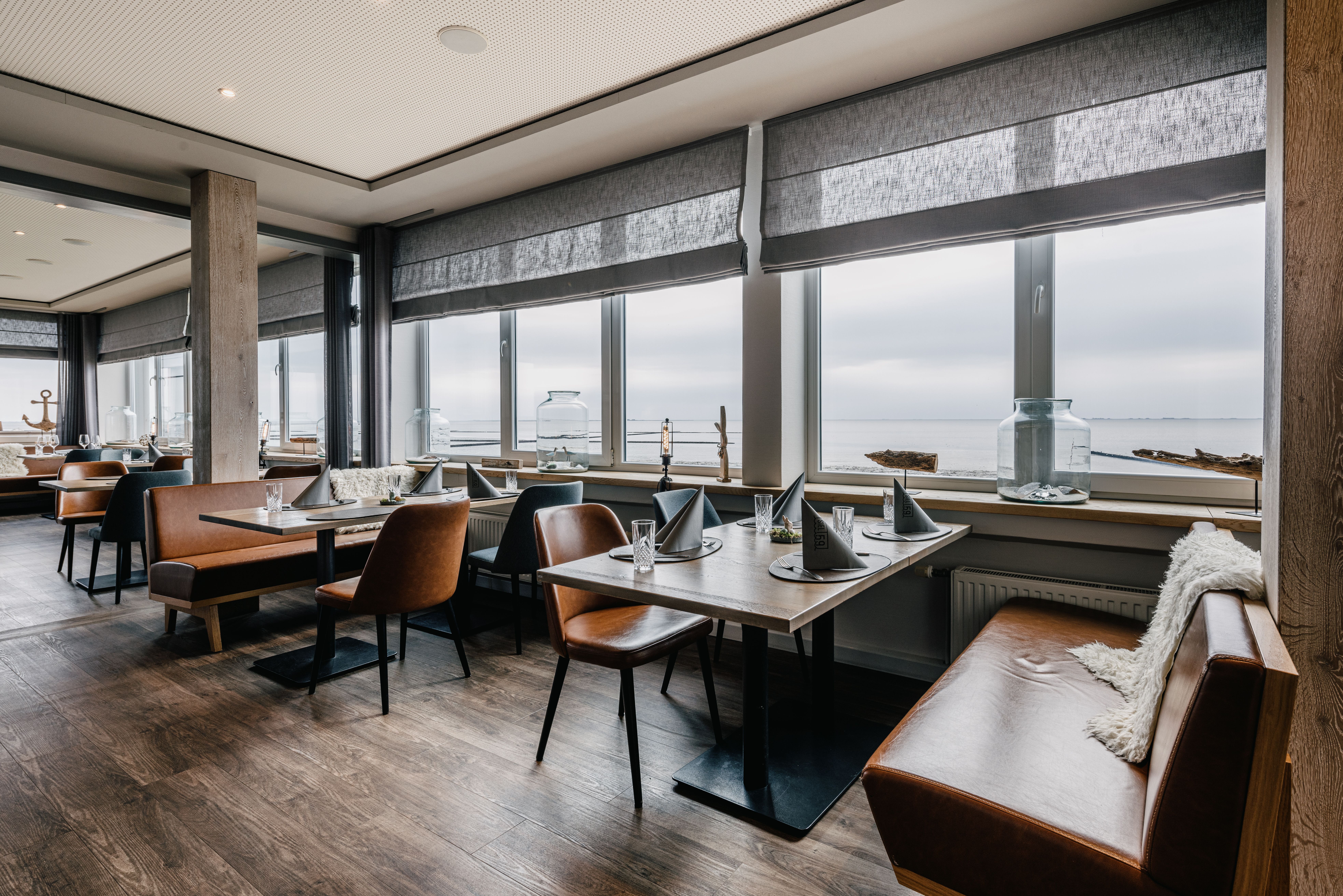 Hotel & Restaurant am Hafen von Schlüttsiel mit Blick aufs Wattenmeer