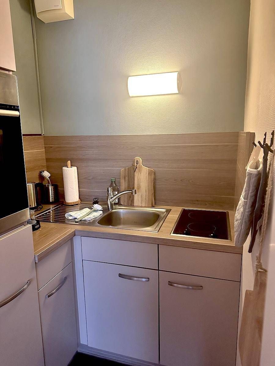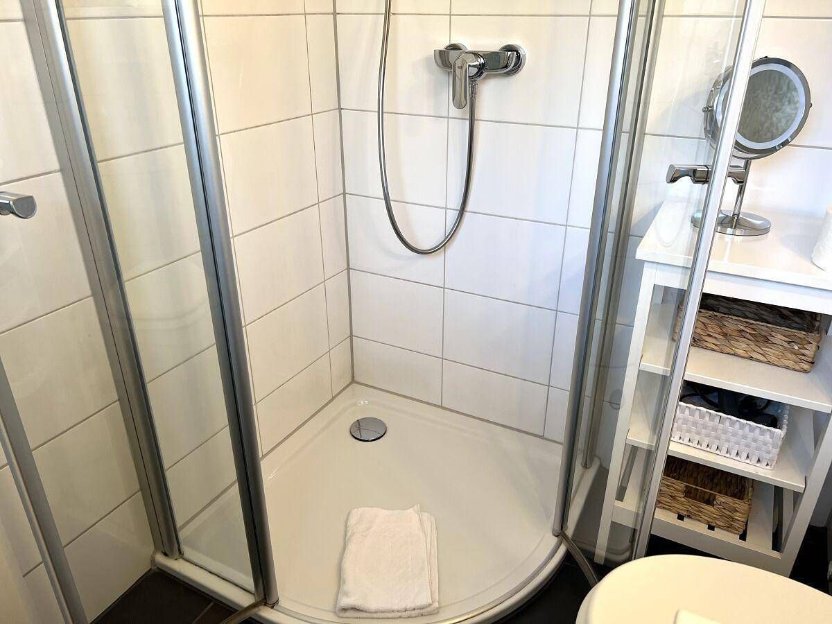 Die frisch renovierte Ferienwohnung Dünenkind ist super zentral in SPO Bad und dennoch ruhig gelegen. Die Wohnung ist hochwertig und gemütlich ausgestattet. Ein großes Kuschelsofa, Flat-TV und die natürlichen Teakmöbel lassen euch wie Zuhause fühlen. Das Schlafzimmer ist mit einem 160 x 200 cm Boxspringbett ausgestattet und liegt zum angrenzenden Wald raus. Hier lässt es sich ruhig und entspannt schlafen. Die große Loggia liegt den ganzen Tag in der Sonne und ist mit einem Tisch und zwei Liegestühlen ausgestattet. Die Küche ist klein aber fein und bietet alles, was man für einen Urlaub in SPO braucht. Wohlfühlbelegung: 2 Personen. Für 2 weitere Personen ist das Schlafsofa im Wohnzimmer vorhanden. Hunde auf Anfrage. Super zentral in SPO Bad, 5 Min zum Strand und Seebrücke. Gastro, Dünen-Therme, Shopping, Bäcker und Edeka direkt vor der Tür. Parkplatz direkt am Haus. Im Keller befinden sich Münz Waschmaschine und Trockner, sowie Wäscheleinen. Fahrradkeller. AllgemeinWLAN Sonnenloggia mit Möbeln Stufenloser Zugang Münz-Waschmaschine Münz-Trockner Reinigungsmittel Privater Parkplatz KücheBackofen 2 Platten Ceranfeld Kühlschrank Gefrierfach Kaffeemaschine Toaster Wasserkocher Eierkocher WohnzimmerFernseher mit Radio Schlafsofa Esstisch mit 4 Stühlen Leselampe Gardinen Teakholz Möbel SchlafzimmerBoxspringbett 160 cm Schreibtisch mit Lampe Bettwäsche Wecker Verdunkelungsgardinen BadHandtücher Komfortable Dusche Seife Toilettenpapier Föhn Zentrale schöne Ferienwohnung in SPO Bad mit Sonnenbalkon, 5 min zum Strand. Wohnung Herzlich Willkommen in der Ferienwohnung Dünenkind. Die Wohnung ist super zentral in SPO Bad und dennoch ruhig gelegen in zweiter Reihe. Das Dünenkind verfügt über 2 Zimmer auf 43 qm. Im gemütlichen Wohnzimmer finden Sie ein großes Sofa, TV, einen Esstisch mit vier Stühlen und Holzmöbel. Von hier aus geht es auf den Sonnenbalkon. Das Schlafzimmer ist mit einem konfortablen 160 x 200 cm Boxspringbett mit Leselampen und einem Schreibtisch mit Stuhl ausgestattet. Perfekt für eine Remote Woche am Strand. Es liegt zum angrenzenden Wald raus. Hier lässt es sich ruhig und entspannt schlafen oder konzentriert arbeiten. Der große Balkon liegt den ganzen Tag in der Sonne und ist mit einem Tisch und zwei Liegestühlen ausgestattet. Hier lässt sich der Strandtag wunderbar bei einem Glas Wein ausklingen. Die Küche ist klein aber fein und bietet alles, was man für einen Urlaub in SPO braucht. Neben einer Nespressomaschine, Kaffemaschine, Gefrierfach und einer 2er Ceranplatte, finden Sie auch jede Menge Kochzubehör. Vom Mixer über Eierpicker zum Pizzaschneider. Das renovierte Badezimmer verfügt über eine moderne Dusche, Markenamaturen und ein Fenster. Die Wohnung ist stufenlos über einen seperaten Eingang zu erreichen. Lage Die Ferienwohnung Dünenkind besticht durch die super zentrale Lage direkt in St. Peter-Ording Bad. Der Strand, die Flaniermeile und Restaurants liegen direkt vor der Haustür. Die Seebrücke mit Gosch ist wenige Gehminuten entfernt. Auch die Dünen-Therme mit großer Saunen-Landschaft mit Meerblick ist in wenigen Minuten zu erreichen. Bäcker und Edeka liegen quasi direkt vor der Haustür. Wer eine Wohnung sucht von der man St. Peter-Ording zu Fuß erkunden kann - für den ist die Fewo Dünenkind perfekt geeignet. Parkplatz direkt am Haus. Im Keller befinden sich Münz Waschmaschine und Trockner, sowie Wäscheleinen. Fahrradkeller. Wohlfühlbelegung 2 Personen, das Schlafsofa bietet bei Bedarf zwei weitere Schlafplätze. Für einen Hund berechnen wir 8€ pro Nacht. Bitte beachte, dass bis zu zwei kleine liebe Hunde erlaubt sind. Hunde bitte nicht alleine in der Wohnung lasssen und auf dem Gemeinschaftsgelände anleinen. Im Preis enthalten ist die Wlan Nutzung, sowie der kostenlose Parkplatz vor der Tür Wäscheset berechnen wir mit 20€ pro Gast. Enthalten sind Bettwäsche, ein Duschtuch, zwei Handtücher, Geschirrhandtücher. Bei Anreise sind die Betten dann bereits bezogen. Anreisezeit: frühestens 15:00 Uhr Abreise: bis spätestens 11:00 Uhr Der Check-In erfolgt kontaktlos mit einer Schlüsselbox.