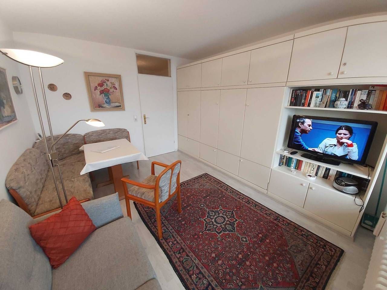 Das Appartementhaus liegt in der Paulstraße. Das mitten im Zentrum Westerlands gelegene 1-Zimmerappartement mit einfacher Ausstattung, befindet sich in der 1. Etage (1W) eines 7-geschossigen Appartementhauses und ist bequem mit dem Aufzug zu erreichen. Die ca 29m² große Nichtraucher-Wohnung besteht aus einem kombiniertem Wohn/Schlafraum, Küche, Dusche/WC, Balkon Parkplatz auf dem Parkdeck Nr. 57. Kostenfreies W-Lan. Überdachte Fahrradabstellmöglichkeit Treten Sie aus der Haustür und Sie befinden sich direkt im Zentrum mit der Flaniermeile. Das Highlight: Für die Dauer Ihres Aufenthalts ist Sylt-Go bereits im Preis inbegriffen. Damit nutzen Sie die öffentlichen Verkehrsmittel auf der ganzen Insel kostenfrei ganz entspannt und flexibel. Das Appartementhaus liegt in der Paulstraße links neben der Sparkasse in die Straße einbiegen und im Sparkassengebäude befindet sich das Tor zum Parkdeck, sowie die Haustür zum Appartementhaus. Die Nichtraucher-Einraum-Wohnung für 1-2 Personen befindet sich in der 1. Etage des Appartementhauses (Fahrstuhl vorhanden). Sie hat eine Größe von ca.29,5m² und mit einfacher Ausstattung eingerichtet. Der kombinierte Wohn-Schlafraum verfügt über ein Doppelschrankbett (1,60 x 1,90 m) einen Esstisch mit Essecke, sowie einem Sofa und einem Farb-TV (Flachbildschirm). Die Küchenzeile mit Elektroherd, Kühlschrank und Spüle befindet sich im Flurbereich. Badezimmer mit Dusche/WC. Die Wohnung verfügt über einen überdachten Balkon (Loggia) Richtung Osten mit Balkonmöbeln. W-LAN vorhanden. Waschmaschinen und Trocknernutzung im Haus vorhanden! Haustiere sind nicht erlaubt!