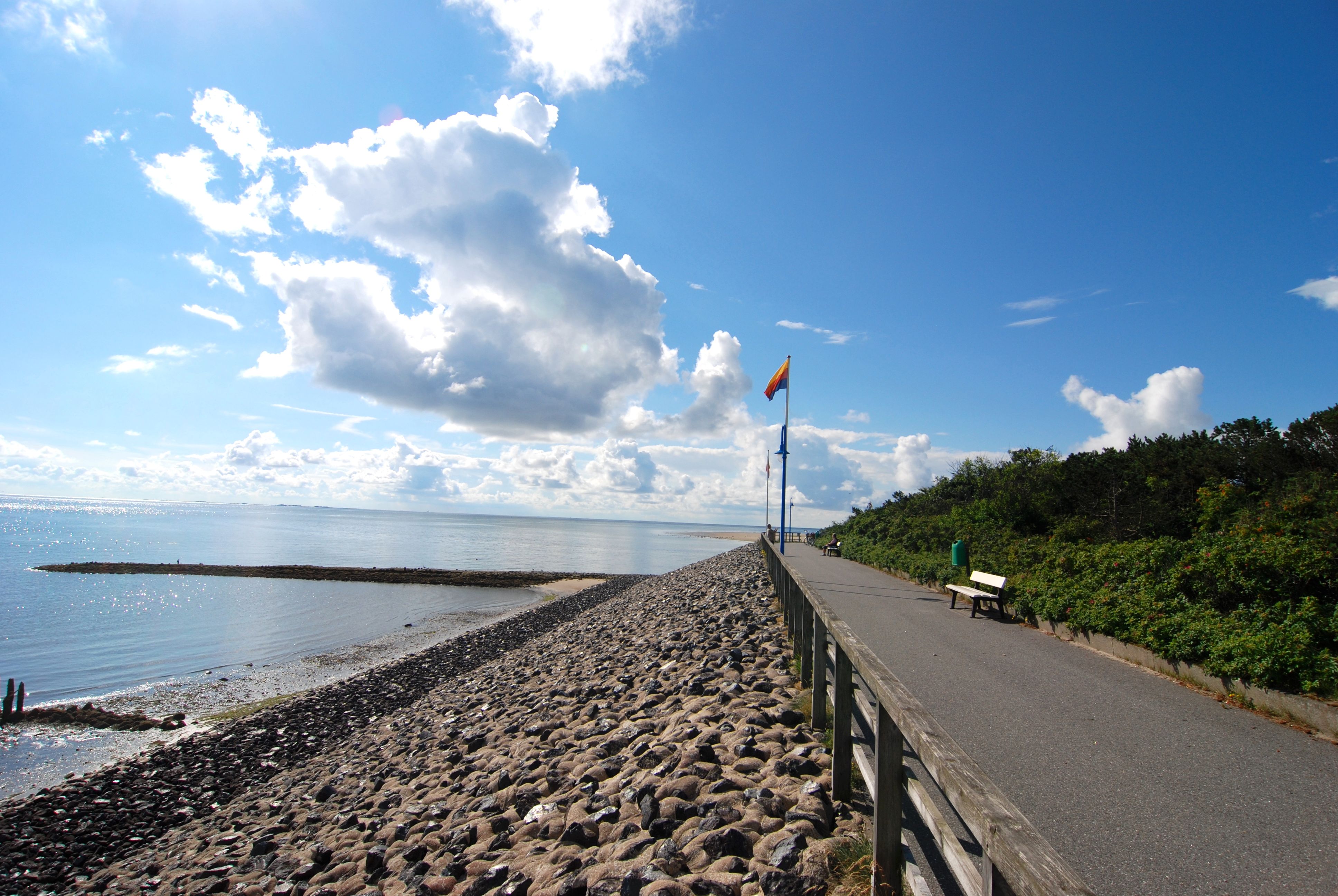 Am Wriakhörnsee inmitten der Dünen lassen sich besonders viele Vögel beobachten, da der See für viele Seevögel als Brut- und Rastplatz dient. Am Ende des Sees angelangt biegen Sie links auf den Bohlenweg ab, um auf die andere Seite des Sees zu gelangen. Dort folgen Sie rechtsherum dem Dünenwanderweg. Der Dünenwanderweg ist durch gelb und rot angemalte Holzpfähle markiert und führt ohne Bohlenweg über den Sand durch die Dünen. Dieser Weg führt Sie bis auf die Höhe des Leuchtturms. Überqueren Sie hier die Dünenkante in Richtung Meer und halten Sie sich an der Wasserkante links, um wieder zurück in Richtung Wittdün zu gelangen. Genießen Sie die Weite des Kniepsandes. Diese vor Amrum vorgelagerte Sandbank ist ca. 15km lang und an der breitesten Stelle 1,5km breit. Damit zählt der Kniepsand zu einem der breitesten Strände Europas. Halten Sie später auf Wittdün zu und nutzen Sie den Aufgang am Piratenschiff. Folgen Sie der unteren Wandelbahn einmal um die Südspitze herum um zurück zum Fähranleger zu gelangen. Von der unteren Wandelbahn aus gelangen Sie über die Treppen auf der linken Seite auch sehr schnell in den Ortskern von Wittdün. Hier gibt es vieles zu entdecken, sollten Sie also noch etwas Zeit haben, empfiehlt sich hier ein kleiner Bummel durch die vielen Geschäfte, ein Kaffee in einem der gemütlichen Cafés oder ein Fischbrötchen auf die Hand.