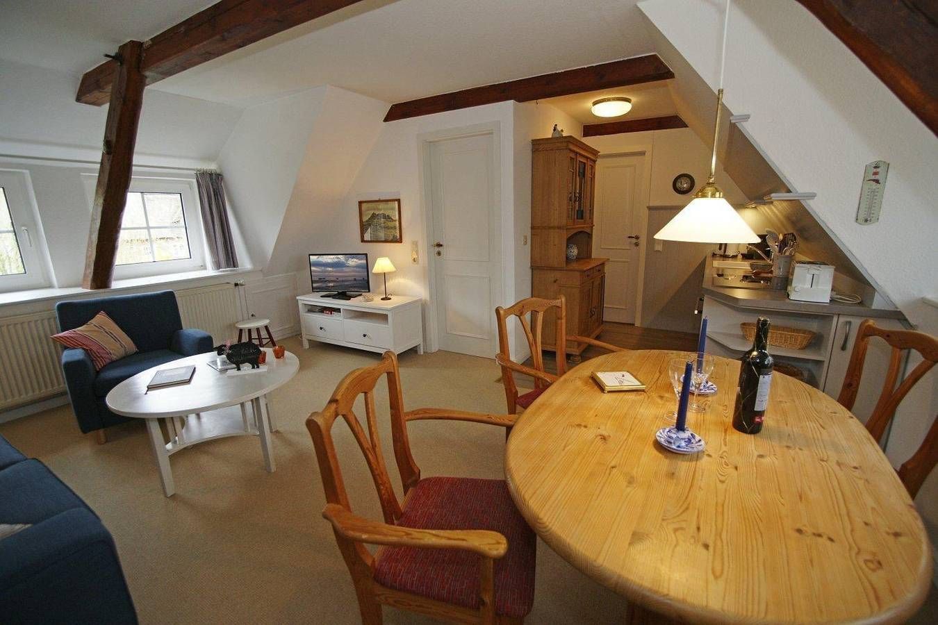 Ideal für einen romantischen Urlaub zu zweit in Utersum: Diese gemütliche Ferienwohnung bietet Strandnähe, moderne Annehmlichkeiten und eine entspannte Atmosphäre – perfekt für entspannte Tage auf der Insel Föhr. Die Ferienwohnung in Utersum bietet eine gemütliche Unterkunft für bis zu 2 Personen und erstreckt sich über 30 m². Im Erdgeschoss befindet sich ein Wohn-/Schlafzimmer mit einem komfortablen Doppelbett (190x200 cm), einer Sitzecke mit Sofa und Sessel sowie einem Flachbildschirm. Die Wohnküche ist mit einem 4-Plattenherd, Backofen, Geschirrspüler, Kühlschrank und weiteren Geräten wie Kaffeemaschine und Wasserkocher ausgestattet. Das Duschbad mit Außenfenster wurde zuletzt im April 2020 renoviert. Zusätzlich gibt es im Haus weitere abgeschlossene Ferienwohnungen für 2 Personen sowie eine Mansarde mit Duschbad. W-LAN und ein Parkplatz sind ebenfalls vorhanden. Haustiere sind nicht erlaubt, und die Wohnung ist für Nichtraucher geeignet. Anfragen für Allergiker oder Langzeiturlaub sind möglich. Die Ferienwohnung in Utersum bietet einen einladenden Außenbereich mit einem gemütlichen Außensitzplatz direkt vor dem Haus, ideal für entspannte Stunden im Freien. Gäste können den örtlichen Gartenbereich nutzen, der mit Gartenmöbeln ausgestattet ist und zum Verweilen einlädt. Die Wohnung liegt in unmittelbarer Nähe zum Strand (1 km) und den angrenzenden Feldern, die zu Spaziergängen und Fahrradtouren einladen. In dem Familienhaus befinden sich zudem zwei weitere abgeschlossene Wohnungen, jeweils für 2 Personen, sowie ein Mansardenzimmer mit Duschbad. Gemeinschaftliche Elemente bieten optimale Möglichkeiten für gesellige Momente. Bitte beachten Sie, dass eine eventuell anfallende Kurabgabe nicht im Gesamtpreis enthalten ist. Diese ist vor Ort zu leisten.