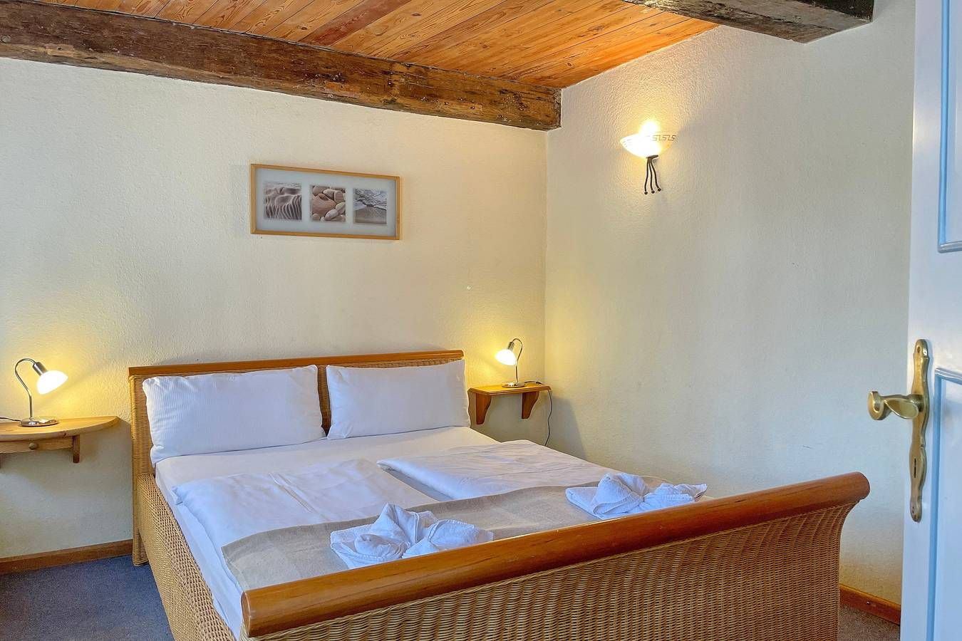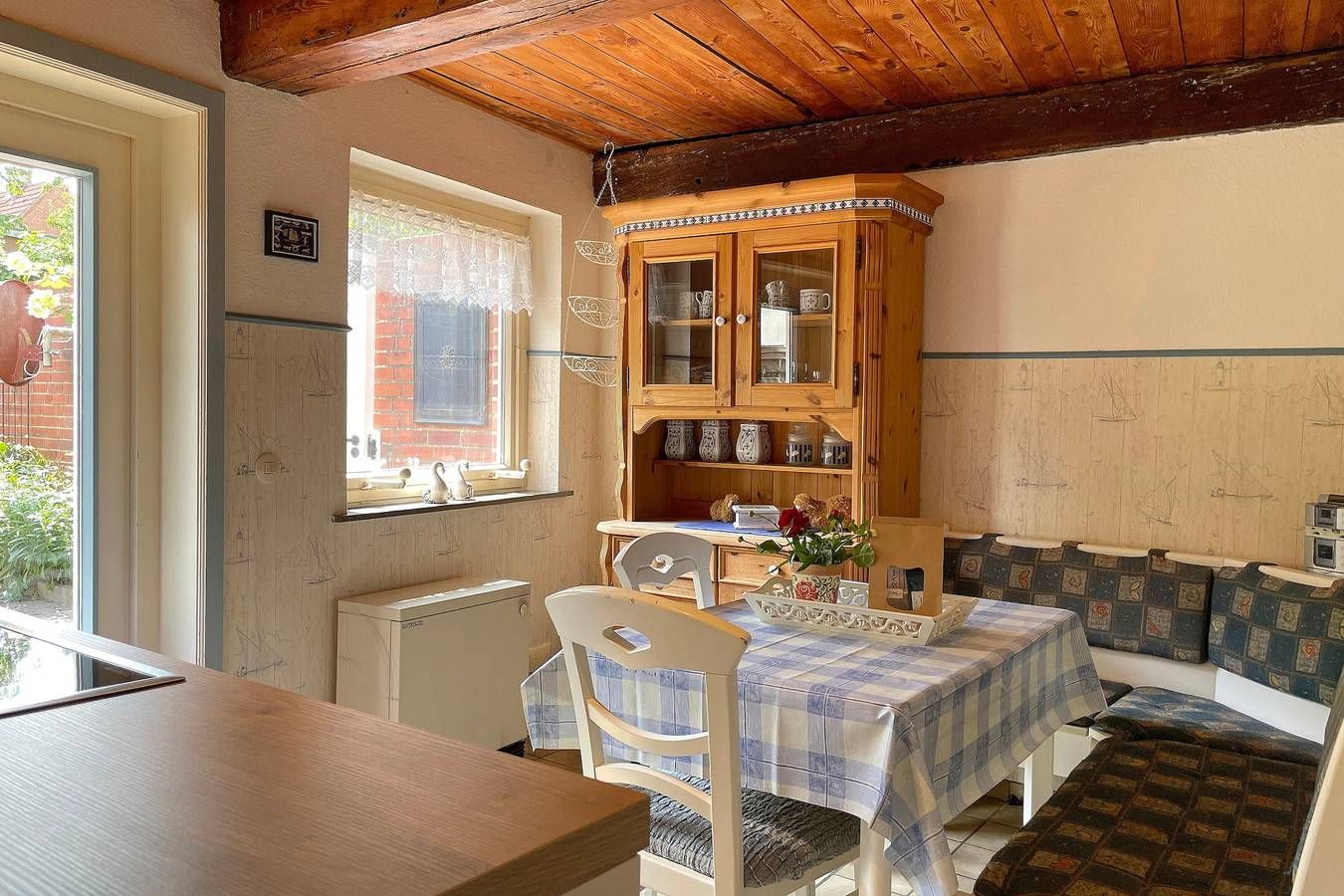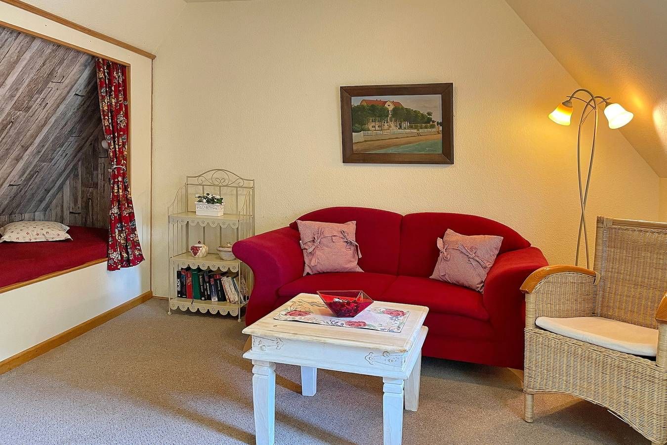 Unser Einzelhaus Stamp ist ein echtes Unikat und ein typisches Friesenhaus, welches einst auf Amrum stand und in der Hafenstraße in Wyk neu aufgebaut wurde. In der Hafenstaße im Herzen von Wyk liegt das gemütliche Haus Stamp, nur wenige Minuten vom Strand und vom Hafen entfernt. Alle wichtigen Versorgungseinrichtungen wie Bäckereien und Supermärkte befinden sich in unmittelbarer Umgebung, ebenso wie die Fußgängerzone und die Strandpromenade mit Boutiquen, Cafés, Kino, Restaurants und vielem mehr! Das Domizil Stamp ist ein reetgedecktes Friesenhaus für 6 Personen und heißt Sie mit seinem friesischen Charme Willkommen. Erleben Sie die friesische Gemütlichkeit und Gastfreundschaft in Ihrem Domizil. Im Erdgeschoss befinden sich 2 Schlafräume, eines mit Doppelbett (140 x 200 cm), das andere mit 2 Einzelbetten (80 x200 cm) und einem zusätzlichem Waschbecken. Das gemütliche Wohnzimmer mit WLAN, Musikanlage und Flachbild-TV lädt zum Entspannen ein und wirkt behaglich. Die Wohnküche mit Essplatz, Geschirrspüler, Backofen, Mikrowelle, Kaffeemaschine und vielem mehr führt Sie auf die Terrasse und den Garten, wo Sie herrliche Sonnenstunden im Sommer verbringen können. Eine kleine Besonderheit stellt die altfriesische Durchreiche ins Wohnzimmer dar. Auf beiden Etagen befindet sich ein Duschbad, das funktional und liebevoll gestaltet wurde. Das dritte Schlafzimmer mit einem Doppelbett (180 x 200cm) und einem zusätzlichem Kojenbett (80 x 180 cm) erreichen Sie über die Treppe, die zum ersten Obergeschoss führt. Hier gibt es weiterhin einen zusätzlichen Wohnraum mit einem weiteren Kojenbett (80x180cm), der sich hervorragend eignet, wenn Sie sich einmal zurückziehen möchten. Erleben Sie einen wunderschönen Urlaub in diesem typisch nordisch-friesischen Haus. Gerne senden wir Ihnen weitere Unterlagen zu oder informieren Sie persönlich am Telefon!