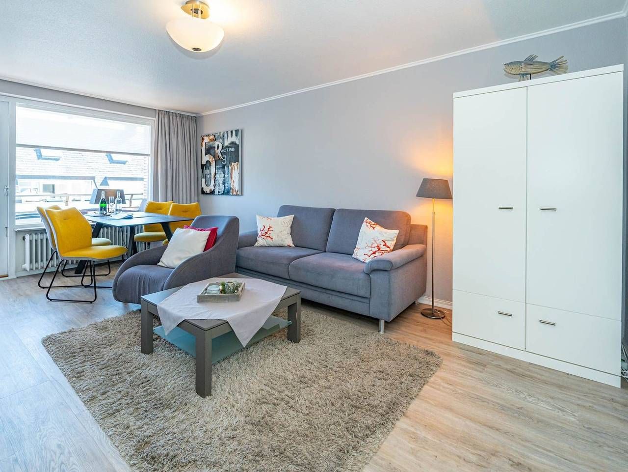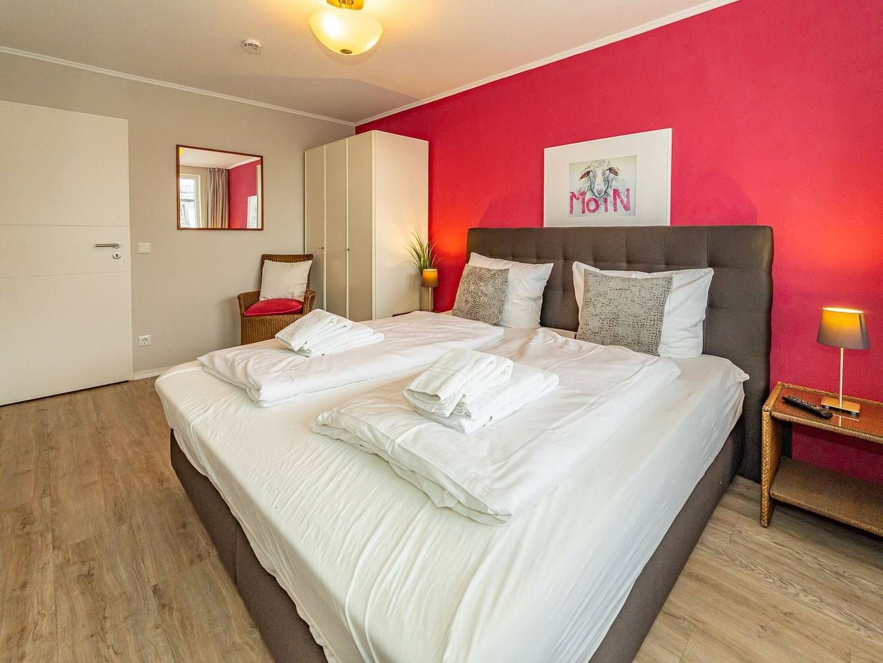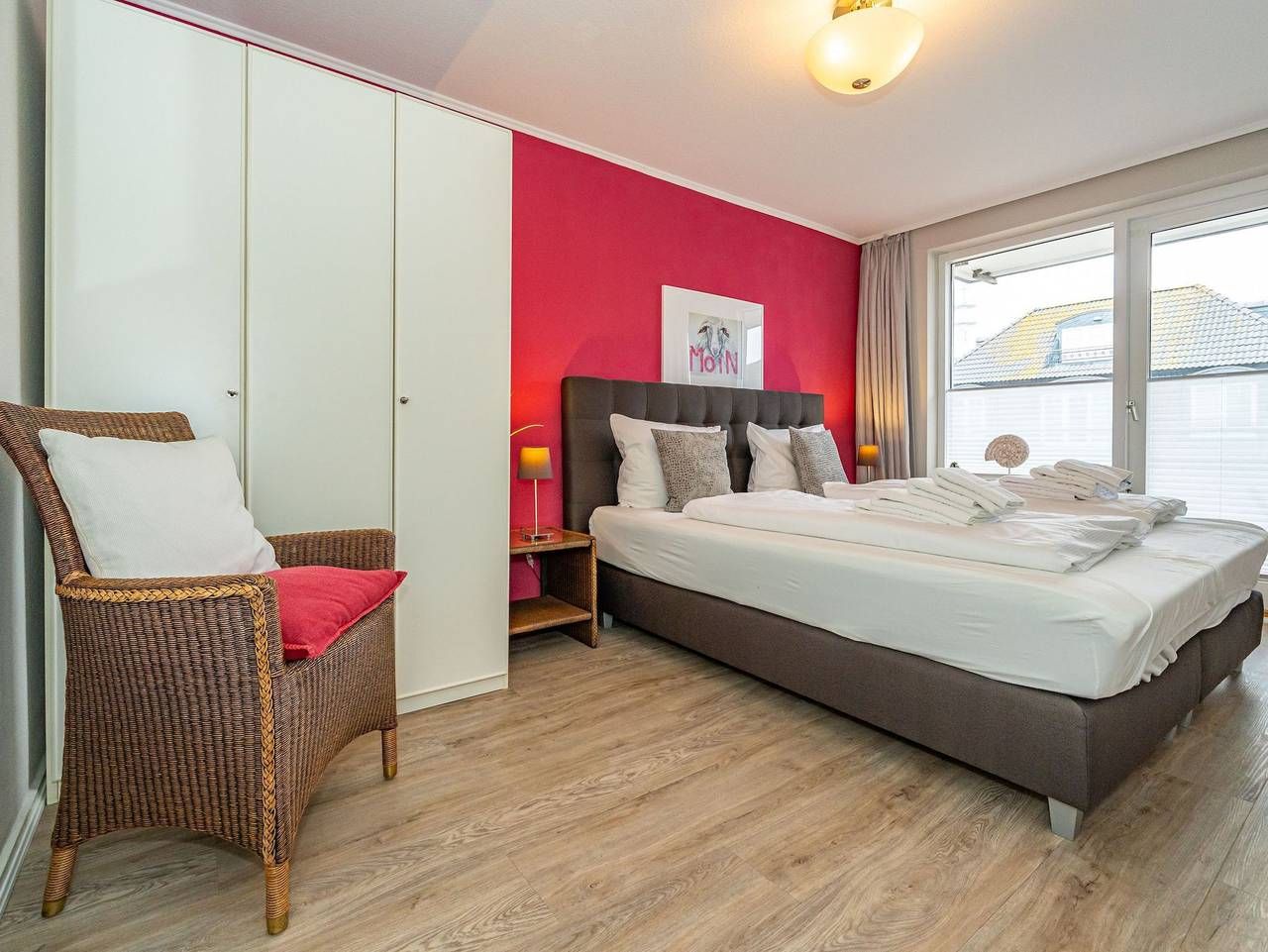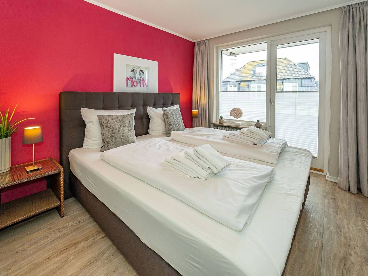 Schick und großzügig mit zwei Balkonen! Diese moderne 2-Zimmer-Nichtraucher-Ferienwohnung (ca. 58 qm) in der 2. Etage bietet komfortablen Wohnraum für bis zu 4 Personen. Im Schlafzimmer erwartet Sie ein gemütliches Doppelbett, bestehend aus zwei Einzelmatratzen (je 0,90 x 2,00 m), ergänzt durch stilvolle Nachttische und einen eleganten Sessel in Loom-Ausführung. Das Wohnzimmer überzeugt mit Doppelschrankbetten (je mit Einzelmatratzen von 1,70 x 0,90 m), einem Sat-Flachbild-TV, Telefon und WLAN ideal für flexible Schlafmöglichkeiten und entspannte Abende. Die offene Küche, die ohne trennende Tür direkt in den Wohnbereich integriert ist und über ein Fenster verfügt, lässt keine Wünsche offen: Ausgestattet mit Backofen, Cerankochfeld, Kühlschrank mit Eisfach, Geschirrspüler, Kaffeemaschine, Wasserkocher und Toaster, bietet sie alles, was Sie für die Zubereitung Ihrer Lieblingsgerichte benötigen. Das moderne Duschbad/WC rundet das Raumkonzept ab. Ein besonderes Highlight sind zwei Ostloggien, die am Vormittag zum Entspannen einladen. Stellplatz zu buchbar Eine Garage oder ein Außenstellplatz kann für € 14,-/ Tag mit gemietet werden (begrenztes Kontingent!). Haustiere sind willkommen! Bei Mitbringen eines Haustieres erhöht sich der Tagespreis um 5,00 € pro Haustier zzgl. einer einmaligen Endreinigungspauschale von 20,00 € pro Haustier auf die übliche Endreinigung. Der Aufzug ist über wenige Stufen erreichbar wahlweise vier Stufen abwärts oder neun Stufen aufwärts.