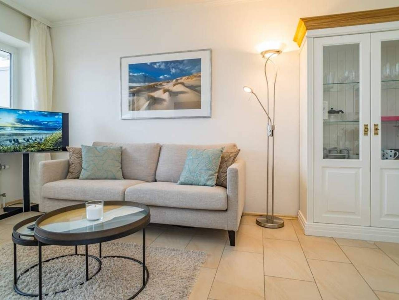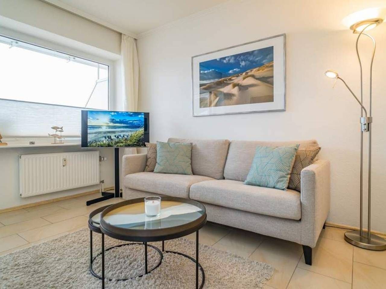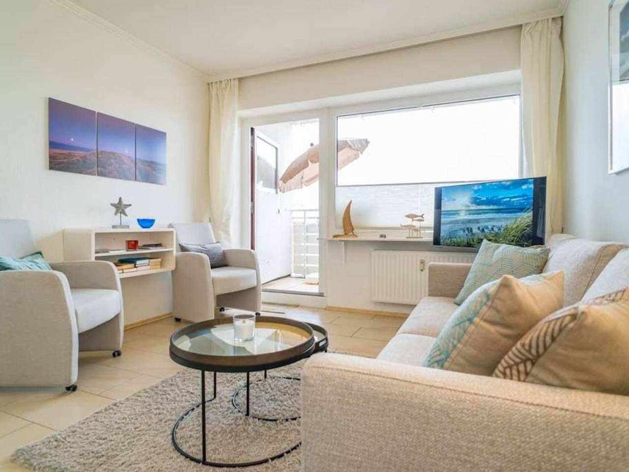 Komfortable Eck-Ferienwohnung inkl. PKW-Stellplatz mit kleinem Meer- [&] Panoramablick über den Südosten von Sylt! Gut ausgestattete, komplett mit Fliesen ausgelegte 2-Zimmer-Nichtraucher-Ferienwohnung, ca. 38 qm, in der 5....