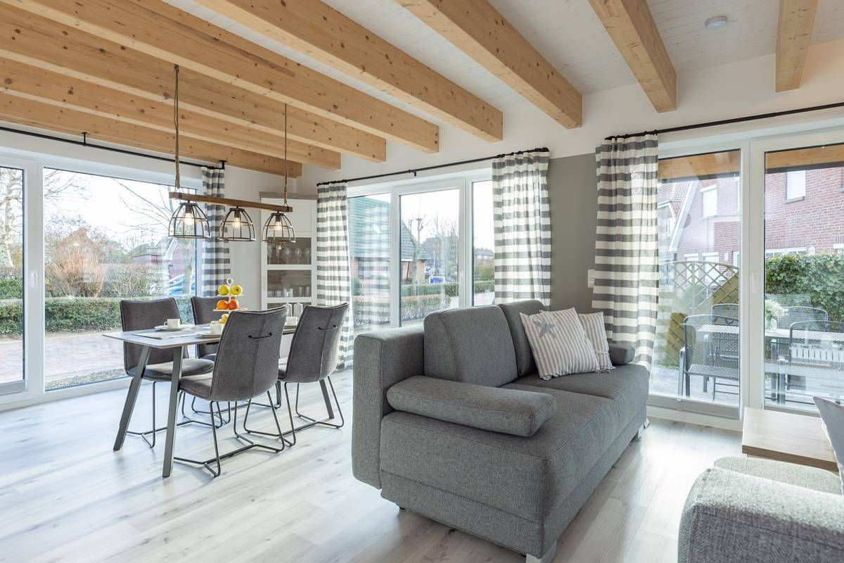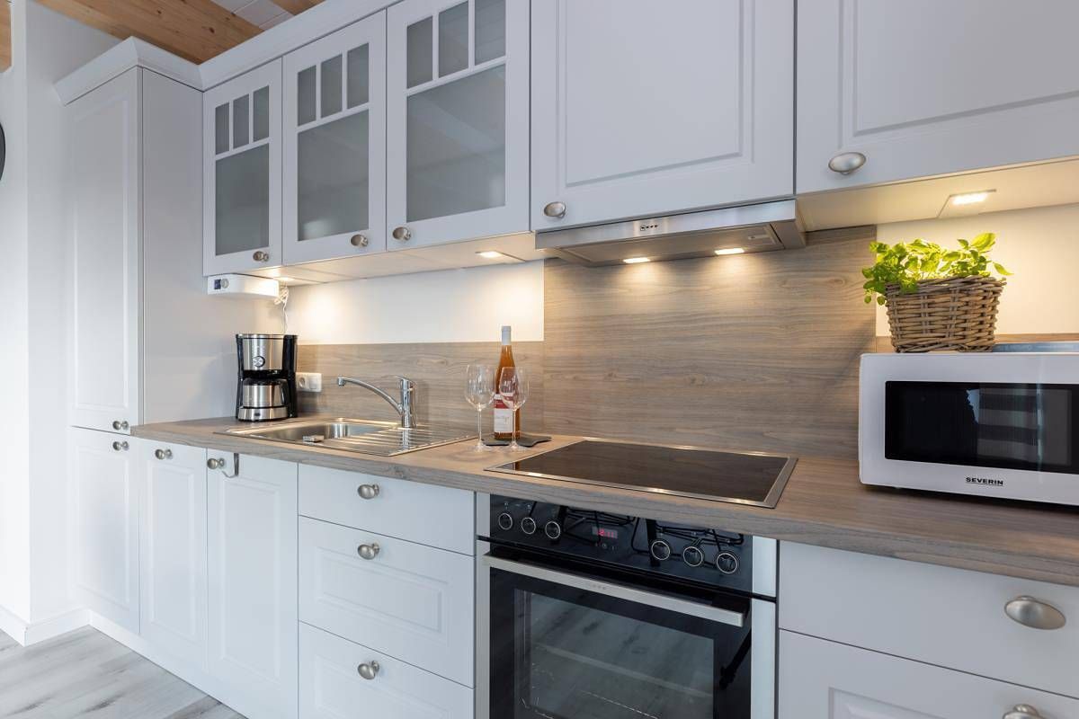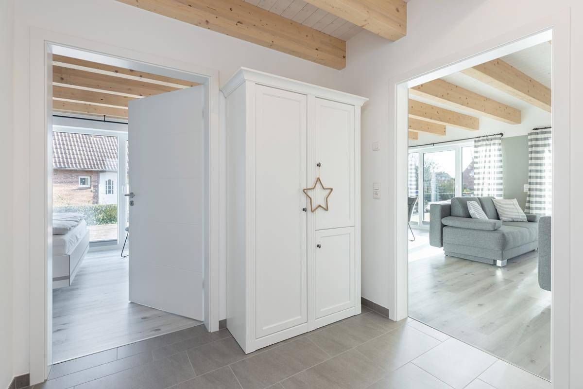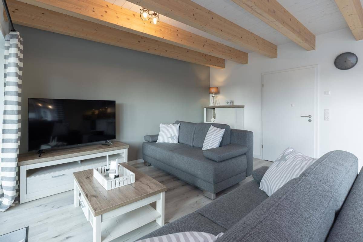 Eine schöne helle Neubau Ferienwohnung mit 67 m2. Der großzügige Wohn- und Essbereich ist mit drei großen Fenstern, einer schönen Küche und zwei bequemen Schlafsofas ausgestattet. Die Ferienwohnung ist in Südlage, so dass man den Abend auf der 20 m² großen Terrasse ausklingen lassen kann. Das Schlafzimmer hat auch ein schönes großes Fenster. Lassen Sie sich gerne von der Sonne wecken. Laden Sie nicht nur Ihre eigenen Akkus in der Ferienwohnung auf, sondern auch die Ihres E-Autos über die zugehörige Wallbox.
