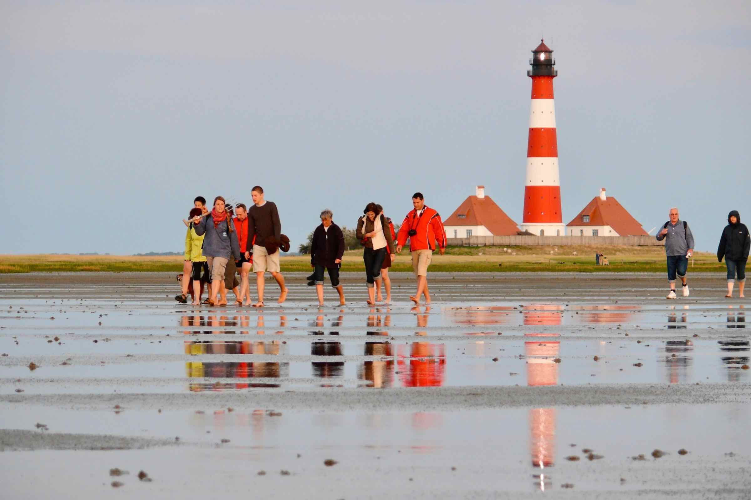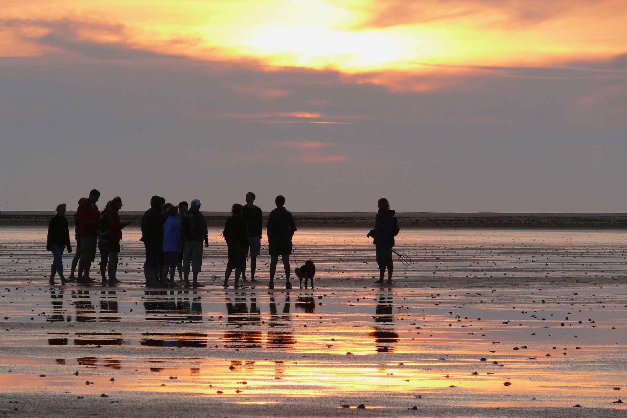Im Abendlicht entfaltet das Wattenmeer einen ganz besonderen Reiz. Auf dieser Führung vor Westerhever erleben wir, wie Wattwurm, Muscheln oder Krebse hier mit Ebbe und Flut leben können.