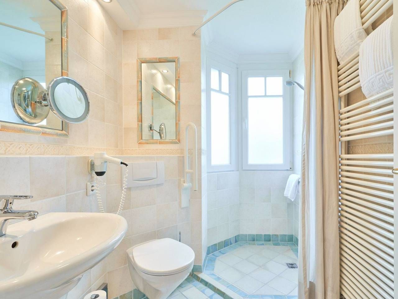 Diese ca. 75 m² ist eine behindertenfreundliche Ferienwohnung für bis zu 5 Personen. Angekommen in der modernen Wohnung, erwartet Sie das helle, lichtdurchflutete Wohnzimmer mit der komplett ausgestatteten Küche. Zwei Doppelbettschlafzimmer, ein Schlafzimmer mit Einzelbett, und ein begehbarer Kleiderschrank. Zwei Badezimmer, einmal mit Wanne, Doppelwaschbecken und WC und ein Duschbad mit WC. Auch eine Terrasse mit Strandkorb und Gartenmöbeln steht Ihnen zur Verfügung. Unser Wellnessbereich mit Schwimmbad, Dampfsauna und finnischer Sauna, verschiedenen Duschen sowie Fitnessraum und Hydrojet - laden zum Verweilen und Entspannen ein. ACHTUNG! In dieser Wohnung befindet sich mittlerweile Designboden. Die Fotos mit dem Teppichboden sind nicht mehr aktuell. Sie wohnen in zentraler Lage in der Inselmetropole Westerlands und finden alle interessanten Ziele direkt vor der Haustür. Genießen Sie die schönsten Sandstrände. Die Fußgängerzone mit unzähligen Shoppingmöglichkeiten. Schlemmen Sie in den feinsten Gourmettempeln oder gönnen Sie sich ein leckeres Fischbrötchen auf die Hand. Konzerte, Veranstaltungen, sportliche Highlights - Sie haben die Wahl und wir die passende Unterkunft.