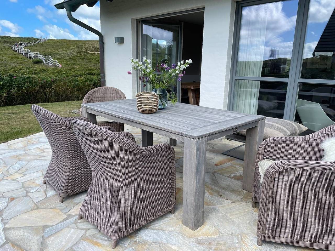 Das Strandhaus in Rantum bietet Ihnen auf großzügigen 151 m² eine hochwertige und komfortable Unterkunft direkt am Meer. In nur etwa 50 Metern Entfernung erreichen Sie die Nordsee und können die vorzügliche Lage dieses Hauses genießen. Die ruhige, naturnahe Umgebung lädt zum Entspannen ein, während Sie von einem guten Landschaftsblick profitieren. Gleichzeitig erreichen Sie Restaurants in 800 Metern sowie Einkaufsmöglichkeiten in etwa 1.350 Metern Entfernung. Das Strandhaus ist besonders auf Familien zugeschnitten: Es stehen drei separate Schlafzimmer mit insgesamt 6 Schlafmöglichkeiten ( 6 Betten plus bei Bedarf zwei extra Bodenmatratzen) und 2 Badezimmer zur Verfügung, ausgestattet mit Badewanne und Dusche. Zusätzlich steht Ihnen ein weiteres Gäste-WC zur Verfügung. Weiteren Komfort bieten Haartrockner, Kosmetikspiegel und Fußbodenheizung. Die Unterkunft ist kinderfreundlich gestaltet – Kinder sind ausdrücklich willkommen. Ein Haustier ist nach vorheriger Absprache ebenfalls erlaubt. Im Wohnbereich erwartet Sie eine offen gestaltete Küche mit moderner Ausstattung. Hier finden Sie unter anderem einen Induktionsherd, Ofen, Kühlschrank mit Gefrierfach, Geschirrspülmaschine, Nespresso-Espressomaschine, Kaffeemaschine, Wasserkocher und Toaster. Der Essbereich mit Esstisch eignet sich hervorragend für gemeinsame Mahlzeiten. Der Wohnraum ist mit einer gemütlichen Sofaecke, Sesseln und einem offenen Kamin ausgestattet – ideal, um den Tag entspannt ausklingen zu lassen. Für Wellness-Liebhaber steht eine Sauna bereit. Auch der praktische Teil kommt nicht zu kurz: Waschmaschine, Trockner, Bügelbrett, Bügeleisen und Wäscheständer sind vorhanden. Für Unterhaltung ist mit drei Fernsehern – teilweise mit internationalen Kanälen –, DVD- und Blu-ray-Player, HiFi-Anlage sowie DVDs gesorgt. Internet (WLAN) und ein Telefon stehen Ihnen ebenfalls zur Verfügung. Das Strandhaus ist eine Nichtraucherunterkunft. Im Außenbereich erwarten Sie eine Terrasse mit Gartenmöbeln und Sonnenschirm, ein gepflegter Garten und ein Strandkorb, der zum Verweilen einlädt. Für Ihr Fahrzeug stehen auf dem Privatparkplatz zwei Parkmöglichkeiten direkt am Haus bereit. Das Strandhaus eignet sich durch seine großzügige Ausstattung und die ausgezeichnete Lage am Meer hervorragend für erholsamen Familienurlaub oder entspannte Tage mit Freunden und Haustier auf Sylt. Sichern Sie sich Ihren Aufenthalt im Strandhaus und genießen Sie die Verbindung von Komfort, naturnaher Umgebung und exklusiver Ausstattung. * Kaminholz muss eigenständig gekauft werden