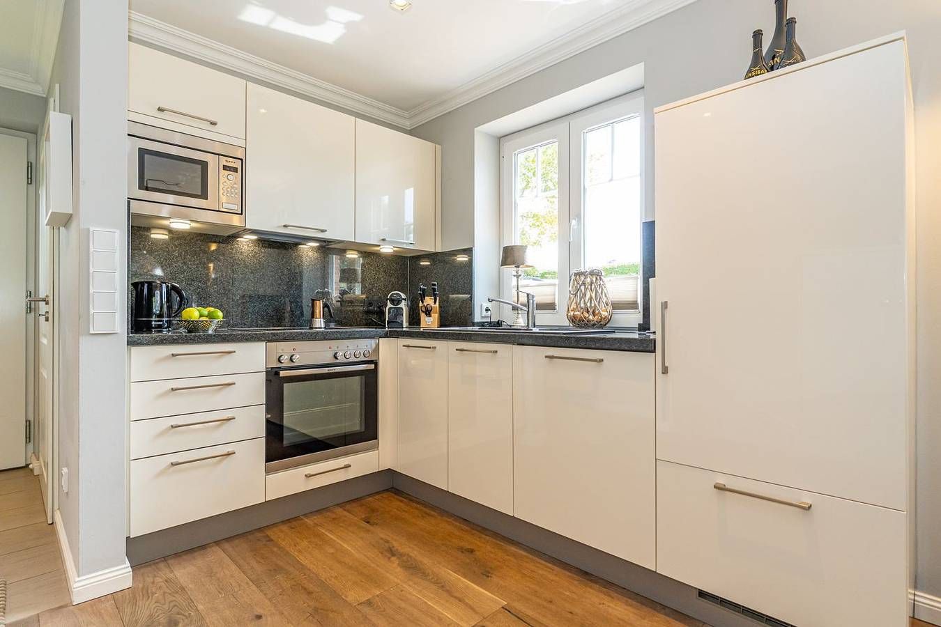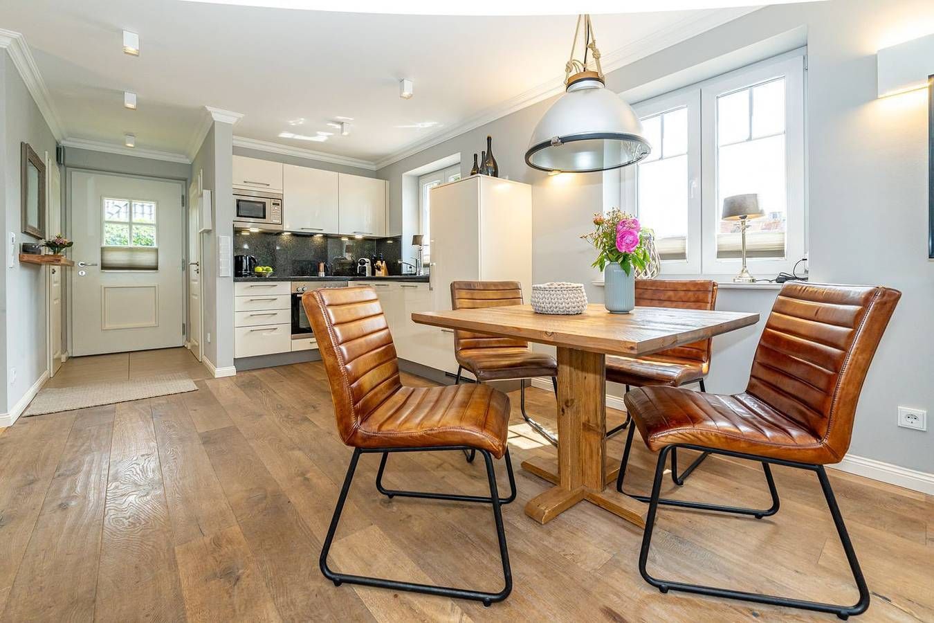 Die 3- Zimmer- Ferienwohnung (Endteil) (ca. 76 qm) in einem kleinen Ferienhaus mit sechs Einheiten befindet sich im Süden von Westerland. Im Erdgeschoss erwartet Sie ein gemütlicher Wohnbereich mit großem Flat-TV, Blue- Ray- Player und Wohlfühlsofa auf dem Sie Ihre Auszeit in vollen Zügen genießen können. Angrenzend daran befindet sich die vollausgestattete, hochwertige, offene Küchenzeile (Nespressomaschine, Kühlschrank mit Gefrierfach, Spülmaschine, Ceranfeld, Mikrowelle und Backofen) mit Essplatz. Auf dieser Ebene liegen zudem das Gäste-Bad mit bodengleicher Dusche und der Hauswirtschaftsraum mit Waschmaschine, Trockner, Garderobe und Schuhregal. In der Zeit von April bis Oktober stehen Ihnen hochwertige Gartenmöbel und ein Sylter Strandkorb zur Verfügung. Eine Etage tiefer, im Souterrain, befinden sich zwei Schlafzimmer mit unterschiedlich großen Einbaubetten: ein Doppelbett ist 180 x 200 cm groß, das andere Bett misst 140 x 200 cm. Beide Zimmer verfügen über einen Flatscreen, Leselampen und hochwertige, weiße Tischlereinbauschränke, die für genügend Stauraum sorgen. Ein weiteres Highlight in dieser Ferienwohnung ist die eigene Sauna mit großer Dusche und WC im Untergeschoss. Hier können Sie zu jeder Jahreszeit einen Saunagang genießen, um einfach mal abzuschalten. Die Lette Suite ist eine Nichtraucherwohnung und Ihren gut erzogenen, bis mittelgroßen Hund können Sie nach Anmeldung gerne mitbringen Ein guterzogener Hund ist nach vorheriger Anmeldung erlaubt (10,- € pro Tier/Tag). Bitte beachten Sie, dass wir keine Katzen aufnehmen können. Ein Pkw-Stellplatz ist am Haus verfügbar. Anreise und Abreise Tage sind in dem Zeitraum von Mai bis einschließlich Oktober nur Samstags und Sonntags. Des Weiteren gilt in dieser Zeit eine Mindestbuchungsdauer von 7 Nächten. Die Betten sind immer bezogen und zwei Duschtücher, zwei Handtücher, eine Duschmatte, ein Küchentuch pro Person vorhanden. Jedes weitere Wäschepaket können Sie bei uns im Büro für 28,- € pro Stück leihen auch ist es möglich einzelne Teile wie Handtücher oder Kopfkissen zu leihen.