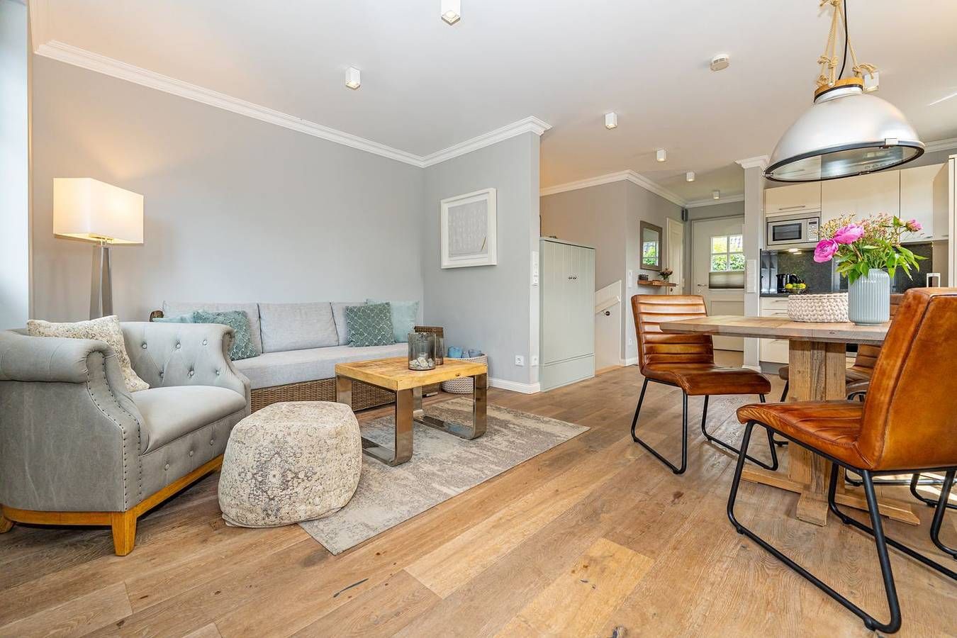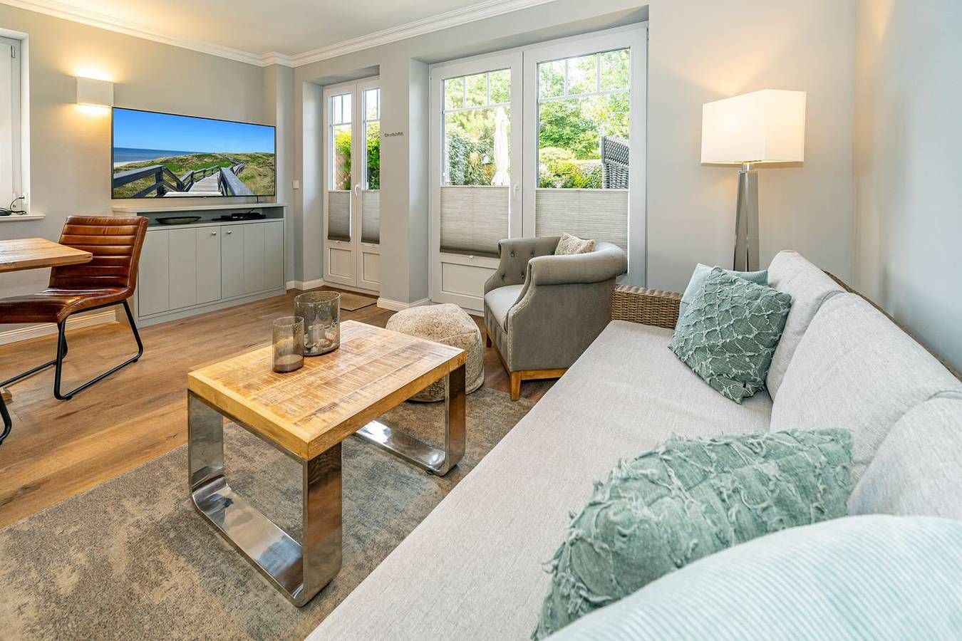 Die 3- Zimmer- Ferienwohnung (Endteil) (ca. 76 qm) in einem kleinen Ferienhaus mit sechs Einheiten befindet sich im Süden von Westerland. Im Erdgeschoss erwartet Sie ein gemütlicher Wohnbereich mit großem Flat-TV, Blue- Ray-...