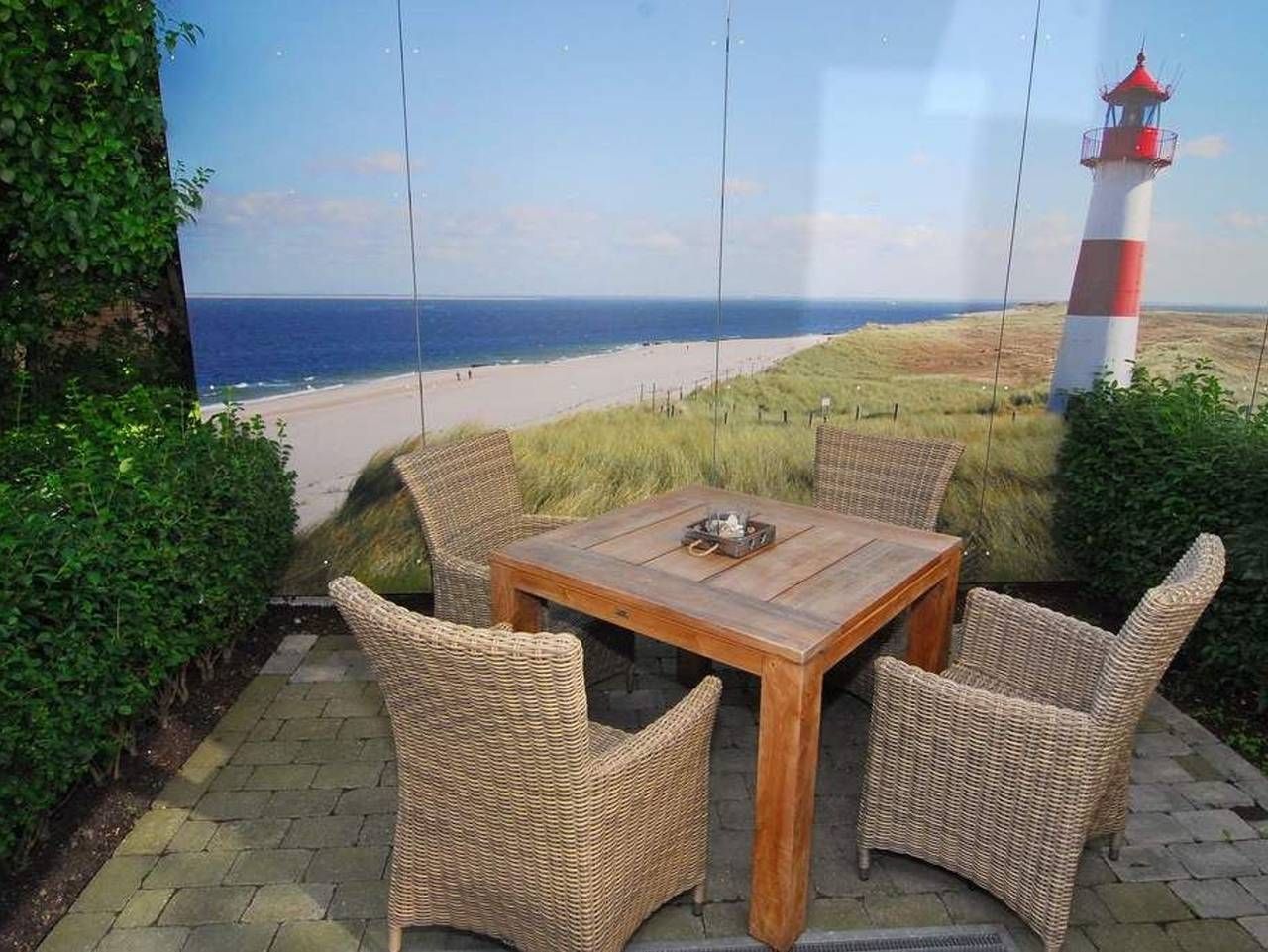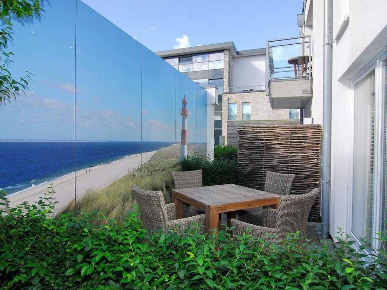 1-Zimmer-Ferienwohnung im Strandhüs, EG/UG, ca. 35qm, Nichtraucher. Wohn-/Schlafzimmer mit Schlafcouch (150x200), Esstisch mit 2-Personen-Sitzbank und 2 Korbsesseln, Flat-TV, CD und DVD-Player, W-LAN (ohne Gewähr), offene Küche mit Geschirrspüler, Mikrowelle und Backofen, Südterrasse mit Gartenmöbeln, Garderobe. UG: großzügiger Raum mit Kleiderschrank und kleiner Sportecke (Gymnastikmatte), Duschbad/WC mit Waschmaschine-/Trockner, Flur. Tierhaltung ist nicht gestattet. Bettwäsche und Handtücher sind zur Anreise aufgezogen. Pkw-Stellplatz Nr. 2. Auf dem östlich angrenzenden Nachbargrundstück entsteht ein Neubauvorhaben. Die geplante Fertigstellung ist im Winter 2026. Hier kann es zu Lärmbelästigung kommen.