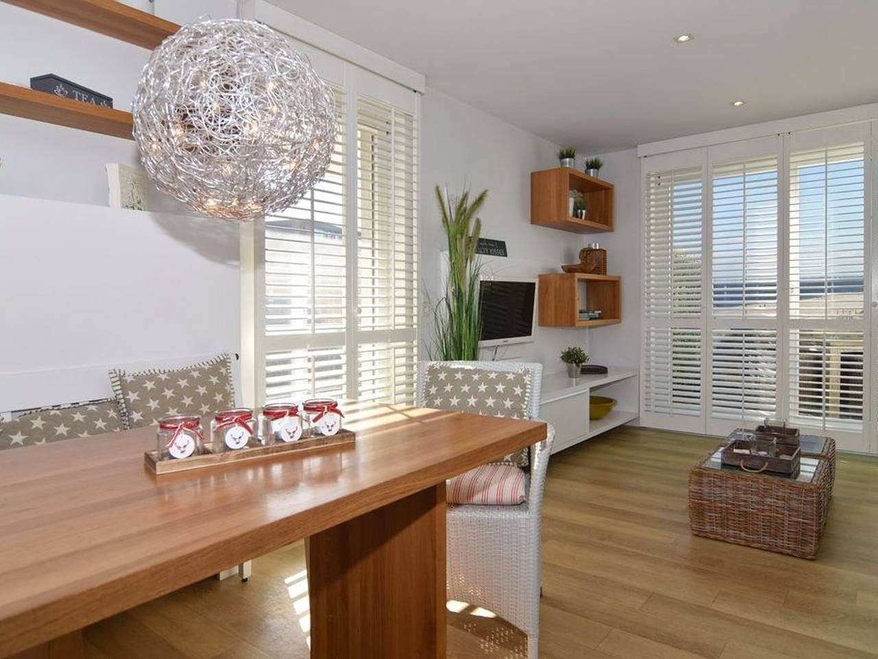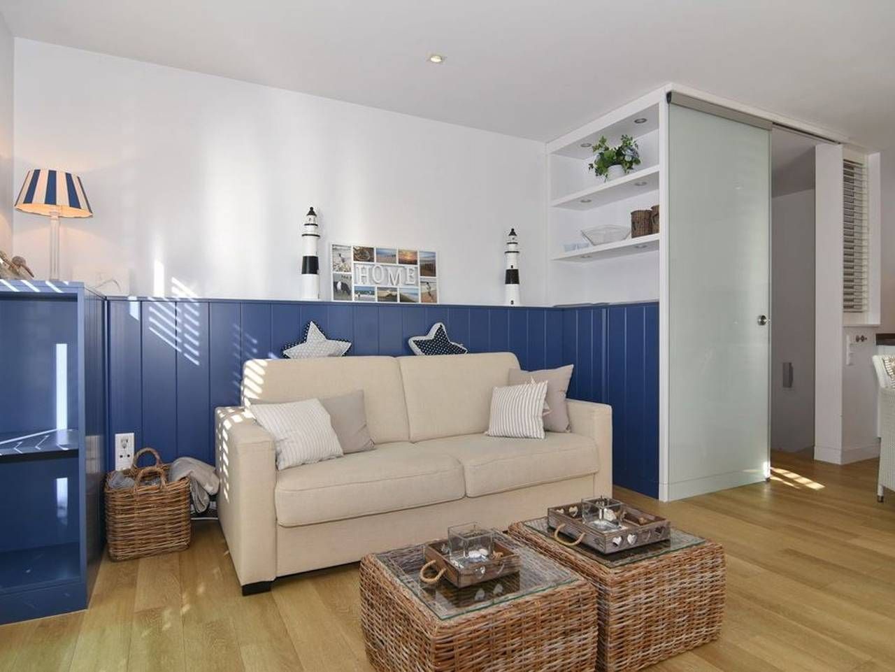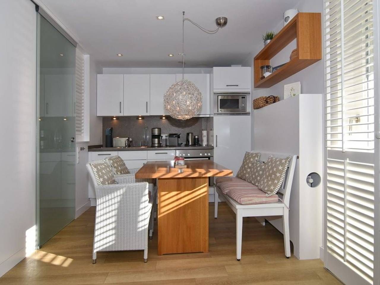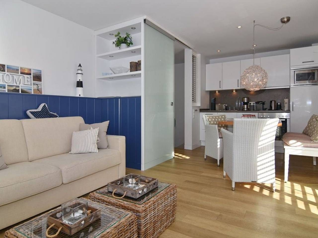 1-Zimmer-Ferienwohnung im Strandhüs, EG/UG, ca. 35qm, Nichtraucher. Wohn-/Schlafzimmer mit Schlafcouch (150x200), Esstisch mit 2-Personen-Sitzbank und 2 Korbsesseln, Flat-TV, CD und DVD-Player, W-LAN (ohne Gewähr), offene Küche...