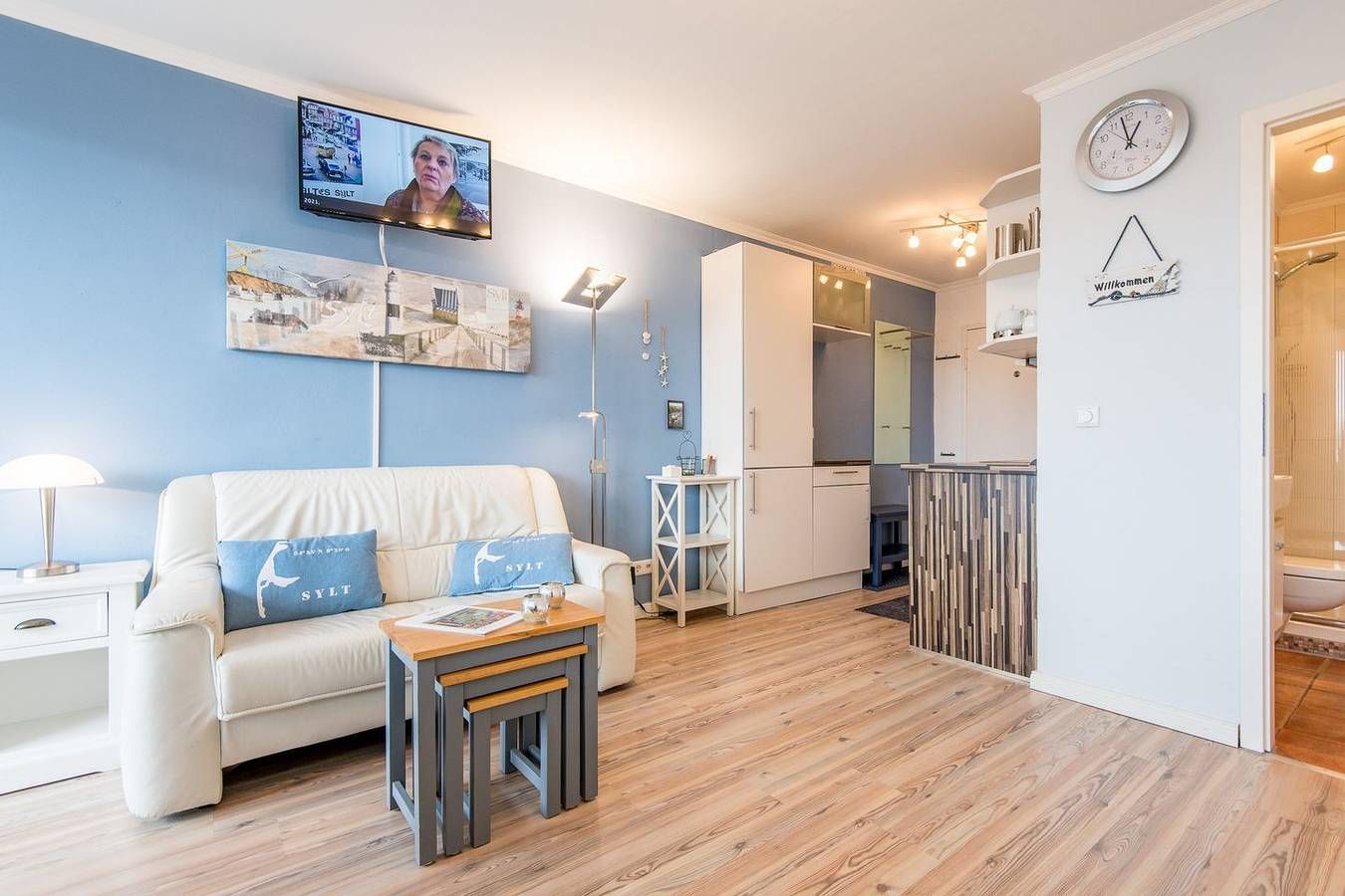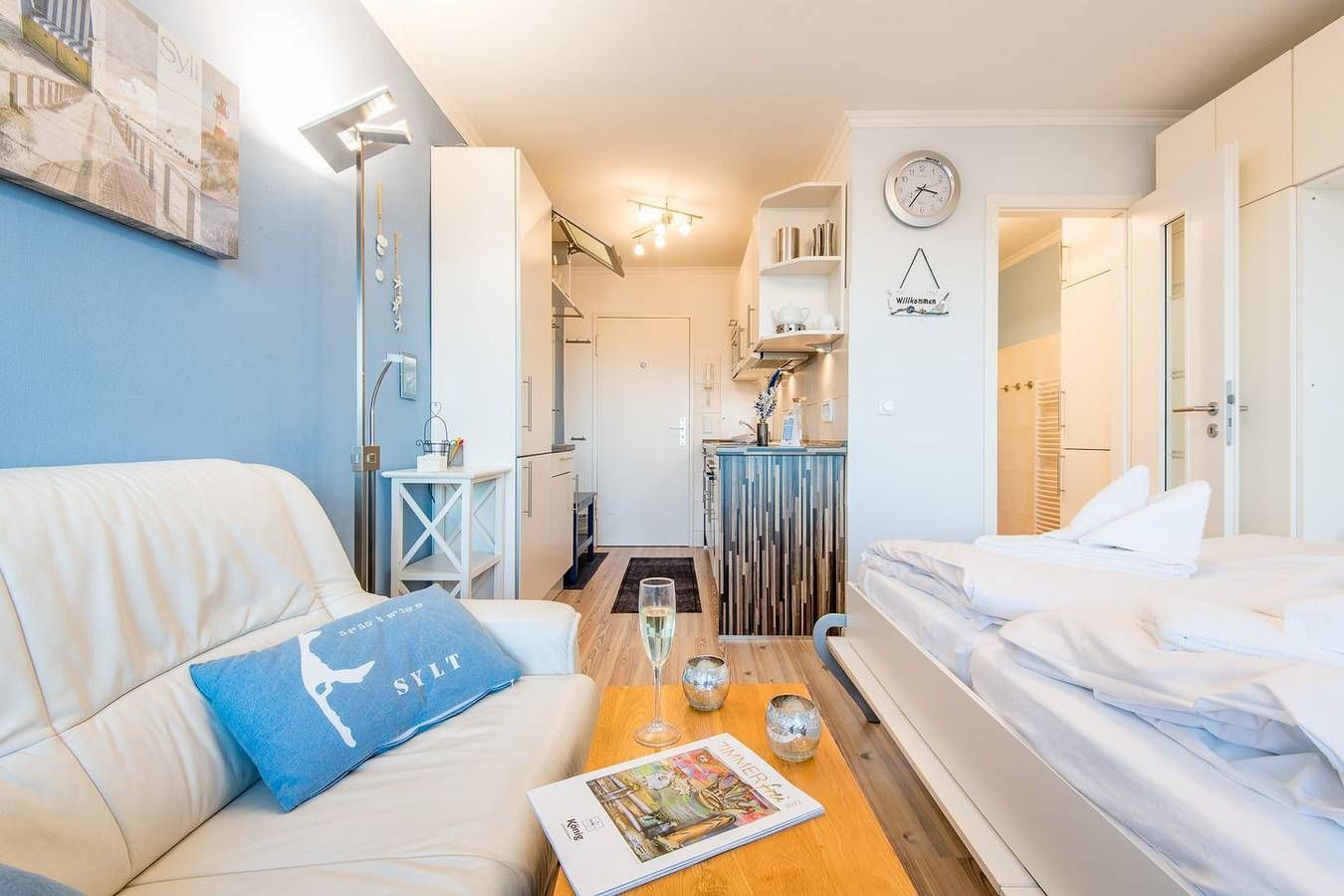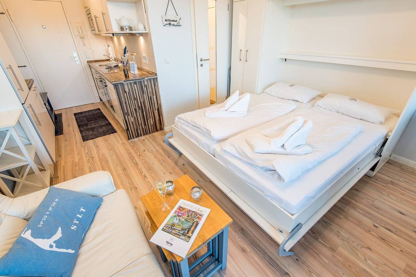 MODERNE 1-ZIMMER-FERIENWOHNUNG IN WENNINGSTEDT – BESTE LAGE AM STRANDÜBERGANG FÜR BIS ZU 2 PERSONEN Diese modernisierte 1-Zimmer-Ferienwohnung auf ca. 28 qm bietet alles, was Sie für einen erholsamen Urlaub auf Sylt benötigen. Die Wohnung liegt direkt am beliebten Strandübergang in der Seestraße, näher am Meer geht es kaum. Ideal für Paare oder Alleinreisende, die einen entspannten Aufenthalt in unmittelbarer Nähe zum Strand suchen. **WOHN- UND SCHLAFBEREICH** Der Wohn-/Schlafbereich ist mit einem komfortablen Schrankbett (160x200 cm) ausgestattet, das tagsüber dezent verstaut werden kann, um den Raum optimal zu nutzen. Ein TV sorgt für Unterhaltung, und die gemütliche Essecke mit zwei Stühlen bietet Platz für gemeinsame Mahlzeiten. Der direkte Zugang zum möblierten Ostbalkon lädt dazu ein, die Morgensonne zu genießen und frische Meeresluft zu tanken. **MODERNE KÜCHE** Die offene Einbauküche ist mit allem nötigen Komfort ausgestattet, inklusive Geschirrspüler, Mikrowelle, Backofen und Kochfeld. Hier können Sie unkompliziert Mahlzeiten zubereiten und sich wie zu Hause fühlen. **KOMFORTABLES BADEZIMMER** Das moderne Badezimmer ist mit einer Dusche und einem WC ausgestattet. Die funktionale Gestaltung bietet Ihnen den nötigen Komfort für Ihren Aufenthalt. **PRAKTISCHE EXTRAS** Das Haus verfügt über einen Fahrstuhl, der den Zugang zur Wohnung besonders bequem macht. WLAN (ohne Gewähr) ist vorhanden, sodass Sie auch im Urlaub stets vernetzt bleiben können. Haustiere sind in dieser Nichtraucherwohnung nicht erlaubt.