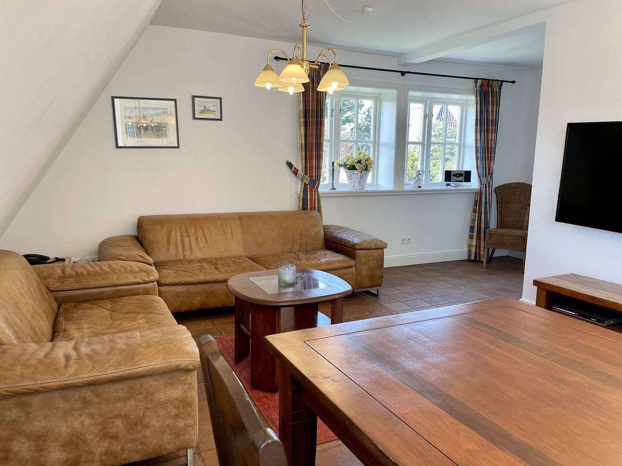 Diese familienfreundliche ca. 130 m² große Ferienwohnung für bis zu 6 Personen verläuft über zwei Ebenen und befindet sich in direkter Strandlage. "Min Hüs OG" bietet Ihnen eine gemütliche Ausstattung und absoluten Komfort. Die offene Küche samt Geschirrspüler ist voll ausgestattet und lädt zum gemeinsamen Kochen ein. Genießen Sie entspannte Urlaubstage im angrenzenden Wohn- und Essbereich. Das Obergeschoss verfügt über zwei Doppelschlafzimmer sowie ein helles Badezimmer samt Dusche. Über eine Treppe gelangen Sie ins Dachgeschoss. Dort erwartet Sie ein weiteres Doppelschlafzimmer sowie ein Badezimmer samt Dusche und Badewanne. Die Fußbodenheizung sorgt auch an kalten Tagen für eine warme, gemütliche Atmosphäre. Nutzen Sie gerne die schöne Terrasse und den angrenzenden eigenen Gartenteil mit Gartenmöbeln und einem Strandkorb (in der Saison). Absolute Entspannung bietet Ihnen der gemeinschaftliche Wellnessbereich im Souterrain, ausgestattet mit einer großzügigen Sauna sowie Saunadusche. Das Ferienhaus verfügt über WLAN, einen zugehörigen PKW-Stellplatz vor dem Haus, eine Waschmaschine sowie einen Wäschetrockner. Haustiere sind willkommen. Hinweis: Wäschepakete (Bettbezüge und Handtücher) sind nicht im Preis inkludiert und können gegen eine Gebühr optional dazu gebucht werden.