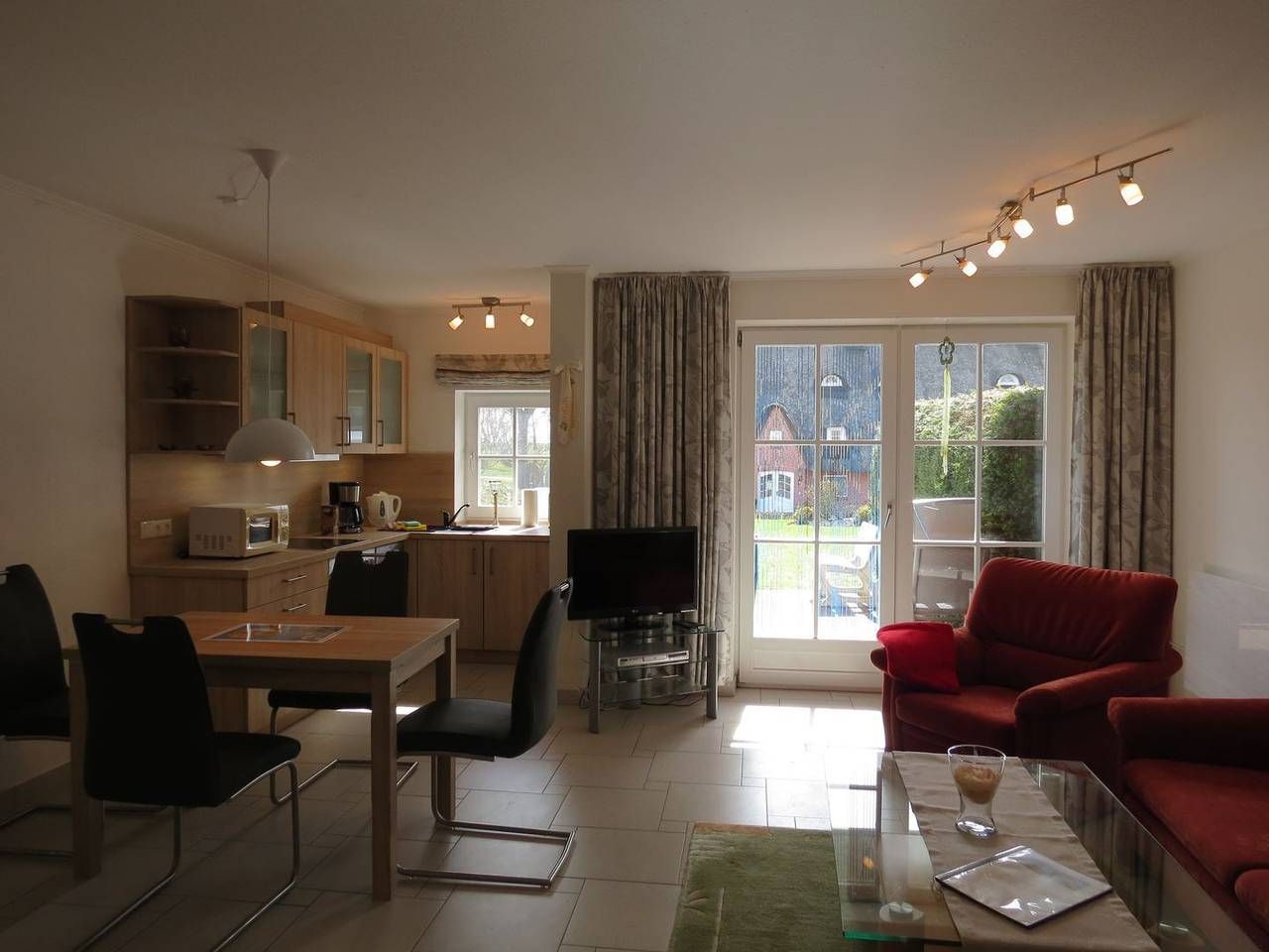 Die Wohnung verfügt über ein einladendes Schlafzimmer mit Laminatboden und einem komfortablen Bett, das für erholsame Nächte sorgt. Ein helles und geräumiges Wohnzimmer mit modernen Fliesenboden lädt zu entspannten Stunden ein. Hier finden Sie eine Sofaecke, die zum Verweilen einlädt, sowie einen Esstisch, an dem gesellige Mahlzeiten zubereitet werden können. Zur Unterhaltung stehen Ihnen ein TV mit Kabelanschluss und WLAN zur Verfügung, sodass Sie jederzeit die Verbindung zur Außenwelt halten oder Ihre Lieblingssendungen genießen können. Die offene Küche ist mit modernen Annehmlichkeiten ausgestattet, darunter ein Cerankochfeld, ein Backofen, eine Mikrowelle und eine Spülmaschine. Auch Kühlschrank, Gefrierfach und sämtliche Küchenutensilien sind vorhanden, um Ihre kulinarischen Wünsche zu erfüllen. Genießen Sie frisch zubereitete Speisen auf Ihrer eigenen überdachten Terrasse, die mit Gartenmöbeln, einem Strandkorb und einem Sonnenschirm ausgestattet ist. Hier können Sie die ruhige ländliche Umgebung und die frische Nordseeluft in vollen Zügen genießen. Die Ferienwohnung ist kinderfreundlich und bietet Sicherheitsvorkehrungen wie Rauchmelder und Sichtschutz für alle Fenster, sodass Sie unbesorgt entspannen können. Haustiere sind ebenfalls herzlich willkommen, wobei maximal zwei Tiere erlaubt sind – ein ideales Plus für tierliebe Urlauber. Die Lage ist einfach perfekt! In nur 150 Metern erreichen Sie einen der schönsten Strände der Nordseeküste, der zu vielfältigen Aktivitäten wie Schwimmen, Spazierengehen und Vogelbeobachtung einlädt. Weitere Freizeitmöglichkeiten wie Golfen, Radfahren und Wandern sind in der Umgebung ebenfalls geboten. Zahlreiche Einkaufsmöglichkeiten und Restaurants befinden sich in einem Umkreis von nur 2 km, und auch der öffentliche Nahverkehr ist nur 50 Meter entfernt, was die Erkundung der Umgebung erleichtert. Die Hus op de Wurth Ferienwohnung 9 bietet Ihnen absoluten Komfort in einer ruhigen, ländlichen Atmosphäre, ideal für einen entspannten Urlaub am Meer. Ob bei einem ausgedehnten Spaziergang am Strand, einem Besuch in den nahegelegenen Städten oder einfach bei einem gemütlichen Abend auf der Terrasse – hier bleiben keine Wünsche offen. Kommen Sie und entdecken Sie die Schönheit der Nordsee und das charmante Leben in Büsumer Deichhausen. Buche jetzt deinen erholsamen Aufenthalt in der Hus op de Wurth Ferienwohnung 9 und erlebe unvergessliche Tage am Meer!