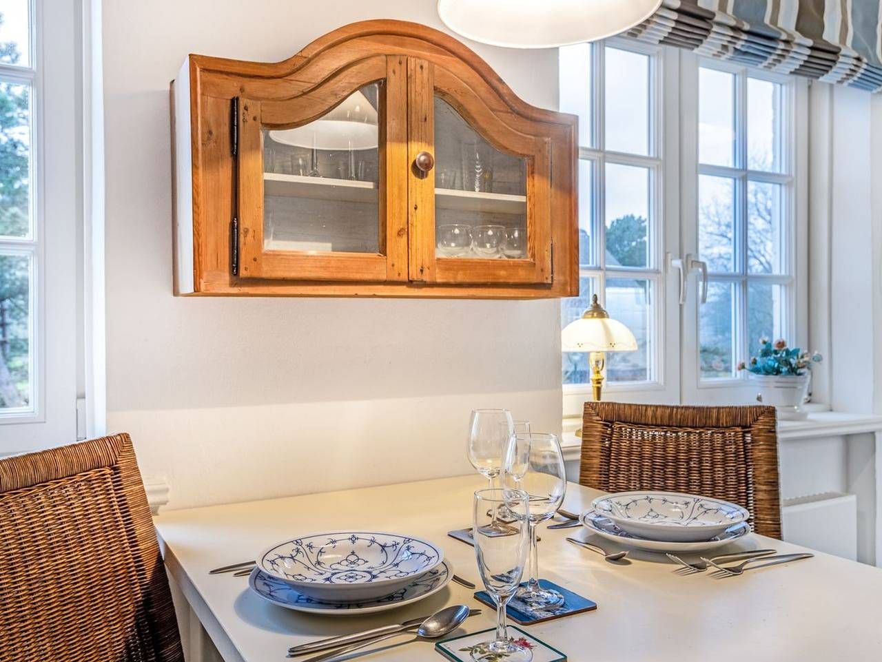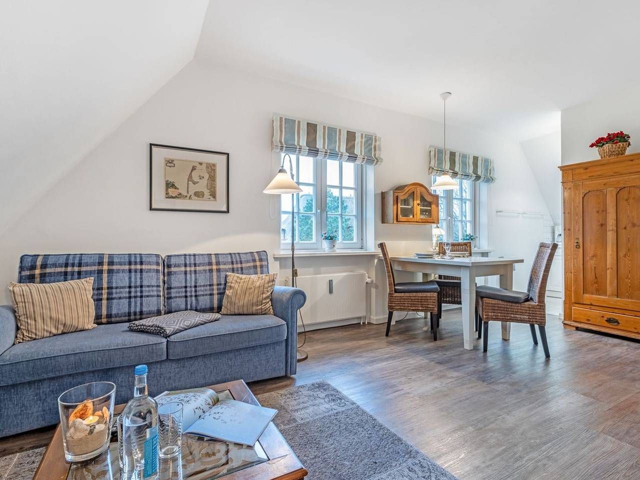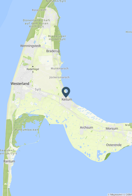 Sie wohnen in einem gepflegten Haus mit sieben Einheiten. Die Wohnung liegt sehr zentral in Keitum nur ca. 6 Gehminuten vom Wattenmeer entfernt. Einkaufsmöglichkeiten befinden sich in unmittelbarer Nähe. Ausstattung Freundlicher und heller Wohnraum im Obergeschoss, im Wohnzimmer sind TV und Radio (WLAN vorhanden) Kleine offene Küche, die mit Spülmaschine, Kaffeefiltermaschiene, Wasserkocher, kein Backofen vorhanden Duschbad mit Toilette und Fenster Doppelbett (1,60m x 2,00m) auf der Empore Gartenplatz mit Strandkorb (ca. April - Oktober) PKW-Stellplatz Bitte beachten Sie, dass es im Domizil eine relativ steile Treppe als Zugang zum Schlafbereich (DG) gibt.