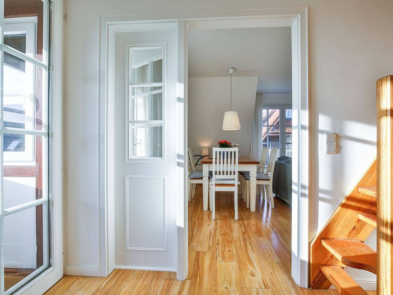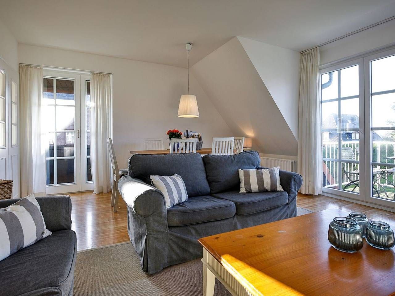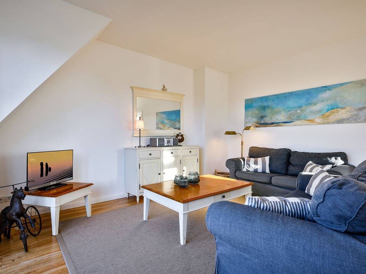 Gemütliche, lichtdurchflutete Ferienwohnung „Südstrand“ am Rande von Westerland mit Blick zu den Tinnumer Wiesen. Die Wohnung verteilt sich über 2 Etagen auf 75qm und bietet Platz für bis zu vier Personen. Im ersten Obergeschoss befindet sich ein heller Wohnraum mit zwei gemütlichen Sofas, Essecke sowie Zugang zu den beiden Balkonen. Balkon 1 ist nach Westen ausgerichtet mit Sitzgelegenheit für bis zu vier Personen, Balkon 2 nach Süden und ist mit einer Sitzbank ausgestattet von wo aus Sie den wunderbaren Weitblick über die Tinnumer Wiesen genießen können. Die funktionale Küche verfügt über ein zwei Ceranfeldplatten, Kühlschrank und Nespressomaschine. Ebenfalls auf dieser Etage befindet sich das erste Schlafzimmer mit gemütlichem Doppelbett und Kleiderschrank. Außerdem ein funktionales Duschbad mit WC und großzügigem Waschtisch. Über eine Holztreppe erreichen Sie durch den Flur das 2. Obergeschoss mit gemütlich eingerichteten Schlafraum mit Doppelbett, Kleiderschrank sowie Sitzgelegenheit. Das dritte Schlafzimmer verfügt über ein gemütliches Einzelbett, Schreibtisch sowie Einbauschränken. Selbstverständlich verfügt die Ferienwohnung über kostenfreies W-LAN, ebenso über einen kostenfreien Parkplatz, mit der Nummer 16, direkt an der Unterkunft.