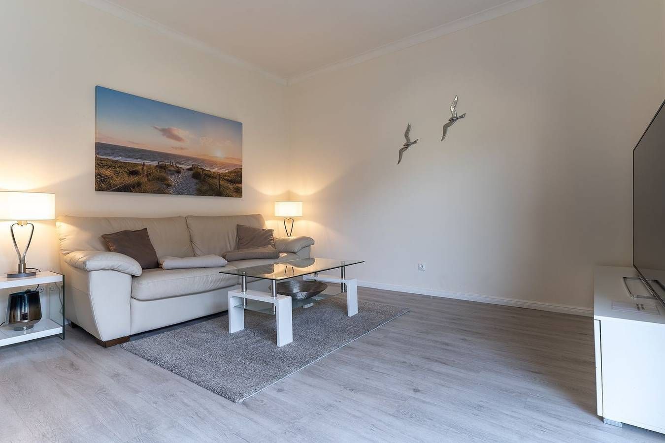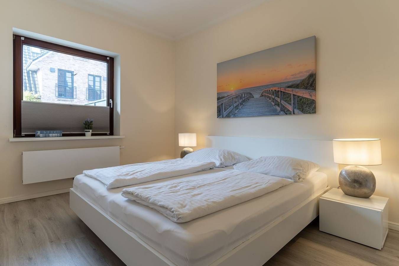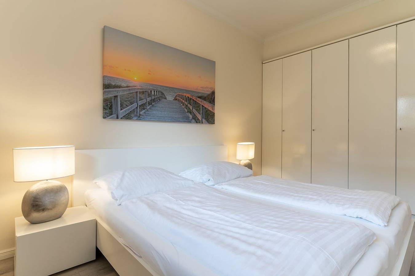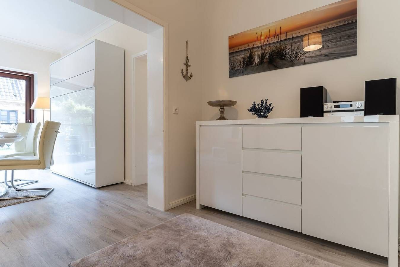 Die 62m² große Ferienwohnung, welche im Jahr 2020 vollständig saniert wurde, liegt im Erdgeschoss und bietet bis zu 4 Personen Platz für einen unvergesslichen Urlaub in St. Peter-Ording. Durch die Lage und Ausstattung ist die Ferienwohnung besonders familienfreundlich, Kinder sind hier herzlich willkommen. Durch die tolle Erdgeschosslage eignet sich die Ferienunterkunft wunderbar für mobilitätseingeschränkte Gäste. Die Ferienwohnung verfügt über eine nach Südwesten hin ausgerichtete, vollständig möblierte, überdachte Terrasse. Neben der Terrasse steht den Gästen ein kleines Stück Garten zur Verfügung. Hier genießen Sie bei Abendsonne ein herrliches Beisammensein im Freien. Auch der Urlaub mit Hund ist in der modernen Ferienwohnung hier möglich, bis zu 2 Hunde begleiten die Familie in den Urlaub nach St. Peter Ording. Das moderne Wohnzimmer wirkt durch die große Fensterfront wunderbar hell und freundlich. Zur Ausstattung dort gehören ein edles Ledersofa und der große Esstisch, an dem die ganze Familie Platz findet. Zwei vollwertige Schlafplätze bietet das komfortable und platzsparende Schrankbett. Für die multimediale Unterhaltung sorgen ein großer Flachbild-TV, Radio mit Bluetooth und kostenfreies W-LAN. Für die Versorgung im Urlaub sorgt die vollumfassend ausgestattete Küche der Ferienwohnung. Hier stehen unter anderem Cerankochfeld und Backofen sowie Kühlschrank, Mikrowelle und Nespresso-Maschine bereit. Orangenpresse und Milchaufschäumer gehören ebenfalls zum Inventar. Im hellen, einladenden Schlafzimmer steht ein komfortables 180x200cm Doppelbett zur Verfügung. Zur edlen Ferienwohnung gehören weiterhin Duschbad mit WC, Haartrockner und Schminkspiegel. Alle Fenster der Ferienwohnung sind mit Fliegenschutzgitter und Verdunklungsplissees ausgestattet. Die große Fensterfront ist mit elektrischem Außenrollo ausgestattet, um Licht und Sichtschutz nach Belieben regulieren zu können. Feriengästen steht zudem ein kostenfrei nutzbarer Waschtrockner zur Verfügung.