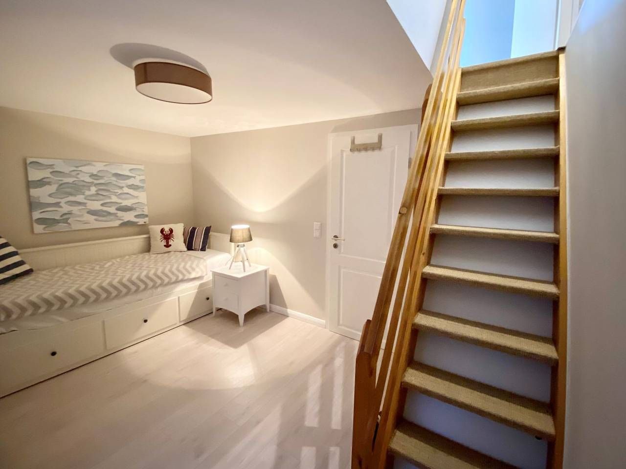 Moin Moin und herzlich Willkommen in der 4-Zimmer-Ferienwohnung "Großes Mollymook". Sie besticht durch ihre Helligkeit und die perfekte Ausstattung mit viel Stil, wurde kürzlich aufwändig und detailverliebt renoviert. Die Wohnung hat ungefähr 80 Quadratmeter Wohnfläche, aufgeteilt auf Erdgeschoss und Souterrain, eine Terrasse gehört dazu. Sie liegt zentral aber ruhig in Wenningstedt und bietet viel Raum zur Entfaltung für bis zu sechs Personen. Das gefällt Ihnen sehr, aber Sie sind nur zu Zweit? Dann gucken Sie sich doch mal "Kleines Mollymook" an, denn diese Wohnung ist ein Verwandlungskünstler.