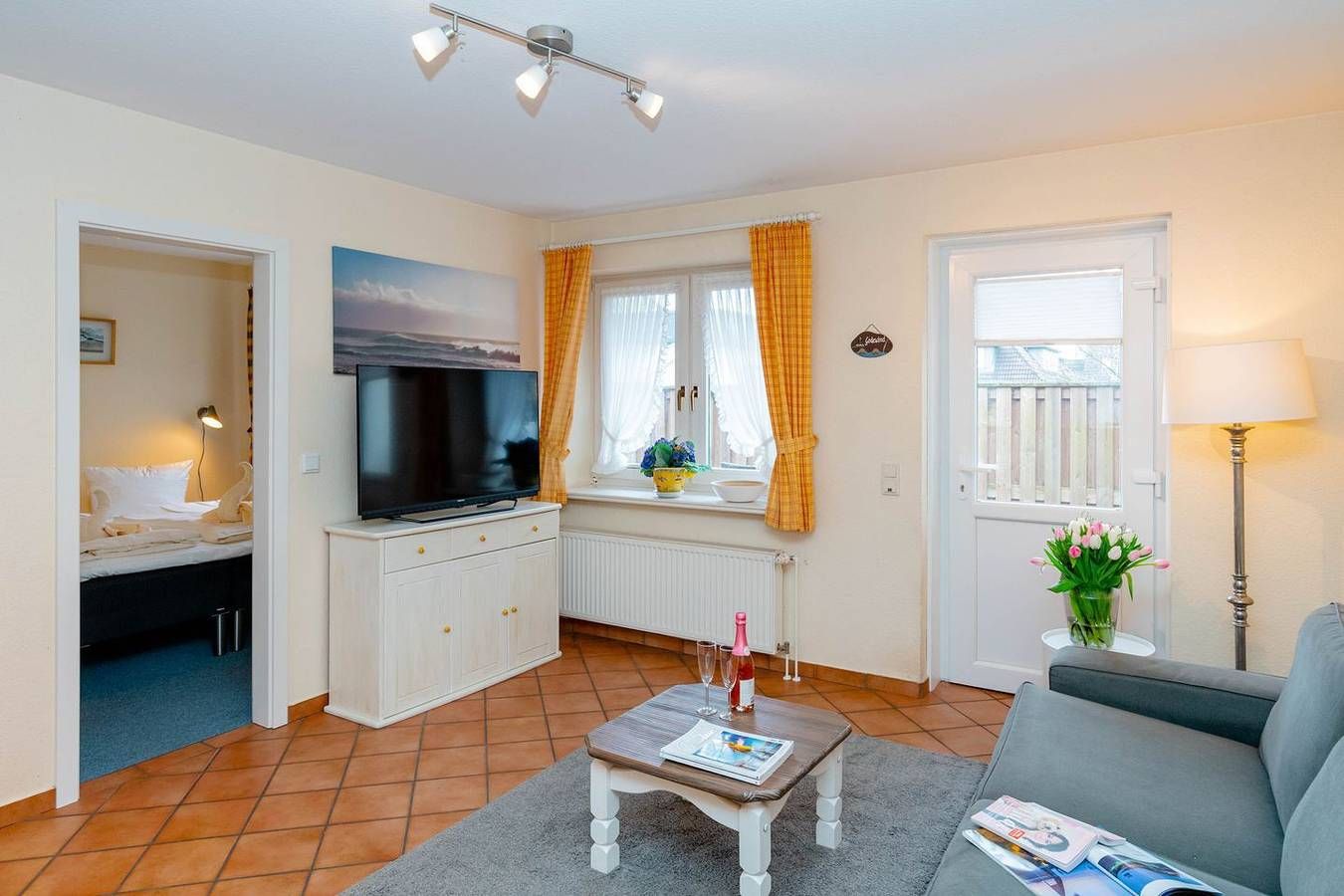 Moin Moin und Willkommen im ebenerdigen 3-Zimmer-Ferienappartement "Godewind", was Platt ist und "guter Wind" heißt. Diese Wohnung hat ungefähr 50 Quadratmeter Wohnfläche und liegt im Erdgeschoss eines Doppelhauses mit vier Partien. Die Lage in Tinnum am Übergang zur Inselhauptstadt ist ruhig, von hier aus sind Sie also rasch im Zentrum von Westerland, aber auch genauso schnell in den weitläufigen Wiesen von Tinnum.