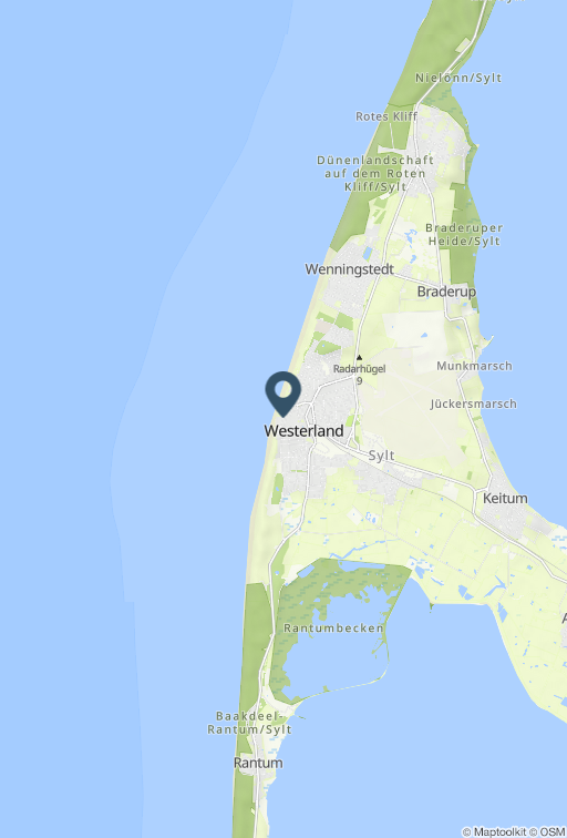 NEU in der Vermietung, "Sylter Herz", geschmackvolle 1 Zimmer Wohnung, 1 Reihe hinterm Strandübergang, zentrale Lage, hochwertig eingerichtet. Helles, lichtdurchflutetes 1-Zimmer Appartement mit hochwertigem Designfußboden in der 3. Etage im Herzen von Westerland. Liebevoll eingerichteter Wohn-/Schlafbereich mit Doppelschrankbett (2x 0,80x2.00m). Voll ausgestattete offene Küchenzeile mit angrenzendem Esstresen für 4 Personen. In der Küche mit viel Stauraum befinden sich Backofen, Mikrowelle, 4 Platten Cerankochfeld, Spülmaschine, Filterkaffeemaschine und eine zusätzliche Gusto Kapselmaschine. Das Badezimmer verfügt über eine Eckdusche mit Sitzfläche und einem Fenster. Der nach Westen ausgerichtete Balkon lädt zum Verweilen ein. Balkon mit Bestuhlung Das Haus Westerhörn, direkt am Strandübergang Strandstraße gelegen, bietet den idealen Ausgangspunkt für einen erholsamen Urlaub. Das Meer und die Strandpromenade sind einen "Steinwurf " entfernt, das Freizeitbad und Erlebnisbad Sylter Welle, sowie das Syltness Center mit seiner Wellness-und Gesundheitsabteilung, befinden sich auf der anderen Straßenseite. Bäcker, Supermärkte, Restaurants und viele andere Einkaufsmöglichkeiten finden sie in den angrenzenden Fußgängerzonen Friedrich-und Strandstraße. Durch die mehr als zentrale Wohnlage brauchen sie kein Auto ( der Bus hält praktisch vor der Haustür). Sollten sie es aber doch mitbringen, stehen ihnen kostenpflichtige Stellplätze von der Gemeinde zur Verfügung. Haustiere nicht erlaubt. Bitte beachten Sie, dass eine eventuell anfallende Kurabgabe nicht im Gesamtpreis enthalten ist. Diese ist vor Ort zu leisten.