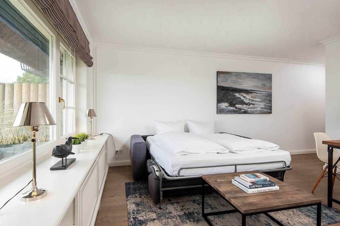 Komplett neu gestaltetes, luxuriöses Appartement mit großem Badezimmer, komfortabler, vom Schreiner maßgefertigter Einbauküche, Eichenparkett und Einrichtung von Rivera Maison, Vitra und Cosman. Ausstattung: großzügiger Wohnraum mit gemütlichem Sofa, das sich mit wenigen Handgriffen leicht zum Bett arrangieren lässt das Schlafsofa hat eine komfortable Federkernmatratze Küche mit Herd, Kühlschrank und Spülmaschine helles Badezimmer mit Natursteinfliesen und bodentiefer Dusche geräumige, separate Terrasse mit Loungemöbeln, Essbereich und Sonnenschirm. Der eigene, großzügige Gartenanteil mit Blick über das Naturschutzgebiet Richtung Rantum sowie eine Terrasse zum Entspannen machen die Unterkunft perfekt. Das luxuriös eingerichtete Appartement befindet sich in einem traditionell reetgedeckten Gebäude mit unverbautem Blick auf das Naturschutzgebiet "Archsumer Wiesen" mit Weiden, dem Deich und Blick bis nach Rantum. Das Gebäude besteht aus vier Einheiten und ist auf einem schönen, gepflegten 3.000 qm großen Grundstück gelegen. Das Appartement wurde 2020 komplett saniert. Die Böden sind mit edlem Eichenpartkett ausgestattet. Das Objekt hat eine maßgefertigte Echtholz-Küche, ein helles, modernes Bad mit bodenebener Dusche und einen Einbauschrank. Im Wohnraum befindet sich ein schöner Echtholz-Esstisch mit Vitra-Stühlen, ein TV-Gerät, Bluetooth Speaker und natürlich WLAN/DSL. Das hochwertige Bettsofa mit 18 cm Federkernmatratze bietet Schlafkomfort mit Hotelqualität. Die obligatorische Endreinigung in Höhe von 150 EUR ist im Übernachtungspreis noch nicht enthalten. Unser Dienstleister Putzi-Sauber-Service rechnet die Gebühr vor Ort bei Anreise mit unseren Gästen ab. Über unseren Dienstleister kann ein Wäscheservice mit Bett-, Bad- und Küchenwäsche gegen eine Gebühr von 35 EUR p.P. optional zugebucht werden. Die Exras werden ebenfalls bei Anreise abgerechnet. Ein mitreisender Hund (mittelgroße Hunderasse) ist nach Rücksprache mit dem Vermieter herzlich willkommen. Wir berechnen eine Gebühr in Höhe von 25 Euro pro Tag. Die Kaution beträgt 300 EUR und wird nach Ende der Mietzeit per Überweisung erstattet, abzüglich etwaiger Beanstandungen bei Schlüsselabgabe (innerhalb von 7-10 Tagen nach der Abreise). Kaution Die Kaution beträgt 300 EUR und wird unverzüglich nach Ende der Mietzeit per Überweisung erstattet, abzüglich etwaiger Beanstandungen bei Schlüsselabgabe (innerhalb von 7-10 Tagen nach der Abreise).