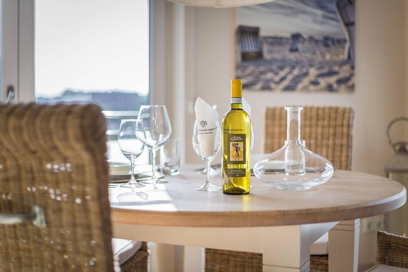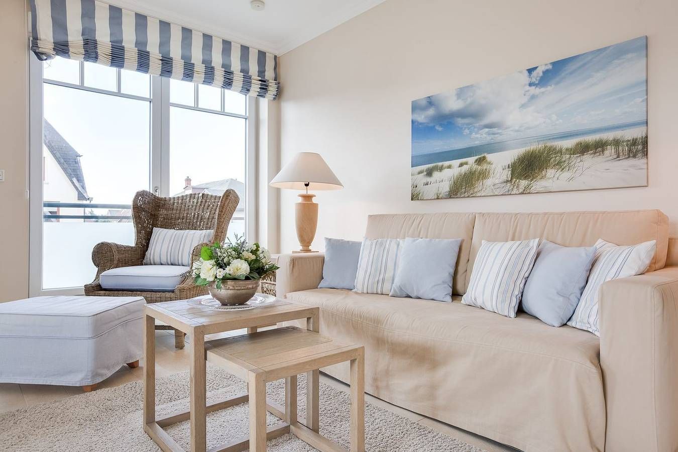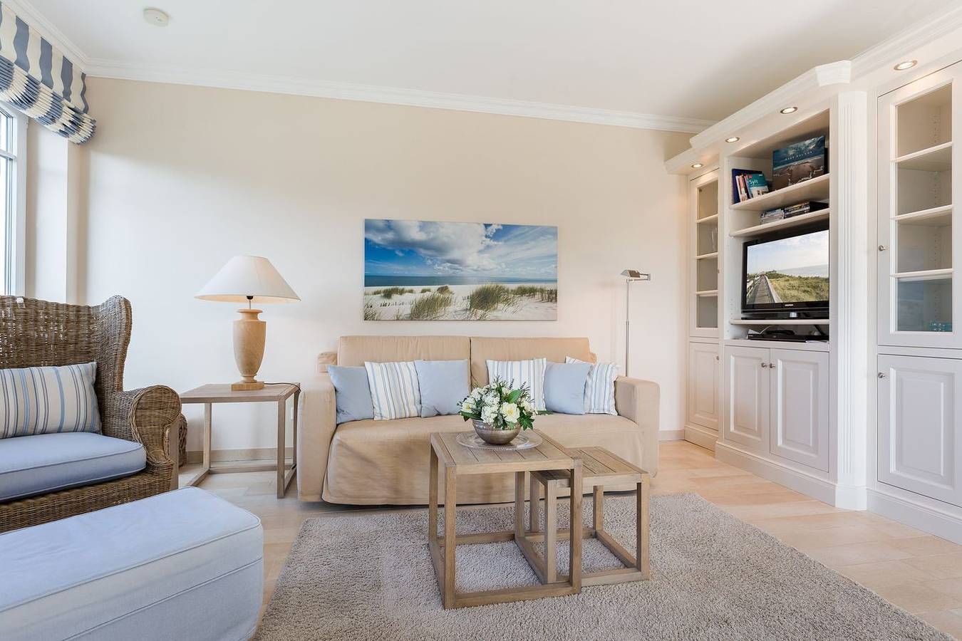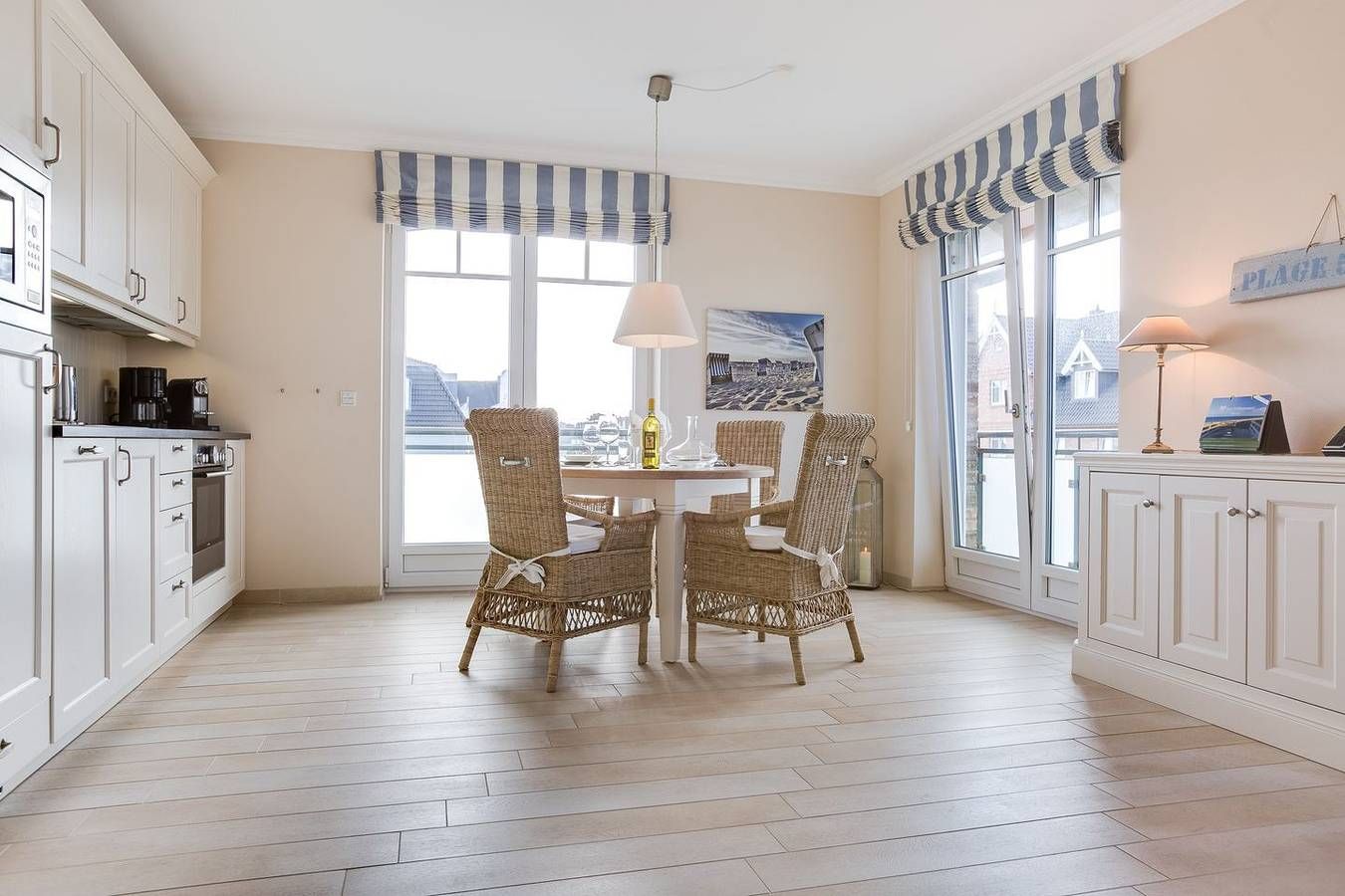 Top Lage. Beach-Style Ausstattung. Viel Platz. Alles auf einer Ebene. Edle, warme Beigetöne empfangen Sie in Ihrem Appartement. Ganz gleich ob Ihr Luxusbad mit großer Dusche, die eindrucksvolle Küche oder die wertige, geschmackvolle Beach-Style Möblierung: Sie werden im Appartement Strandleben fantastische Urlaubstage verbringen, die Sie durch Niveau, Stil und Luxus beeindrucken und immer wieder kommen lassen werden. Die Farben und wertigen Materialien lassen Sie stets einen Hauch Strand [&] Meer inhalieren. Der Appartement Name Ihres Domizils ist hier also Programm, im besten Sinne... Domizilaufteilung: In sehr guter Lage, im Herzen Wenningstedts gelegenes, luxuriöses 2-Raum Appartement - alles auf einer Ebene ! Großzügig geschnittene 50 qm Nutzfläche für 2 Personen. OG: Ihren großzügigen, lichtdurchfluteten Wohnbereich werden Sie lieben. Dafür sorgen nicht nur die wunderschönen, hellen Böden, die ein fantastisches Wohnambiente schaffen. Atmosphärisch empfängt Sie in jedem Winkel das Thema Strand [&] Meer. Liebevolle Dekorationen, sehr schöne leichte Kunst an den Wänden und viele, feine Details lassen Sie erkennen, dass hier ein ganz besonderes Wohlfühldomizil für Sie mit Herz konzipiert wurde. Die Technik Ihres Logis ist überkomplett: WLAN,[nbsp][nbsp]großer Flat-TV, Blue Ray Player und ein iPod Dock mit Radio verstehen sich von selbst. Ihre eindrucksvolle Luxusküche bietet Ihnen alles, was die Herzen selbst ambitionierter Hobbyköche höher schlagen lässt. Microwelle, Backofen und Geschirrspüler sind selbstverständlich vorhanden. Ihre feine, integrierte Essecke lädt zu entspannten Rotweinabenden oder XXL-Frühstücks-Sessions ein. Ihr Schlafzimmer mit Doppelbett (180x200cm) ist edel, kuschelig und funktional zugleich: Wertige Tischlereinbauten schaffen viel Schrankplatz, so dass auch ein weiteres Paar Schuhe oder das zweite Lieblingskleid ruhigen Gewissens mit in den Urlaubskoffer dürfen. Der große Flat TV ist geschickt in den Kleiderschrank auf Augenhöhe integriert. Auch hier umweht Sie stets ein Hauch Meeresbrise und Beach - herrrlich. Freuen Sie sich auf ein feines Wellnessbad. Schöne, wertige Materialien schaffen ein tolles Ambiente. In Ihrer große Glasdusche starten Sie beschwingt in den Tag. Eine Waschmaschine und Trockner wurden von kundiger Tischlerhand geschickt in das Bad mit eingebaut. Eine schöne Saunalandschaft mit Dusche, WC und Liegebereich im Untergeschossbereich des Domizils (Nutzung für das gesamte Haus) rundet Ihren perfekten Urlaub im Appartement Strandleben ab. Einen eigenen Parkplatz am Hause finden Sie natürlich ebenfalls vor.