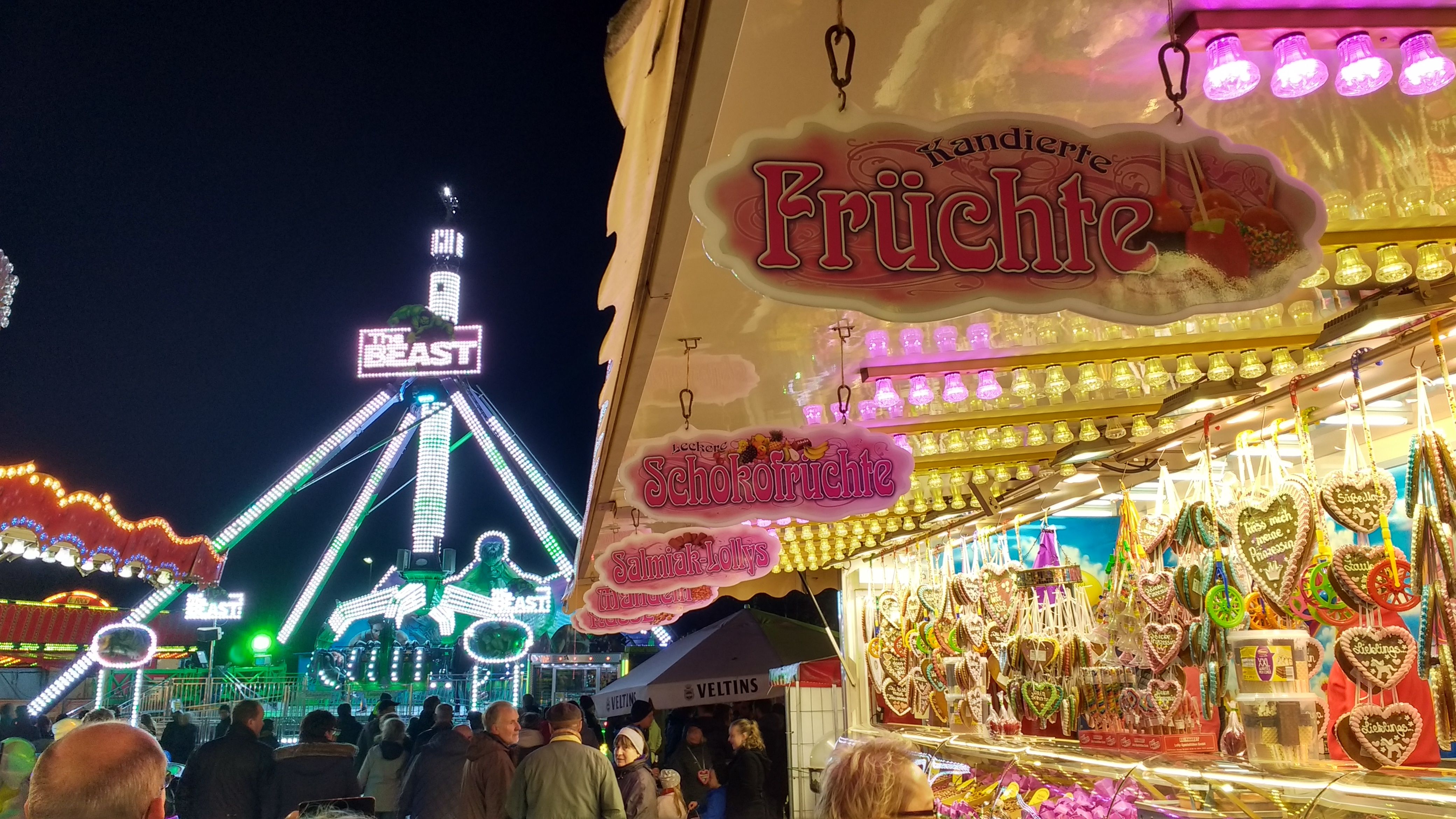 Für das leibliche Wohl ist an allen Tagen gesorgt. Leckere gebrannte Mandeln, Zuckerwatte, Crepes, Lebkuchenherzen und viele andere Süßigkeiten, deren Duft man schon von weitem mit Jahrmarkt verbindet. Zahlreiche Imbiss-Stände mit Pommes, Bratwurst, Hamburger, Champignons, Holzkohlegrill, Langos, Pizza, um nur einige zu nennen. Abgerundet wird die kulinarische Vielfalt mit Manhattan und Punsch, die auch bei kälteren Temperaturen so richtig durchwärmen.